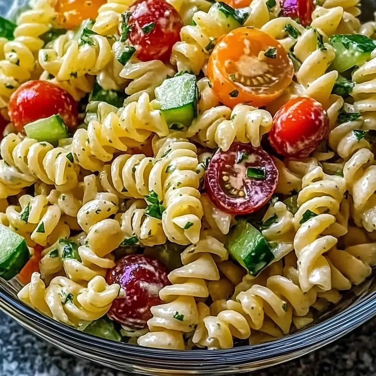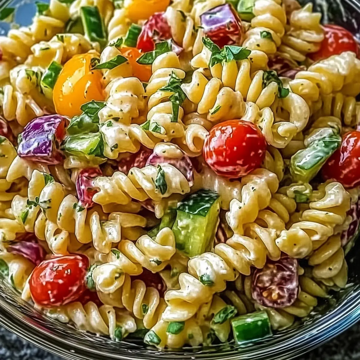 Jump to Recipe Print RecipeStepping into the kitchen, I often find myself craving something fresh and vibrant, especially as the sun starts to shine. That’s when I whip up my Addictive Crack Pasta Salad—a dish that not only captures the essence of summer but also brings a sense of joy to any gathering. This colorful recipe only takes 25 minutes to prepare, making it the perfect quick fix for potlucks, picnics, or those cozy nights at home. Loaded with crisp cucumbers, juicy cherry tomatoes, and zesty onions, this vegetarian-friendly delight can be easily customized to suit every palate, ensuring that no one leaves the table empty-handed. Plus, it’s make-ahead friendly, so you can enjoy more quality time with your loved ones. Curious about how to make this eye-catching dish a staple in your kitchen? Let’s dive in! Why Is This Pasta Salad So Addictive? Vibrant Colors: The Addictive Crack Pasta Salad bursts with a beautiful array of colors that makes it as pleasing to the eyes as it is to the palate. Quick Preparation: Ready in just 25 minutes, this recipe is perfect for busy evenings or last-minute gatherings. Customizable Flavors: Whether you prefer crunchy cucumbers or sweet bell peppers, you can tailor this dish to fit your taste, much like a delicious Thai Chicken Salad. Make-Ahead Magic: Preparing it ahead of time means you can chill out while the flavors meld together, just like with a classic Waldorf Salad Greek. Crowd-Pleaser: Its vibrant, fresh flavors and versatility ensure it will be a hit at any potluck or family gathering, enticing even fast food lovers to give it a try! Addictive Crack Pasta Salad Ingredients For the Pasta • Short Pasta (8 oz) – The essential base of the dish; use gluten-free pasta for a gluten-free option. For the Veggies • Cherry Tomatoes (1 cup) – Sweet and colorful, they bring vibrancy; grape tomatoes work well too. • Cucumber (1 cup) – Adds a refreshing crunch; you can substitute with bell pepper if desired. • Red Onion (1/2 cup) – Offers a tangy bite that complements the dish; green onions can be a milder alternative. • Bell Pepper (1 cup) – A sweet addition that brightens the dish; shredded carrots can be used instead. • Black Olives (1/2 cup) – Introduces a savory depth; feel free to switch to green olives for a different flavor. For the Dressing • Italian Dressing (1/2 cup) – Ties the salad together beautifully; store-bought or homemade will do! • Garlic Powder (1 tsp) – Enhances the overall flavor; fresh garlic provides a more robust taste. Each ingredient in this Addictive Crack Pasta Salad comes together to create a colorful and memorable dish that everyone will love! Step‑by‑Step Instructions for Addictive Crack Pasta Salad Step 1: Boil Pasta Bring a large pot of salted water to a rolling boil over high heat. Once boiling, add your short pasta and cook according to package directions until al dente, typically 8-10 minutes. When finished, drain the pasta in a colander, then rinse it under cold water to stop the cooking process. This step ensures the pasta remains firm and prevents it from becoming mushy in your Addictive Crack Pasta Salad. Step 2: Combine Ingredients In a spacious mixing bowl, combine your cooled pasta with the vibrant cherry tomatoes, refreshing cucumber, zesty red onion, colorful bell pepper, and savory black olives. Gently toss the ingredients together using a large spoon, ensuring that each component is evenly distributed and coated with the pasta. This medley of fresh veggies will elevate your Addictive Crack Pasta Salad, making it both beautiful and flavorful. Step 3: Prepare Dressing In a separate small bowl, whisk together the Italian dressing, garlic powder, salt, and pepper until well-blended. Aim for a consistent mix that brings out the zesty flavors of the dressing, which will beautifully complement the fresh ingredients in your Addictive Crack Pasta Salad. Take a moment to taste and adjust the seasoning if needed, to tailor the dressing to your preference. Step 4: Dress Salad Pour the prepared dressing over the pasta and vegetable mixture in the larger bowl. Using your large spoon, toss everything gently yet thoroughly, making sure every piece is coated in the flavorful dressing. This will not only enhance the taste of the Addictive Crack Pasta Salad but also allow the ingredients to meld beautifully, creating a cohesive dish. Step 5: Chill Cover the bowl with plastic wrap or a tight-fitting lid, then refrigerate the salad for at least 30 minutes. This chilling period is essential, as it allows the flavors to meld and intensify, making your Addictive Crack Pasta Salad even more delicious. While it chills, take a moment to appreciate the anticipation of enjoying your vibrant, homemade dish. What to Serve with Addictive Crack Pasta Salad This delightful pasta salad is the perfect foundation for a memorable meal, enticing your taste buds with every bite. Grilled Chicken: Perfectly seasoned, juicy chicken adds heartiness and protein, making it a satisfying main dish alongside the salad. Garlic Bread: Warm, buttery garlic bread complements the fresh flavors of the pasta salad, adding a comforting touch to your meal. Caprese Skewers: Fresh mozzarella, tomatoes, and basil on a stick provide a burst of flavor, perfectly harmonizing with the salad’s vibrant ingredients. Fruit Salad: A refreshing mix of seasonal fruits creates a beautiful contrast, balancing the savory notes of the pasta with sweetness. Vegetable Platter: Crisp, colorful veggies paired with a creamy dip offer an interactive appetizer that keeps the focus on fresh flavors. Lemonade or Iced Tea: A glass of refreshing lemonade or homemade iced tea brings a delightful zesty brightness, enhancing your dining experience. Chocolate Chip Cookies: Sweet, chewy cookies serve as a perfect dessert, rounding off your meal with a comforting, familiar treat that everyone loves. Pesto Bruschetta: Crispy bread topped with pesto, tom