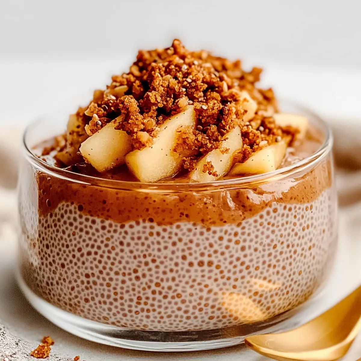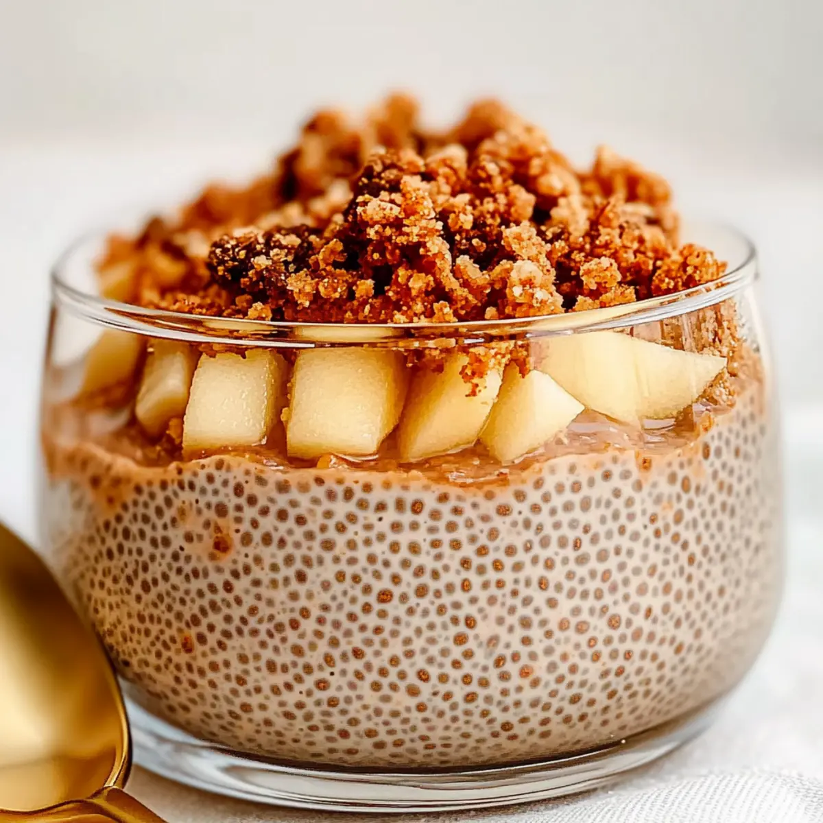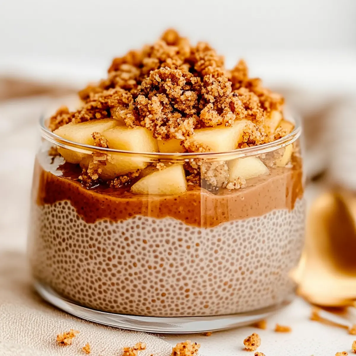 Nutritious and Delicious: This Apple Crumble Chia Pudding packs a fiber-rich punch, combining chia seeds, creamy yogurt, and sweet apples.