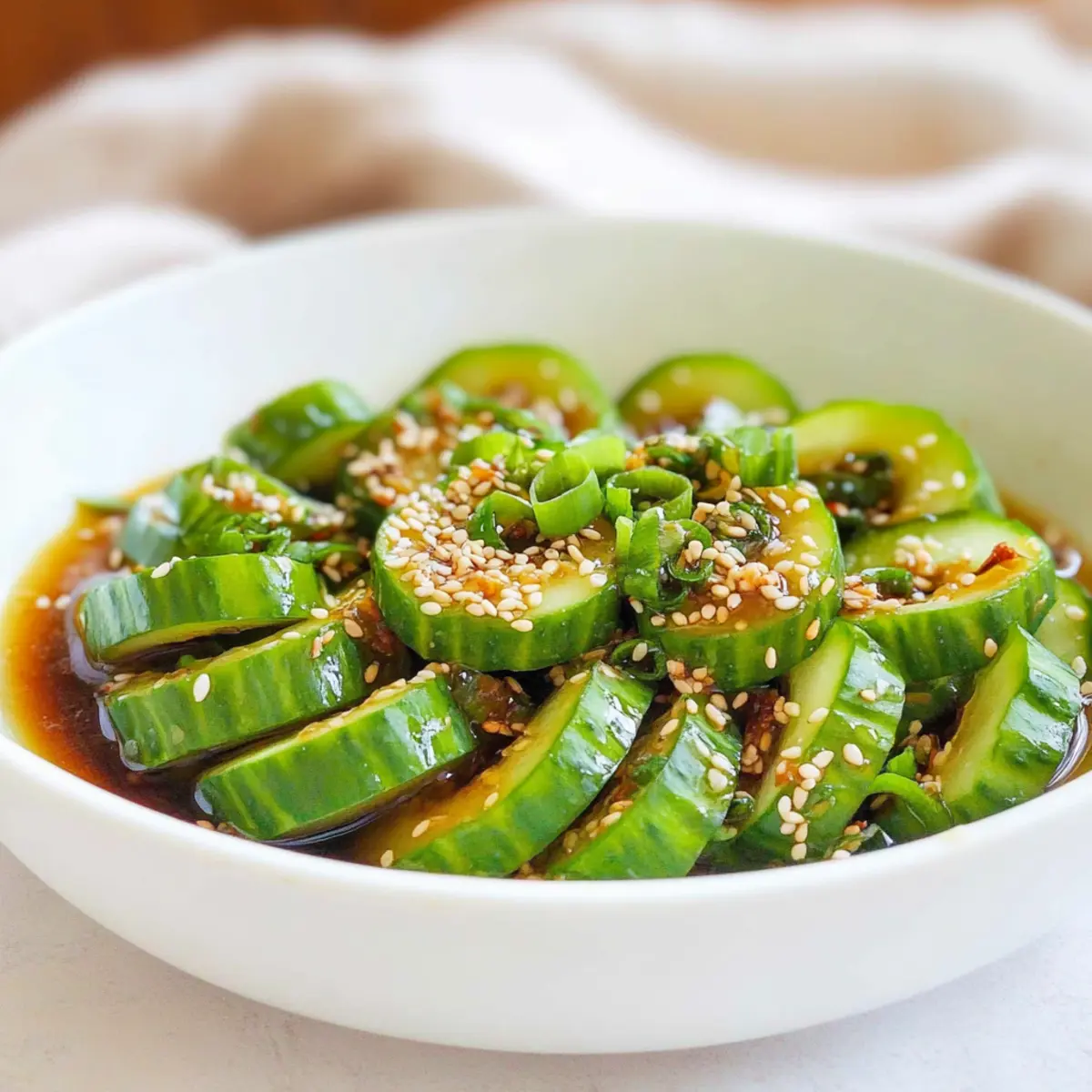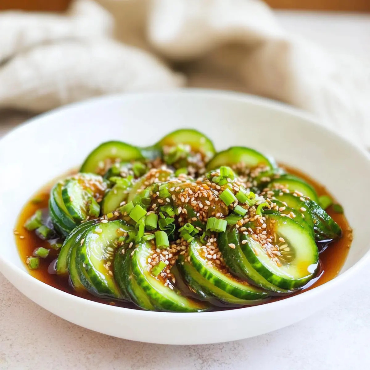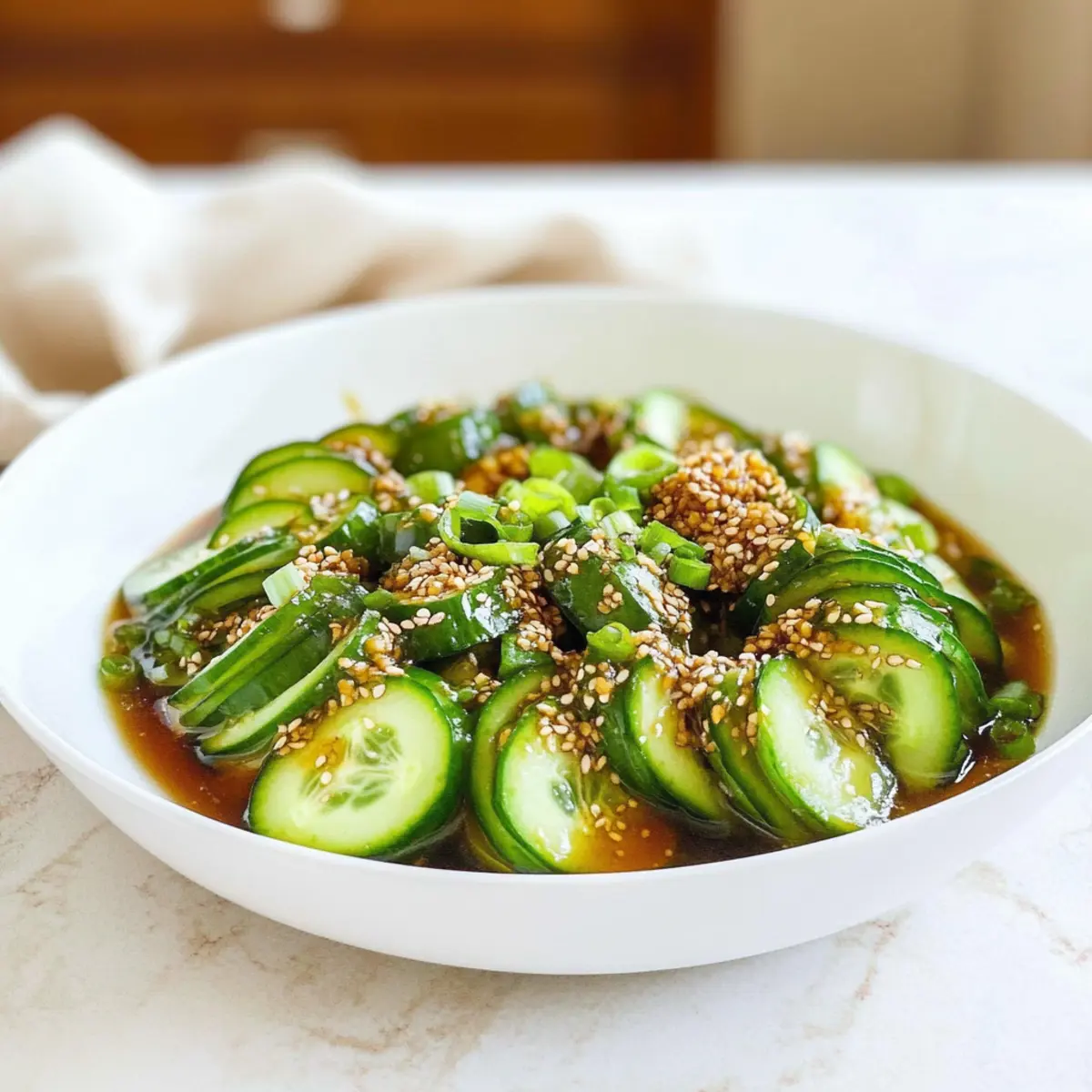 Jump to Recipe Print RecipeAs I scrolled through TikTok the other day, I stumbled upon a delightful video showcasing a mesmerizing twist on the classic cucumber salad that stole my heart. This Viral Asian Cucumber Salad with Sesame Soy Dressing is not only visually striking with its playful spiral-cut cucumbers, but it’s also incredibly easy to make, perfect for a quick snack or a stunning side dish for any gathering. With just a handful of ingredients, you can whip up this low-calorie wonder that’s packed with flavor and refreshment. Whether you’re looking to impress guests with your culinary skills or simply want a vibrant and healthy addition to your meal, this salad is sure to become a favorite. Ready to give those cucumbers a fun spin? Let’s dive in! Why is This Cucumber Salad So Special? Freshness: The crunchy cucumber spirals bring a delightful texture that’s both refreshing and fun to eat. Quick and Easy: With just a few basic ingredients, this salad can be whipped up in no time, making it perfect for busy weeknights or unexpected guests. Versatile: It pairs beautifully with grilled chicken or teriyaki salmon, or even serves as a standalone dish, just like a Cucumber Strawberry Salad to add a twist to your meals. Low-Calorie Delight: Coming in at just 57 calories per serving, this dish offers a guilt-free way to satisfy your cravings without compromising on flavor. TikTok Popularity: As a viral sensation, this recipe is sure to impress guests and make your gatherings memorable with its unique presentation! Asian Cucumber Salad Ingredients For the Salad • Cucumbers – Choose fresh, firm cucumbers for crunch and best texture in your Asian cucumber salad. • Granulated White Sugar – Adds sweetness to balance the dressing; can substitute with maple syrup if desired. • Sesame Seeds – Use toasted sesame seeds for a richer nutty flavor and added crunch. • Garlic (Crushed) – Opt for fresh garlic over powder for stronger savory depth in the dressing. • Green Onions (Chopped) – Adds a mild onion flavor; chives or shallots can be used as alternatives. For the Dressing • Soy Sauce – Provides umami flavor; using low-sodium soy sauce can make this dish healthier. • Rice Vinegar – Offers the necessary acidity and balance; apple cider vinegar is a suitable substitute. • Chinese Chili Oil – Delivers a spicy kick to the dressing, and adjust amount according to your spice preference. • Sesame Oil – Be sure to use toasted sesame oil for the best flavor in your dressing. • Salt – Enhances flavor and helps draw moisture from cucumbers; kosher or sea salt is recommended. Step‑by‑Step Instructions for Asian Cucumber Salad TikTok Step 1: Gather Ingredients Start by gathering all the ingredients for the Asian Cucumber Salad TikTok recipe. You’ll need fresh cucumbers, granulated white sugar, sesame seeds, crushed garlic, and chopped green onions, along with soy sauce, rice vinegar, Chinese chili oil, sesame oil, and salt. Having everything ready will streamline your preparation and make the cooking process enjoyable. Step 2: Prepare the Dressing In a mixing bowl, combine granulated sugar, sesame seeds, crushed garlic, and chopped green onions. Stir in soy sauce, rice vinegar, Chinese chili oil, and toasted sesame oil. Mix well until the ingredients are thoroughly combined, and the sugar is mostly dissolved. Set the dressing aside to let the flavors meld while you prepare the cucumbers. Step 3: Prepare the Cucumbers Trim both ends of the cucumbers, then position them between two chopsticks. This technique helps prevent cutting all the way through. Using a sharp knife, make diagonal cuts along the cucumber’s length, turning it over halfway to create spirals. Aim for even cuts to ensure beautiful, uniform spirals for your salad. Step 4: Spiralize the Cucumbers Continue slicing diagonally down the length of the cucumbers until you reach the end. The result will be fun, spiral-cut cucumber springs. Feel free to adjust the angle of your cuts for different styles, but be careful not to cut through the chopsticks, so the spirals remain intact and visually appealing. Step 5: Salt the Cucumbers Place the cucumber spirals in a large bowl and generously sprinkle salt over them. Using your hands, massage the salt into the spirals gently, ensuring they are evenly coated. Let the cucumbers sit for about 8-10 minutes to allow the salt to draw out excess moisture, enhancing their crunch and flavor. Step 6: Rinse the Cucumbers After the cucumbers have rested, rinse them thoroughly under cold water to remove excess salt. This step is crucial to avoid an overly salty taste in your Asian Cucumber Salad TikTok. After rinsing, gently pat the spirals dry with a clean kitchen towel or paper towels to remove any lingering moisture. Step 7: Combine and Serve Pour the prepared dressing over the drained cucumber spirals, tossing gently to coat them evenly. Ensure every piece is covered in the flavorful sesame soy dressing. Serve immediately for the freshest taste, or chill it for a short while to enhance the refreshing flavors further. Enjoy this vibrant, crunchy salad as a delightful side dish! Make Ahead Options These Asian Cucumber Salad TikTok preparations are perfect for busy home cooks looking to streamline their meal prep! You can spiralize the cucumbers and keep them in the refrigerator for up to 24 hours before serving, allowing you to save time when you’re ready to enjoy this refreshing dish. Additionally, you can prepare the sesame soy dressing a day in advance and store it in an airtight container in the fridge, which lets the flavors meld beautifully. Just remember to rinse and dry the cucumbers right before tossing them with the dressing for optimal crunch and freshness. With these make-ahead tips, you’ll serve a delicious salad with minimal last-minute effort! How to Store and Freeze Asian Cucumber Salad Room Temperature: Best enjoyed fresh, avoid leaving the s