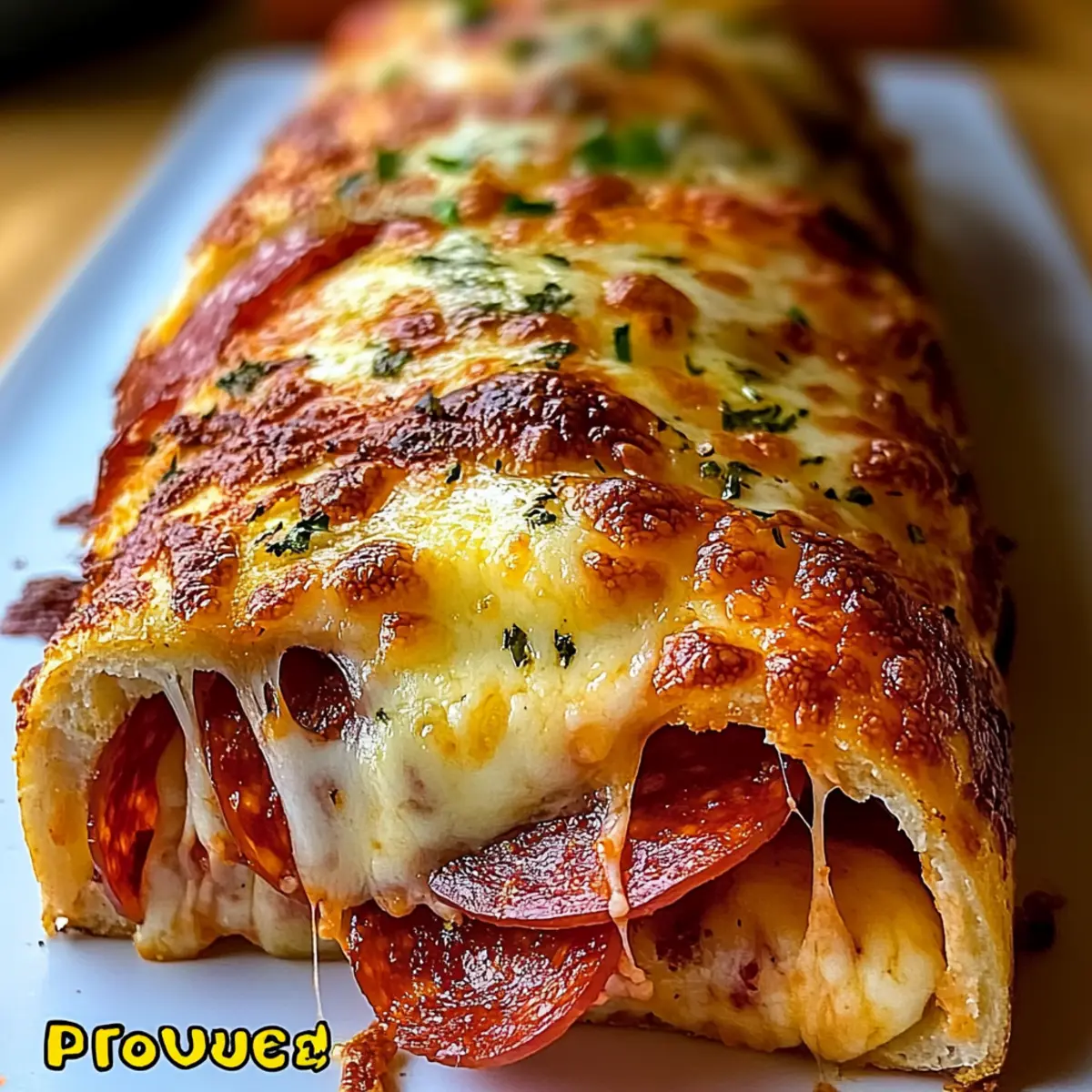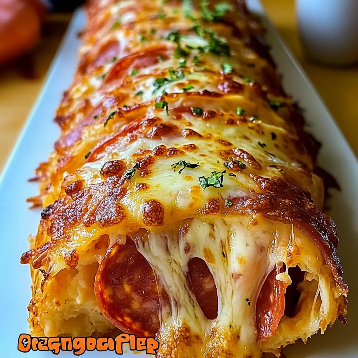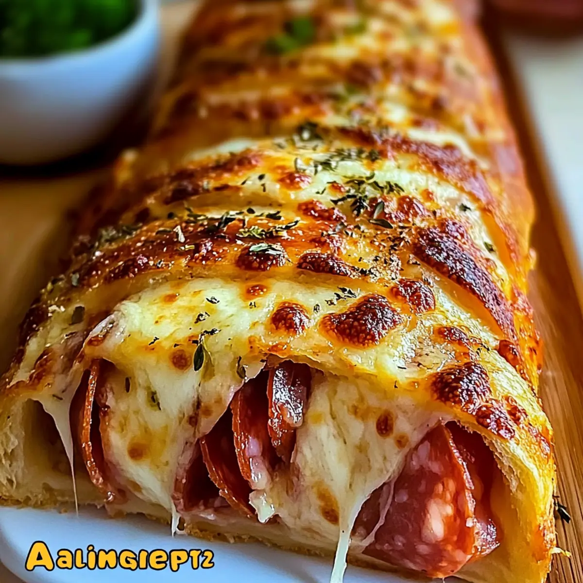 Jump to Recipe Print RecipeAs I peeled back the layers of this Authentic Italian Stromboli, a wave of nostalgia washed over me, transporting me straight to a bustling Italian kitchen brimming with laughter and the irresistible aroma of melted cheese. This dish combines the warmth of provolone, mozzarella, Genoa salami, and pepperoni, all embraced by a perfectly golden crust, making it a delightful dinner option for any night. Not only is it incredibly comforting, but it’s also customizable to suit all tastes, ensuring everyone at the table leaves satisfied. Plus, it’s freezer-friendly, making it a fantastic meal prep choice for those busy days. Wouldn’t you love to have a warm slice of homemade goodness waiting in the freezer? Why is Stromboli a Must-Try? Comforting, homemade goodness: This Authentic Italian Stromboli is the ultimate way to indulge in a warm and cheesy delight that transports you straight to Italy. Customizable to your taste: Feel free to switch up the ingredients! Pack it with your favorite vegetables or other meats as you please. Crowd-pleasing favorite: Perfect for family dinners, gatherings, or a cozy night in, everyone will enjoy a slice of this savory treat. Freezer-friendly option: Make extra and freeze portions for those busy-week meal solutions, so you always have a homemade classic at your fingertips! Easy to make: Even novice cooks will find joy in crafting this delicious dish—simple steps and impressive results await. So if you’re looking for more comforting options, don’t miss out on our Italian Meatloaf Savor or the fun Sloppy Hot Italian dip! Authentic Italian Stromboli Ingredients For the Dough • Pizza Dough – This serves as the sturdy base; opt for store-bought or homemade for flexibility in texture and flavor. For the Filling • Provolone Cheese – Offers a creamy flavor that melts beautifully; substitute with mozzarella for a milder taste. • Genoa Salami – Adds savory depth; feel free to swap it with your preferred cured meat or omit for a vegetarian version. • Pepperoni – Provides a spicy kick; alternative options like turkey pepperoni work well too for a lighter touch. • Shredded Mozzarella Cheese – Melts deliciously to create a gooey interior; mix in other cheeses like fontina for enhanced flavor. For the Toppings • Egg (for egg wash) – This gives the Stromboli a golden finish; milk or water can also be used for a lighter crust. • Water (for egg wash) – Thin the egg for that perfect brushing consistency. • Dried Oregano – Boosts the flavor profile with classic Italian herbs; fresh oregano brings a more vibrant taste. • Garlic Powder – Adds depth and aroma; swap for fresh garlic if you desire a more intense flavor. • Chopped Fresh Parsley (optional) – Use this as a fresh garnish to brighten up your dish. For Serving • Marinara Sauce – A classic dipping companion; you can use store-bought or whip up a homemade version for the best taste. Experience the enchanting flavors of Authentic Italian Stromboli with these carefully selected ingredients! Step‑by‑Step Instructions for Authentic Italian Stromboli Step 1: Prepare the Dough Begin by taking your pizza dough out of the fridge and allowing it to come to room temperature, which usually takes about 30 minutes. This step is crucial as it makes the dough more pliable, preventing it from tearing when you roll it out. Once softened, sprinkle a clean surface with flour to prevent sticking. Step 2: Roll Out the Dough Next, use a rolling pin to roll the dough into a rectangle approximately ¼ inch thick, ensuring the edges are even. Aim for a size around 12×16 inches, giving you a good base for your filling. You want the dough to be stretchy but not sticky; if it sticks, add a little more flour to your surface. Step 3: Layer the Cheeses Now, lay down the slices of provolone cheese evenly over the dough, leaving a 1-inch margin around the edges. This layer of cheese acts as a barrier to keep the flavors in. Follow this with a layer of Genoa salami and then the pepperoni, distributing them evenly to ensure each bite of your Authentic Italian Stromboli is flavorful and satisfying. Step 4: Add the Shredded Cheese Sprinkle the shredded mozzarella cheese generously over the cured meats, filling the center of the rolled dough. The mozzarella will melt beautifully, adding that gooey texture that we all love in a Stromboli. Avoid overloading it to ensure that the filling stays intact when you roll it up. Step 5: Roll Up the Dough Gently roll the dough from one long edge to the other, creating a tight log shape, ensuring the filling stays contained. Pinch the seam closed with your fingers as you go to secure the Stromboli. Make sure to tuck in the ends to seal them tightly to prevent any oozing during baking. Step 6: Transfer to Baking Sheet Carefully place your rolled Stromboli seam-side down on a baking sheet lined with parchment paper. This prevents sticking and facilitates an easy transfer to the oven. Take a moment to adjust its shape, giving it that classic Stromboli appearance before baking. Step 7: Vent the Stromboli Using a sharp knife, cut several shallow diagonal slits across the top of your Stromboli. This step allows steam to escape during baking, helping the crust achieve that desirable golden finish. A well-vented Stromboli also cooks more evenly, resulting in a perfectly textured outer layer. Step 8: Apply Egg Wash In a small bowl, whisk together one egg with a splash of water to create an egg wash. Brush this mixture generously over the top of the Stromboli to achieve a golden-brown crust. Then, sprinkle dried oregano and garlic powder for added flavor before heading to the oven. Step 9: Bake to Perfection Place your Stromboli in a preheated oven at 400°F (200°C) and bake for 25–30 minutes. Keep an eye on it as those last few minutes approach; you’re looking for a deep golden color and bubbly cheese escaping from the slits, a sure sign that