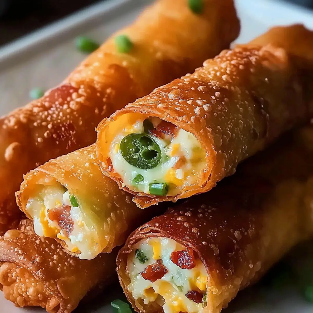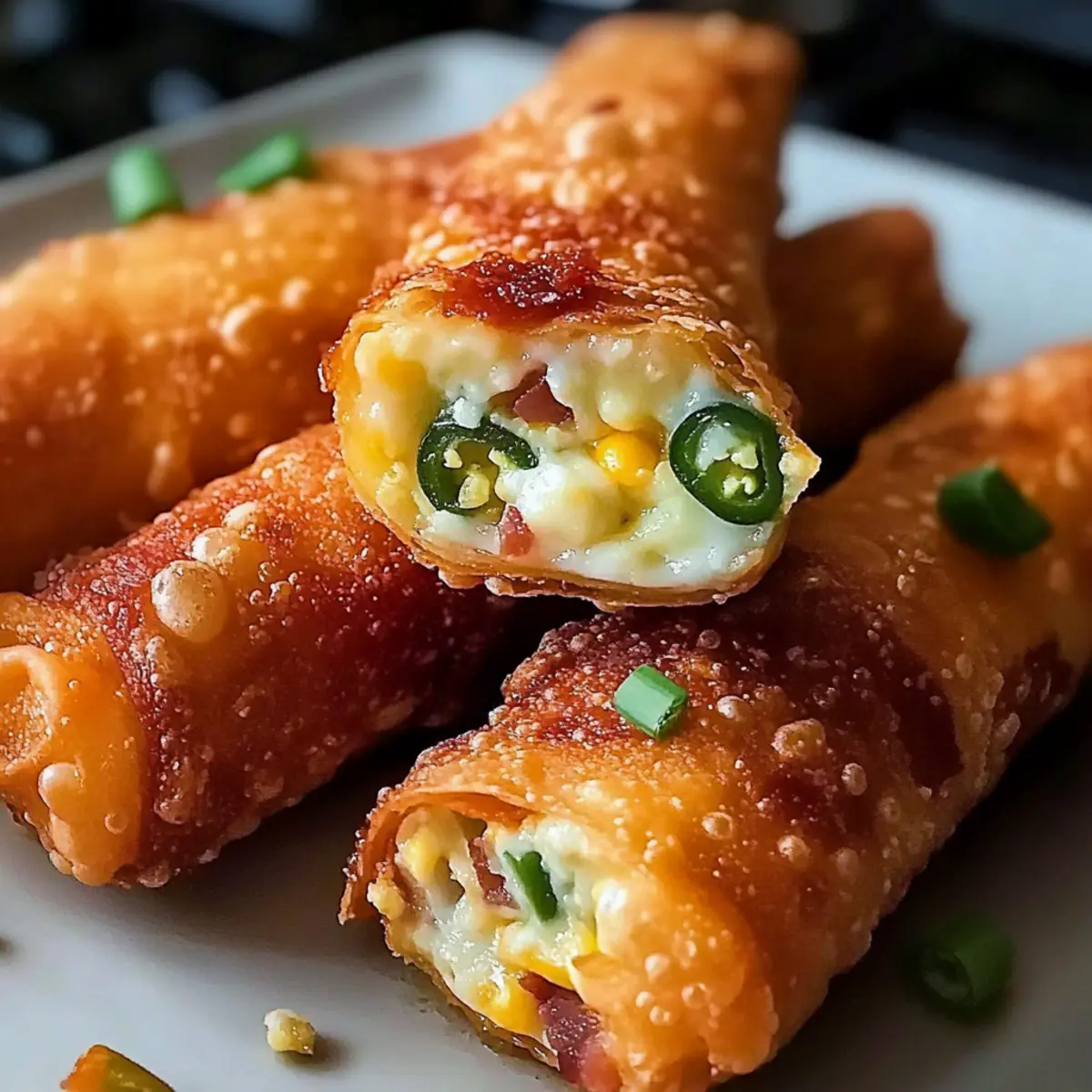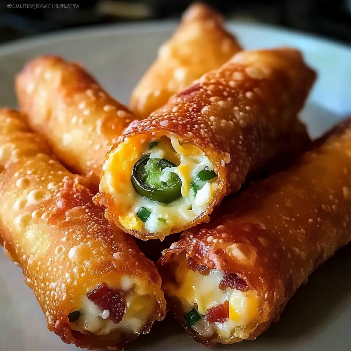 Jump to Recipe Print RecipeAs the oil sizzles in the pan, I can’t help but feel a rush of anticipation. These Bacon Jalapeño Popper Eggrolls are a delightful twist on an all-time favorite, bringing together the satisfying crunch and creamy filling we all crave. Whether you’re hosting a casual get-together or just seeking a tasty escape from everyday eats, this party snack stands out with its irresistible combination of smoky bacon and a gentle jalapeño kick. Plus, they’re incredibly quick to whip up, meaning less time in the kitchen and more time enjoying with friends! Ready to elevate your appetizer game? Let’s dive into this delicious recipe that’s sure to become a new crowd-pleaser at your next gathering. Why Are Bacon Jalapeño Eggrolls a Must? Crowd-Pleasing Delight: These eggrolls are the ultimate party snack, loved by everyone for their rich flavors! Crispy Perfection: With a golden-brown exterior, they deliver a satisfying crunch that pairs perfectly with a creamy filling. Flavor Fusion: The smoky bacon and zesty jalapeños create a blend that will keep your taste buds dancing. Quick and Easy: In just a few simple steps, you can easily whip up these treats and impress your guests without spending hours in the kitchen. Versatile Options: Feel free to customize the recipe! Substitute ingredients for dietary preferences, or experiment with spices to find your perfect match. These Bacon Jalapeño Popper Eggrolls are sure to become a staple at your next event, so why not make them today? Enjoy these flavorful bites alongside your favorite dips, and let the compliments roll in! Bacon Jalapeño Popper Eggrolls Ingredients • For a delightfully crispy treat, here’s what you’ll need for your Bacon Jalapeño Popper Eggrolls: For the Filling Cream Cheese – Creates a creamy filling that complements the crispy wrapper perfectly. Shredded Cheddar Cheese – Adds rich flavor; feel free to substitute with Monterey Jack or Pepper Jack for a kick! Bacon – Infuses the eggrolls with smoky goodness; turkey or vegetarian bacon works as a scrumptious alternative. Jalapeño Peppers – Brings just the right amount of spice, but for less heat, try Anaheim or poblano peppers. Green Onion – Offers a fresh note; chives can be a lovely substitute if you’re out. Garlic Powder – Amplifies the overall flavor; fresh minced garlic could also do the trick! Salt and Pepper – Essential for balancing flavors; don’t forget to taste as you go! For the Wrapping and Frying Eggroll Wrappers – Provides structure to the eggrolls; gluten-free wrappers are a great option for dietary needs. Vegetable Oil – Choose a neutral oil like canola or peanut oil to achieve that crispy texture when frying. With these ingredients on hand, you’re well on your way to creating delectable Bacon Jalapeño Popper Eggrolls that will impress friends and family alike! Step‑by‑Step Instructions for Bacon Jalapeño Popper Eggrolls Step 1: Prepare the Filling In a mixing bowl, combine softened cream cheese, shredded cheddar cheese, cooked and crumbled bacon, finely chopped jalapeños, sliced green onion, garlic powder, salt, and pepper. Mix these ingredients thoroughly until you have a smooth, cohesive filling. This delightful blend will be the heart of your Bacon Jalapeño Popper Eggrolls, so make sure every bite is packed with flavor! Step 2: Assemble the Eggrolls Lay an eggroll wrapper flat on a clean surface, with a corner facing you. Place about 2 tablespoons of the cream cheese mixture along the center diagonal of the wrapper. Gently fold the bottom corner over the filling, tucking it in slightly, before folding in the sides. Roll the wrapper tightly towards the top corner, moistening the edges with water to seal them securely. This will ensure your delicious filling stays perfectly enclosed during frying. Step 3: Heat the Oil In a deep skillet or pot, pour in vegetable oil, filling it about 2 inches deep. Heat the oil over medium heat to around 350°F (175°C). To check if the oil is ready, drop in a small piece of leftover eggroll wrapper; it should sizzle immediately when it touches the hot oil. Once the temperature is achieved, you’re ready to fry those Bacon Jalapeño Popper Eggrolls! Step 4: Fry the Eggrolls Carefully lower the assembled eggrolls seam-side down into the hot oil in batches, ensuring you don’t overcrowd the pan. Fry them for about 3-4 minutes or until they turn a beautiful golden brown and reach a lovely crisp texture. Use a slotted spoon to turn them occasionally for even cooking. The sizzling sound will let you know they are cooking beautifully! Step 5: Drain and Serve Once your Bacon Jalapeño Popper Eggrolls have reached the perfect golden hue, remove them from the oil and allow them to drain on a plate lined with paper towels. This step helps absorb excess oil, ensuring a crispy finish. Serve them hot, straight from the skillet, with your favorite dipping sauce, and watch your guests revel in delight! Expert Tips for Bacon Jalapeño Popper Eggrolls Temperature Matters: Ensure oil is heated to 350°F (175°C) before frying; if it’s too cool, eggrolls can become greasy instead of crispy. Batch Cooking: Avoid overcrowding the frying pan. Fry in small batches to maintain oil temperature for an even golden-brown color. Sealing Technique: Make sure to properly seal the edges of the eggrolls with water to prevent any filling from leaking during frying. Experiment with Fillings: Feel free to add other ingredients like diced bell peppers or varying cheeses to customize your Bacon Jalapeño Popper Eggrolls to your taste. Leftover Storage: Cool leftover eggrolls completely before storing them in an airtight container, placing a paper towel inside to absorb moisture. What to Serve with Bacon Jalapeño Popper Eggrolls These crispy, creamy bites are just the beginning of a delicious gathering feast that will tantalize your taste buds. Creamy Ranch Dip: The cool, zesty flavor of ranch pr