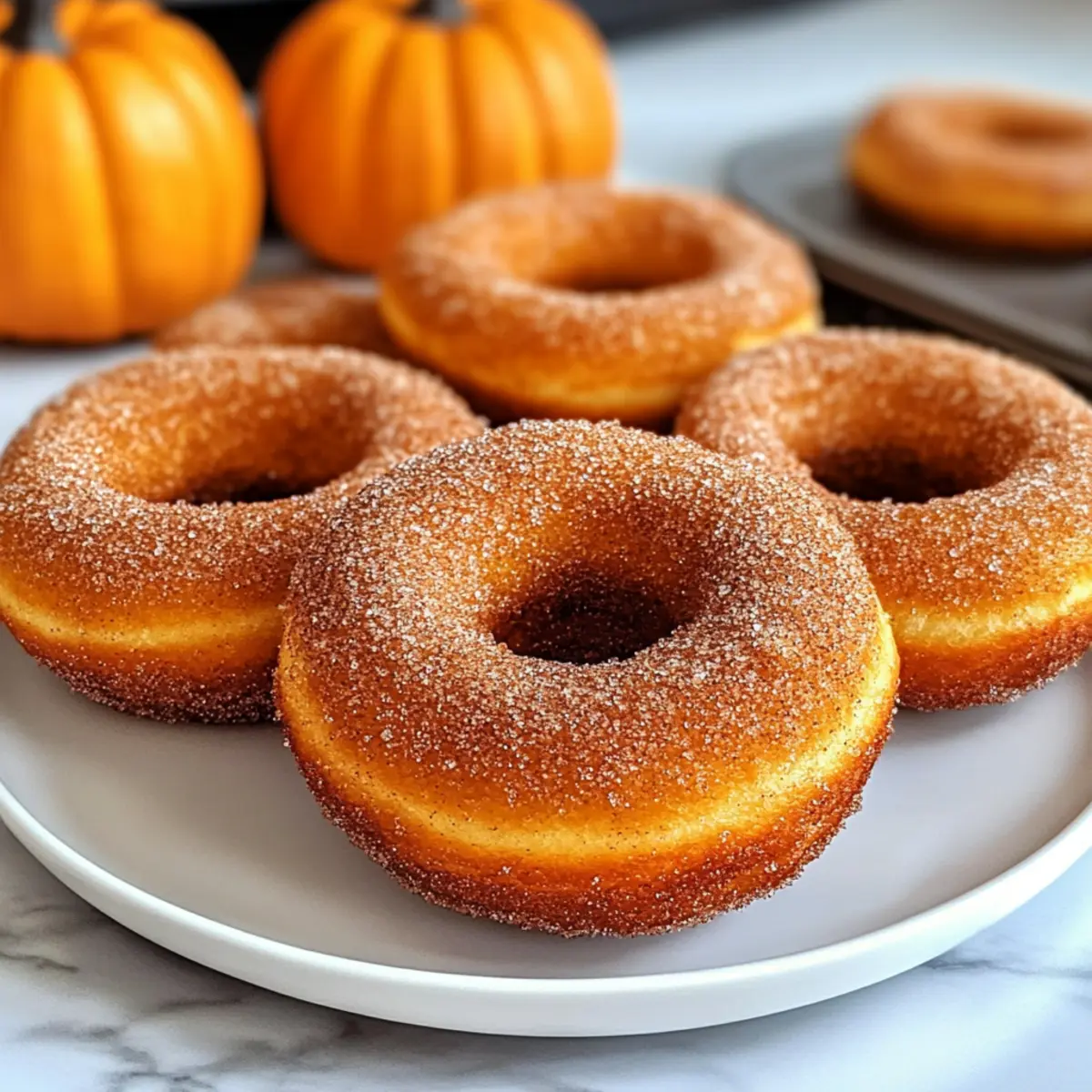 Jump to Recipe Print RecipeThe smell of cinnamon and pumpkin wafts through the kitchen, transporting me to the heart of autumn with just a whisk and a few ingredients. These Easy Baked Pumpkin Donuts are my go-to comforting treat when I crave something sweet yet wholesome. In just 25 minutes, you can whip up these delightful, healthier dessert options, perfect for those who want to indulge without the guilt. Plus, they’re easily adaptable for any dietary need—think dairy-free or even vegan! Whether paired with a warm cup of coffee or enjoyed as a cozy afternoon snack, these donuts invite you to savor the flavors of fall. Would you believe that such a quick dessert can also be this nourishing? Let’s dive into the recipe together! Why Try These Baked Pumpkin Donuts? Quick Preparation: In just 25 minutes, you can enjoy these delightful autumn treats without fuss. Nourishing Ingredients: Made with wholesome pumpkin puree and less sugar, these donuts are not just tasty but also healthier. Versatile Options: Easily adapt the recipe for dairy-free or vegan diets to cater to everyone at the table. Delightful Flavor: Each bite bursts with the warmth of cinnamon and nutmeg, evoking cozy fall memories. Crowd-Pleasing Treat: Perfect for sharing, these donuts are ideal for brunch or as a sweet snack alongside your favorite hot beverage. Don’t forget to check out my tips on make-ahead options for stress-free entertaining! Baked Pumpkin Donuts Ingredients • Discover the essential components for this delightful treat! For the Batter Pumpkin Puree – Provides moisture and flavor; use pure pumpkin puree for best results. Milk – Binds ingredients and adds moisture; almond milk is a great dairy-free option. Vegetable Oil – Ensures a moist texture; can substitute with melted coconut oil for a healthier option. All-Purpose Flour – Offers structure and body; whole wheat flour can be used for added fiber. Brown Sugar – Sweetens the donuts; coconut sugar is a lower glycemic alternative. Pumpkin Pie Spice – Adds warm spice notes; customizable with individual spices to suit your taste. Baking Powder – Serves as a leavening agent for a light texture. Cinnamon – Enhances flavor with cozy warmth, making these baked pumpkin donuts irresistible. Salt – Balances sweetness and enhances overall flavor. Nutmeg – Provides an extra layer of warm spice. For the Coating Granulated Sugar – Used for the cinnamon-sugar coating; coconut sugar can substitute for a less refined option. Butter – Adds richness to the coating; use a dairy-free alternative for vegan versions. Step‑by‑Step Instructions for Easy Baked Pumpkin Donuts Step 1: Preheat the Oven Begin by preheating your oven to 350°F (175°C). While the oven warms up, grab your donut pan and lightly spray it with non-stick cooking spray to ensure easy release after baking. This step is crucial, as a well-prepared pan will help your baked pumpkin donuts come out perfectly shaped and golden. Step 2: Mix Wet Ingredients In a medium mixing bowl, whisk together the pumpkin puree, brown sugar, vegetable oil, and milk until the mixture is smooth and well combined. This should take about 1-2 minutes of vigorous whisking. The natural sweetness of the pumpkin and the brown sugar will create a beautiful base for your donuts, adding that essential autumn flavor. Step 3: Combine Dry Ingredients In a separate large bowl, sift together the all-purpose flour, baking powder, pumpkin pie spice, cinnamon, nutmeg, and salt. Whisk the dry ingredients gently to ensure they are evenly distributed, as this will help your easy baked pumpkin donuts rise beautifully. Look for a well-blended mixture free of lumps before moving to the next step. Step 4: Mix Mixtures Carefully add the dry ingredients to the wet mixture in three additions, stirring gently with a spatula until just combined. Be cautious not to over-mix; a few lumps are just fine and will give your donuts that light and airy texture. The batter should be thick yet pourable, ready for the next step of filling the donut pan. Step 5: Pipe the Batter Transfer the batter into a piping bag or a zip-top bag with a corner snipped off. This method allows for easy filling of the donut cavities. Fill each cavity about 2/3 full, leaving enough space for the donuts to rise. It’s essential to do this step carefully to achieve uniformly shaped donuts that are easy to coat later. Step 6: Bake Place the filled donut pan in the preheated oven and bake for 15-16 minutes. To check for doneness, insert a toothpick into the center of a donut; it should come out clean. Once ready, the tops of the donuts will have a slight spring when touched, indicating they are perfectly baked without being dry. Step 7: Cool Donuts After baking, remove the donut pan from the oven and allow it to cool on a wire rack for about 10 minutes. This cooling period is essential, as it helps the donuts firm up a bit. Once cooled, gently pop them out of the pan to continue cooling completely on the wire rack. Step 8: Coating Prep While the donuts cool, prepare the cinnamon-sugar coating by combining granulated sugar and cinnamon in a shallow dish. Mix evenly until the spices are well incorporated. This will create a delightful outer crunch for your baked pumpkin donuts that contrasts perfectly with the soft interior. Step 9: Dip and Serve Brush each warm donut with melted butter or dip the top in it, then roll the buttered side into the cinnamon-sugar mixture. Ensure each donut is generously coated for that sweet, crunchy exterior. Arrange your finished easy baked pumpkin donuts on a plate, and they’re ready to enjoy with your favorite fall beverage! How to Store and Freeze Baked Pumpkin Donuts Room Temperature: Keep your baked pumpkin donuts in an airtight container for up to 3 days at room temperature to maintain their softness and flavor. Fridge: If you want to extend their shelf life, refrigerate for up to 5 days in an airtight container. This ke