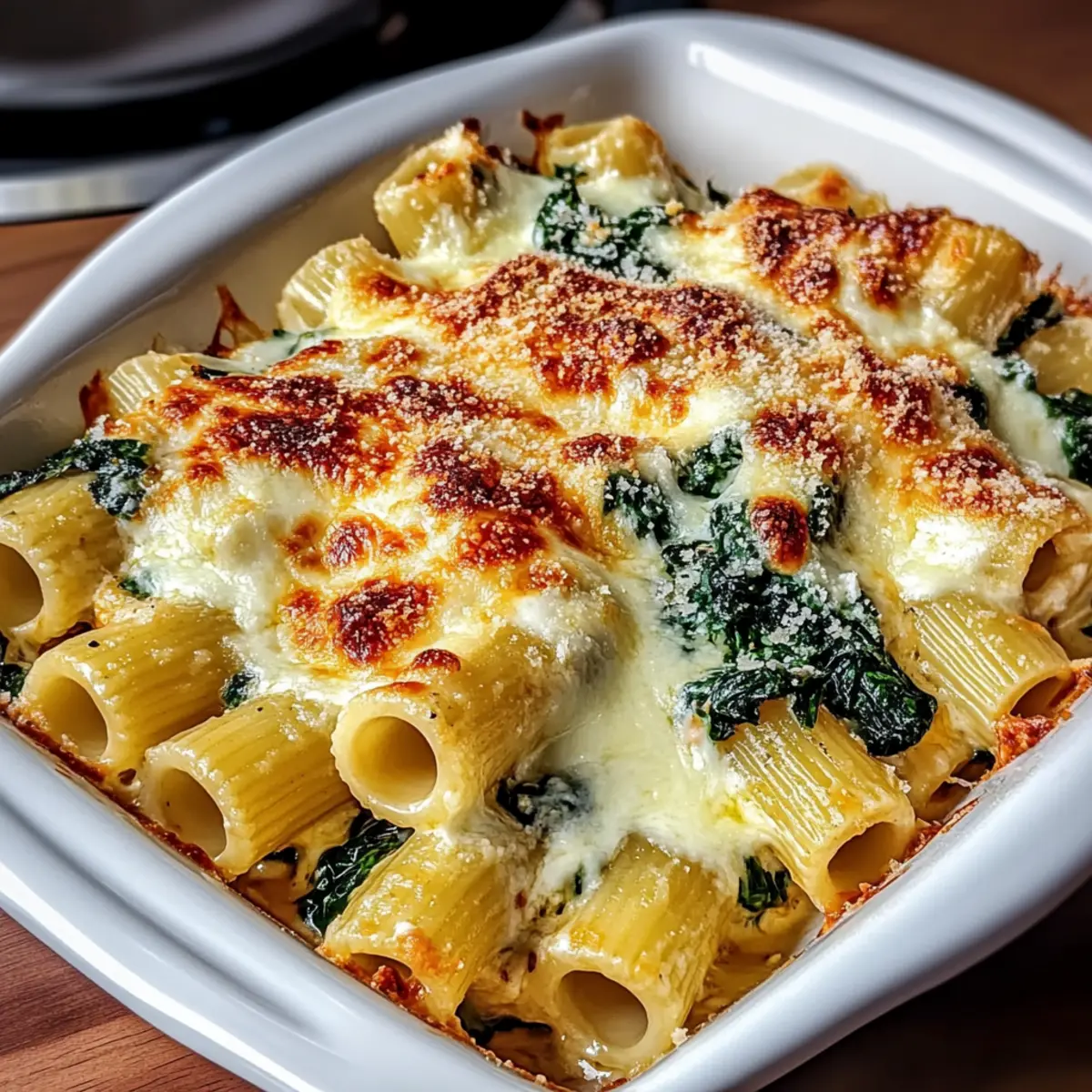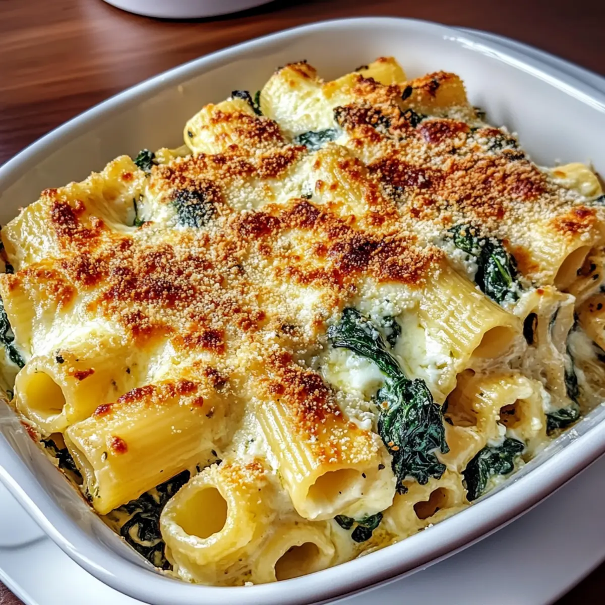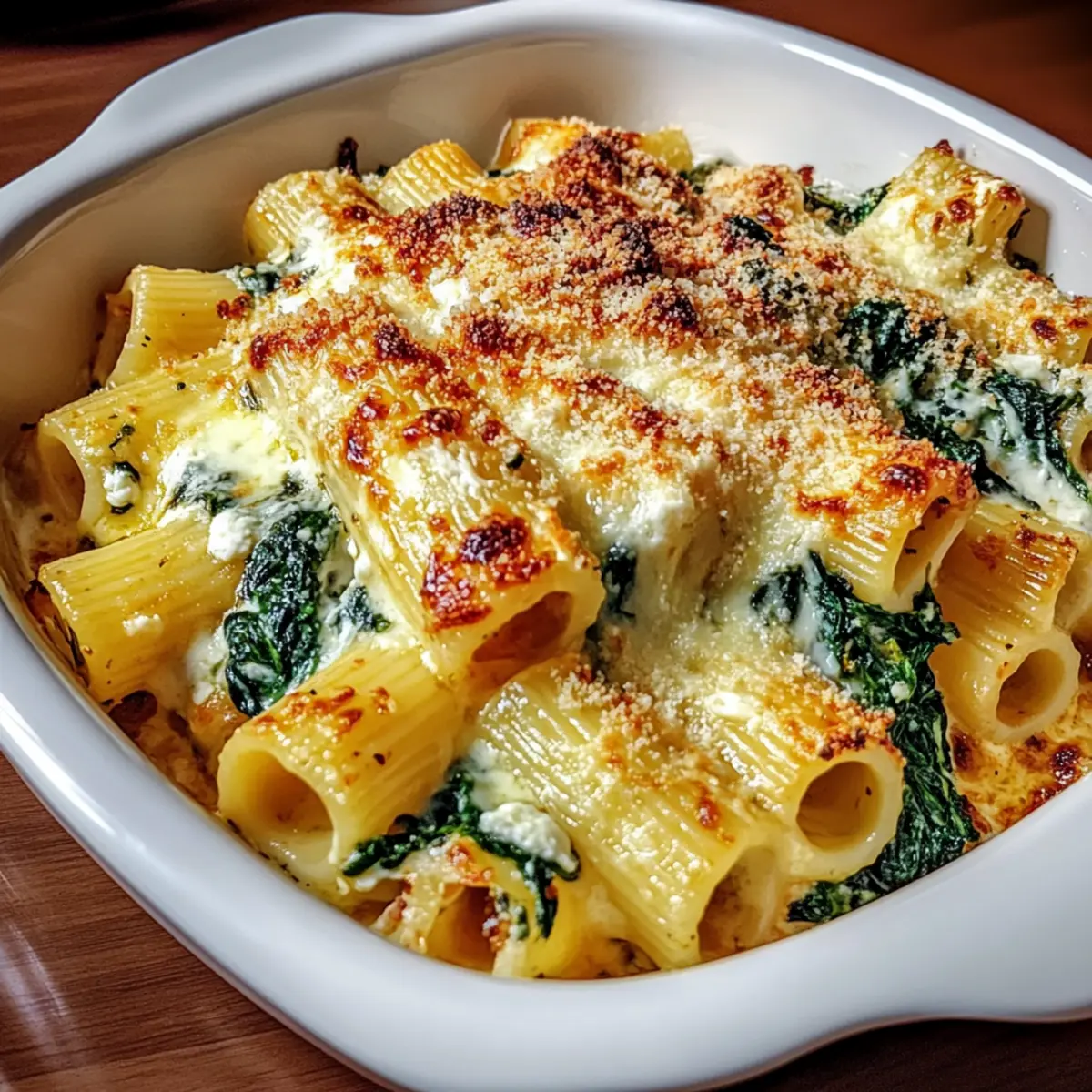 Jump to Recipe Print RecipeAs the aroma of garlic sizzles in the pan, I can’t help but feel a wave of nostalgia wash over me, reminding me of cozy family dinners. This Creamy Baked Rigatoni with Spinach and Ricotta is the ultimate comfort dish, marrying the creaminess of ricotta with vibrant spinach in a cheesy embrace that melts in your mouth. What’s even better? It’s a beginner-friendly recipe that comes together in just about 1 hour and 20 minutes, making it perfect for those busy weeknights when you crave a satisfying meal. With its delightful layers and easy prep, this baked rigatoni will have everyone at the table asking for seconds. Are you ready to dive into a comforting bowl of creamy goodness that will transform your dinner routine? Why is this baked rigatoni unforgettable? Comforting, Creamy Layers: Each bite delivers a velvety blend of ricotta and vibrant spinach, making it a dish that wraps you in warmth. Quick and Easy: Perfect for beginner cooks, this recipe simplifies meal prep without sacrificing flavor. You’ll have a hearty meal ready in just 1 hour and 20 minutes! Crowd-Pleasing Appeal: Whether it’s a family dinner or a gathering with friends, everyone will fall in love with this cheesy pasta delight. Versatile Options: Feel free to switch up the greens or add meats for a personalized twist. This dish can cater to different tastes and dietary needs effortlessly! Perfectly Golden Crust: The bubbling mozzarella on top creates an irresistible texture that contrasts beautifully with the creamy filling. Transform your mealtime with this extraordinary Baked Rigatoni with Spinach and Ricotta that delights every palate! Baked Rigatoni with Spinach and Ricotta Ingredients For the Pasta Rigatoni Pasta – A sturdy choice that captures the creamy sauce perfectly. For the Filling Olive Oil – Ideal for sautéing, adding a rich flavor to the dish. Garlic – Fresh garlic is best for maximum aromatic impact. Fresh Spinach – Brightens the dish and can be swapped with thawed frozen spinach if needed. Ricotta Cheese – Essential for that creamy texture; cottage cheese is a good alternative. Large Egg – Binds the filling together, ensuring a cohesive mixture. Grated Parmesan Cheese – Adds a nutty flavor—mix some in and save half for topping. For the Topping Shredded Mozzarella Cheese – Delivers that gooey texture and a desirable golden crust. For the Sauce Tomato Sauce – Provides moisture and a burst of acidity; choose your favorite style! Salt and Pepper – These staples enhance the overall flavor, bringing everything together. Dried Oregano and Dried Basil – Infuses the dish with classic Mediterranean notes. Optional Red Pepper Flakes – Add these for a touch of heat, adjusting to your taste. Dive into this deliciously creamy Baked Rigatoni with Spinach and Ricotta that promises to become a cherished family favorite! Step‑by‑Step Instructions for Baked Rigatoni with Spinach and Ricotta Step 1: Preheat and Grease Start by preheating your oven to 350°F (180°C). While the oven warms up, take a large baking dish and generously grease it with olive oil to prevent sticking. This will create a lovely base for your creamy baked rigatoni, ensuring each layer bakes beautifully. Step 2: Cook the Pasta Bring a large pot of salted water to a rolling boil. Add the rigatoni and cook for about 8 minutes until it is just shy of al dente. Drain the pasta and set it aside to cool slightly. This step is crucial as it allows the pasta to absorb flavors from the sauce during baking. Step 3: Sauté the Garlic In a large skillet, warm a tablespoon of olive oil over medium heat. Add minced garlic and sauté for approximately 1 minute, or until it becomes fragrant but not browned. This will infuse your baked rigatoni with aromatic flavors, making it even more delicious. Step 4: Wilt the Spinach Next, add the fresh spinach to the skillet and cook for about 3 to 4 minutes, stirring frequently, until the spinach is wilted and significantly reduced in volume. Once cooked, remove the skillet from the heat and allow it to cool slightly for later incorporation into the ricotta mixture. Step 5: Prepare the Ricotta Mixture In a mixing bowl, combine the ricotta cheese, a large egg, half of the grated Parmesan cheese, salt, pepper, oregano, and basil. Stir until the mixture is smooth, creating a creamy filling that pairs perfectly with the other ingredients in your baked rigatoni. Step 6: Fold in Spinach Gently fold the wilted spinach into the ricotta mixture until well combined. The vibrant green of the spinach will contrast beautifully with the creamy ricotta. This blend forms the heart of your baked rigatoni, adding both flavor and nutrition. Step 7: Layer the Sauce Spread a layer of tomato sauce evenly across the bottom of your greased baking dish. This initial layer serves to keep the rigatoni moist while also adding a delicious tangy flavor. Be sure to cover the entire base for optimal results! Step 8: Coat the Pasta In a large bowl, mix the remaining tomato sauce with the drained rigatoni, ensuring each piece is evenly coated. This step adds flavor throughout the dish, melding the rich tomato essence with every bite of pasta. Step 9: Assemble the Layers Layer half of the coated rigatoni in the prepared baking dish, then spread the ricotta-spinach mixture evenly over the pasta. This creates a delicious creamy layer that enhances the comfort food qualities of your baked rigatoni. Step 10: Top with Remaining Rigatoni Now, add the remaining rigatoni on top of the ricotta mixture, forming a final layer. Sprinkle the top generously with shredded mozzarella cheese and the remaining grated Parmesan. This cheesy topping will create an irresistible golden crust as it bakes. Step 11: Bake Cover the baking dish with aluminum foil and bake in the preheated oven for 20 minutes. After that, remove the foil and continue baking for an additional 15 to 20 minutes, or until the cheese is bubbly and 
