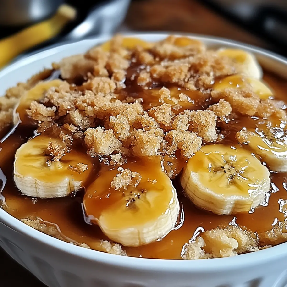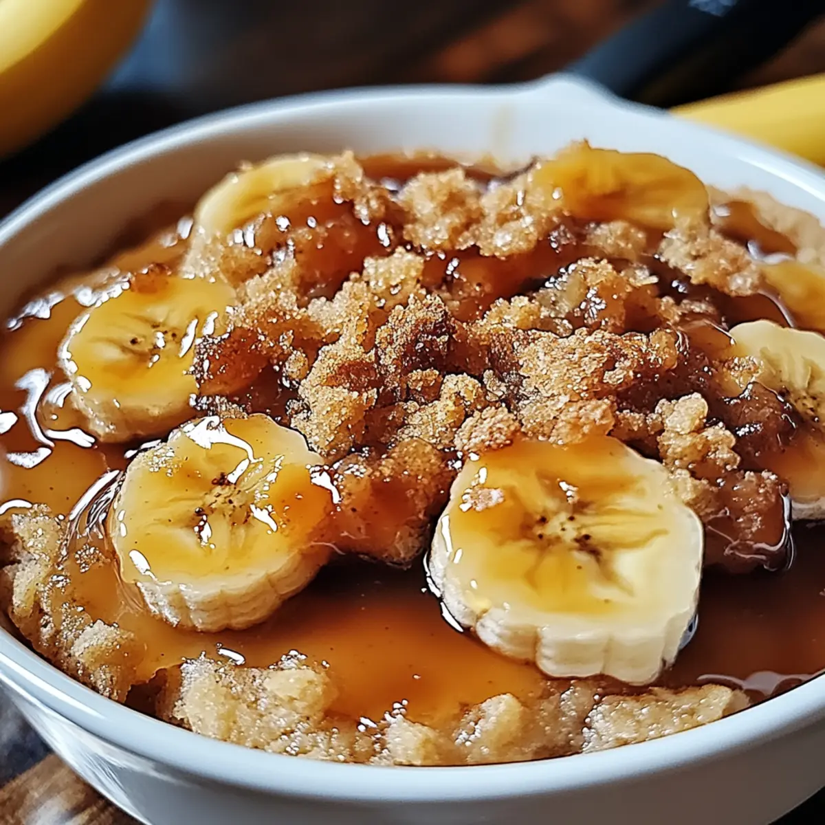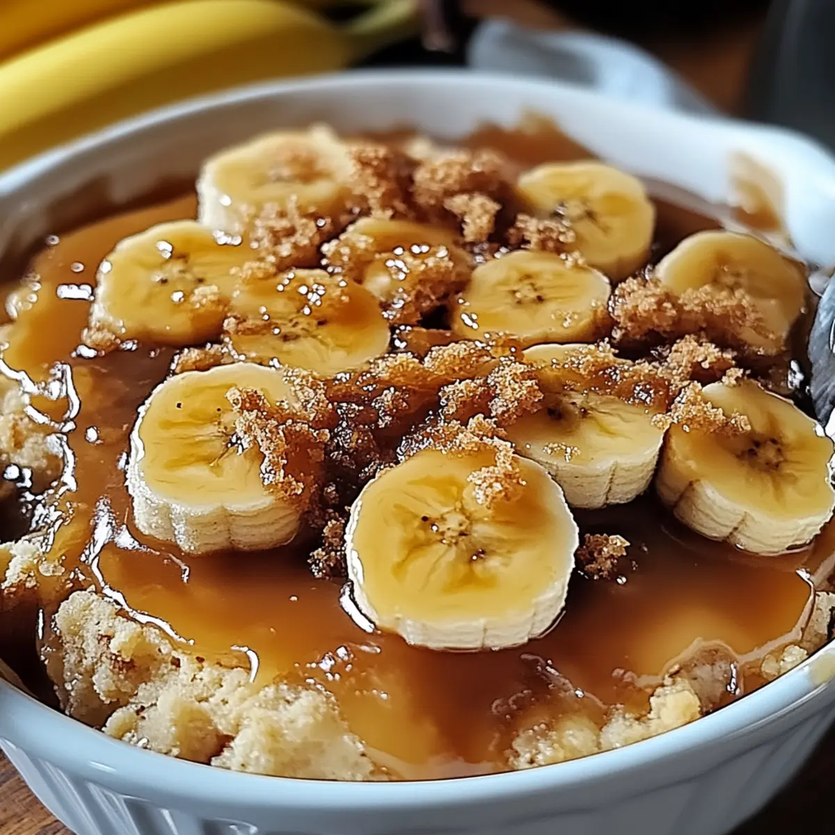 Jump to Recipe Print RecipeAs I pulled that warm, bubbling Bananas Foster Cobbler from the oven, the kitchen filled with an aroma that instantly transported me to my favorite café. It’s funny how food can evoke such fond memories. This delightful dessert marries the comfort of a traditional cobbler with the indulgent charm of caramelized bananas and a hint of rum. Perfect for any gathering, this recipe not only showcases an easy 30-minute prep but also promises to be a crowd-pleaser with its inviting, biscuit-like topping. Whether it’s for a cozy weeknight dinner or a special occasion, I can’t wait to share this comforting treat that always brings smiles. Curious about how to create this blissful dessert at home? Let’s dig in! Why is Bananas Foster Cobbler a Must-Try? Irresistible Flavors: The blend of caramelized bananas, rich rum, and warm brown sugar creates an explosion of taste that will have everyone asking for seconds. Super Easy: With just 30 minutes of prep, this dessert won’t dominate your evening, allowing you to focus on the fun parts of hosting. Perfect for Sharing: Its warm, inviting aroma and comforting flavors make it an ideal choice for gatherings or cozy family dinners. Customizable: Feel free to swap in your favorite fruits or add a touch of cinnamon or nuts, making each batch unique! Ultimate Texture: The contrast between the gooey banana filling and the tender biscuit topping is simply heavenly. With all these delightful qualities, this Bananas Foster Cobbler is bound to become a staple in your dessert repertoire! Bananas Foster Cobbler Ingredients For the Banana Filling • Bananas – Adds natural sweetness and moisture; overripe bananas are best for flavor. • Brown Sugar – Provides rich sweetness and caramel flavor; can be substituted with coconut sugar for a different taste. • Butter – Contributes to richness; unsalted butter offers better control over saltiness. • Rum – Introduces depth and warmth; use vanilla extract as a non-alcoholic substitute. For the Cobbler Topping • Flour – Forms the base structure of the cobbler; all-purpose flour works, or consider a gluten-free blend. • Baking Powder – Acts as a leavening agent for the topping to rise; ensure it’s fresh for best results. • Milk – Moistens the dough; almond milk serves as an excellent dairy-free alternative. • Butter – Adds richness to the topping; again, unsalted is preferred for precise flavor control. With these ingredients, you’re on your way to creating a heavenly Bananas Foster Cobbler that will impress at any occasion! Step‑by‑Step Instructions for Bananas Foster Cobbler Step 1: Prepare Bananas Begin by preheating your oven to 350°F (175°C). In a large skillet over medium heat, melt 3 tablespoons of unsalted butter. Once melted, add sliced overripe bananas and sprinkle about 1/2 cup of brown sugar over them. Sauté the bananas for about 5 minutes, stirring gently until they are caramelized and golden. Then, carefully pour in 1/4 cup of rum and let it simmer for another minute to combine the flavors, creating a luscious banana filling. Step 2: Make Cobbler Topping In a mixing bowl, combine 1 cup of all-purpose flour with 2 teaspoons of baking powder and a pinch of salt. Stir together until evenly mixed. Next, add 1/4 cup of unsalted butter, cubed, and mix using a pastry cutter or your fingers until the mixture resembles coarse crumbs. Gradually pour in 1/2 cup of milk and stir just until combined to form a thick batter, being careful not to overmix for a light, fluffy topping. Step 3: Combine Ingredients Spread the caramelized banana mixture evenly into a greased 8×8-inch baking dish. Gently dollop the cobbler topping over the banana filling using a spoon. Try to cover the bananas as thoroughly as possible, leaving some gaps for steam to escape. This will ensure that your Bananas Foster Cobbler has that delightful contrast between crispy topping and sticky banana goodness. Step 4: Bake Place the assembled Bananas Foster Cobbler in the preheated oven and bake for about 30 to 35 minutes. Keep an eye on it; the topping should turn a beautiful golden brown and appear set in the center when done. A toothpick inserted into the topping should come out clean, confirming it’s cooked through. Step 5: Serve Once out of the oven, allow the cobbler to cool for about 10 minutes to settle before serving. The heavenly aroma wafting from the dish is irresistible! For an indulgent touch, serve warm topped with a scoop of vanilla ice cream, allowing it to melt slightly into the cobbler for a delightful mix of flavors and textures. How to Store and Freeze Bananas Foster Cobbler Fridge: Store leftover Bananas Foster Cobbler in an airtight container for up to 3 days. This will keep it fresh while allowing the flavors to meld. Freezer: If you want to save it for later, freeze the cobbler tightly wrapped in plastic wrap and then aluminum foil for up to 2 months. Thaw in the fridge before reheating. Reheating: Warm the cobbler in the oven at 350°F (175°C) for 15-20 minutes or until heated through. This will restore the lovely texture and flavor, making it as delightful as when it was first baked. Expert Tips for Bananas Foster Cobbler Don’t Overmix: Keep the topping light and fluffy by mixing just until combined. Overmixing can lead to a dense texture that won’t rise properly. Ripeness Matters: Use overripe bananas for the best flavor and sweetness in your Bananas Foster Cobbler. They will caramelize beautifully and enhance the overall taste. Oven Watch: Keep an eye on the cobbler while baking; a golden-brown topping indicates it’s ready. Check around the 30-minute mark to prevent overcooking. Customize Flavors: Feel free to add in spices like cinnamon or nutmeg to elevate the taste. You can also experiment with different fruits for unique variations. Serve Warm: This dessert is best enjoyed fresh out of the oven. Pair it with vanilla ice cream for an irresistib