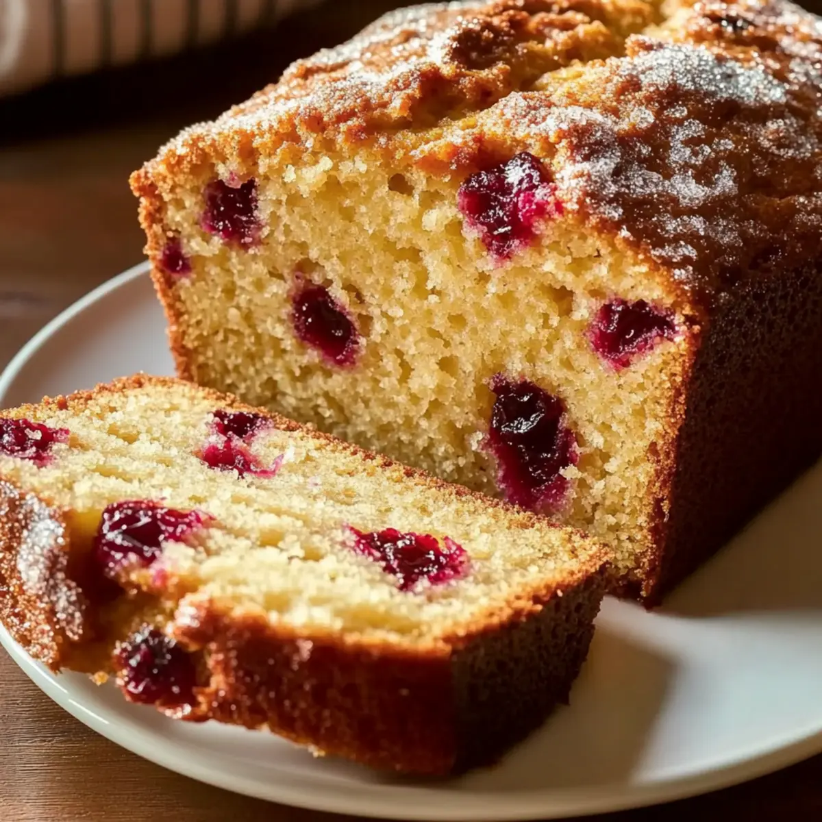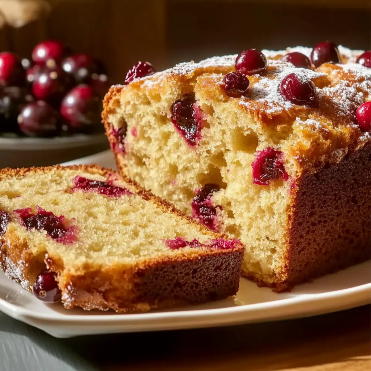Jump to Recipe Print RecipeA sweet aroma wafts through my kitchen, transporting me back to cozy mornings filled with laughter and warmth. There’s something truly special about the Barefoot Contessa Cranberry Orange Bread; it’s more than just a recipe—it’s a heartfelt addition to any breakfast table or a cherished gift for loved ones. This delightful quick bread marries the tartness of fresh cranberries with the zesty brightness of orange, creating a treat that’s both comforting and refreshing. Best of all, it’s incredibly easy to whip up in just an hour, making it perfect for those busy days when you want something delicious without the fuss. Whether you’re enjoying a slice with your morning coffee or presenting it as a thoughtful token during the festive season, this bread is sure to impress. Curious about how to make this moist delight? Let’s dive into the recipe! Why is this bread a must-try? Irresistibly Moist: The Barefoot Contessa Cranberry Orange Bread features a tender and moist crumb that melts in your mouth, ensuring every bite is pure bliss. Bright, Zesty Flavor: Bursting with fresh orange juice and zest, the tangy citrus elevates the tart cranberries, making this bread a refreshing delight. Quick and Easy: With minimal effort required, you can have this delicious bread ready in just an hour—perfect for busy mornings or unexpected guests. Gifting Perfect: Wrapped beautifully, it makes a thoughtful homemade gift that resonates with heartfelt warmth during holidays or special occasions. Versatile Options: This recipe easily accommodates personal tastes; you can use dried cranberries for a sweeter twist or add nuts for a delightful crunch! Elevate your breakfast experience today and impress your loved ones with this homemade masterpiece! Barefoot Contessa Cranberry Orange Bread Ingredients For the Bread All-purpose flour – Provides structure to the bread; substitute with a 1:1 gluten-free flour blend for gluten-free options. Baking powder – Acts as a leavening agent, ensuring the bread rises properly. Salt – Enhances the flavors of the other ingredients; do not omit for the best taste. Granulated sugar – Adds sweetness; reduce if using sweeter dried cranberries. Orange zest – Infuses the bread with vibrant citrus aroma and flavor; use zest from one large orange for optimal taste. Fresh orange juice – Adds moisture and amplifies the orange flavor; freshly squeezed is always best! Unsalted butter – Contributes to the bread’s tenderness; make sure it’s melted and cooled before mixing it in. Eggs – Provides richness and binds the ingredients together; large eggs work best. Vanilla extract – Adds a lovely warm flavor note, enhancing the bread’s sweetness. Fresh or dried cranberries – The star ingredient that provides tartness; roughly chop before adding. Powdered sugar – Optional for a sweet decorative finish when dusted on the bread. Wrap this delightful Barefoot Contessa Cranberry Orange Bread tightly in plastic wrap and share the warmth! Step‑by‑Step Instructions for Barefoot Contessa Cranberry Orange Bread Step 1: Preheat the Oven Begin by preheating your oven to 350°F (175°C). Prepare a 9×5-inch loaf pan by greasing and flouring it or lining it with parchment paper for easy removal. This ensures your Barefoot Contessa Cranberry Orange Bread bakes evenly, providing a beautifully golden crust. Step 2: Mix Dry Ingredients In a large mixing bowl, whisk together the all-purpose flour, baking powder, salt, granulated sugar, and orange zest. This delicious mix forms the base of your bread and should smell fragrant. Take a moment to fully combine these ingredients to create a wonderful foundation for your quick bread. Step 3: Combine Wet Ingredients In another bowl, mix together the fresh orange juice, melted and cooled butter, eggs, and vanilla extract until smooth. This mixture brings moisture and a rich flavor to your Barefoot Contessa Cranberry Orange Bread. Ensure all wet ingredients are well blended for a consistent and delightful texture. Step 4: Combine Wet and Dry Ingredients Gently add the wet mixture to the dry ingredients, stirring just until combined. Be careful not to overmix, as this can lead to a dense result. You want the batter to remain slightly lumpy for the lightest, most tender bread. This step is crucial for achieving that moist texture you desire! Step 5: Fold in Cranberries Carefully fold in the fresh or dried cranberries, ensuring they are evenly distributed throughout the batter. Using a spatula, gently mix until just incorporated, maintaining the light consistency of the dough. The bright red cranberries will provide delightful bursts of tartness in each slice of your prepared bread. Step 6: Transfer Batter to Pan Pour the batter into your prepared loaf pan and smooth the top using a spatula. This helps create an even rise as your Barefoot Contessa Cranberry Orange Bread bakes. A well-distributed batter leads to even cooking and a beautiful loaf shape that you’ll be proud to serve. Step 7: Bake the Bread Place the loaf pan in the oven and bake for 50–60 minutes. Keep an eye on your bread; it’s done when it turns a beautiful golden brown and a toothpick inserted into the center comes out clean. The aroma of cranberries and orange will begin to fill your kitchen, so enjoy this moment! Step 8: Cool and Serve Once baked, remove the bread from the oven and let it cool in the pan for about 10 minutes. After that, carefully transfer the bread to a wire rack to cool completely. If desired, dust with powdered sugar for a sweet finish. Your Barefoot Contessa Cranberry Orange Bread is now ready to slice and savor! What to Serve with Barefoot Contessa Cranberry Orange Bread This enchanting quick bread pairs beautifully with various dishes, creating a delightful breakfast or brunch experience. Creamy Greek Yogurt: The tangy flavor of Greek yogurt adds a refreshing contrast and complements the tartness of the cranbe
