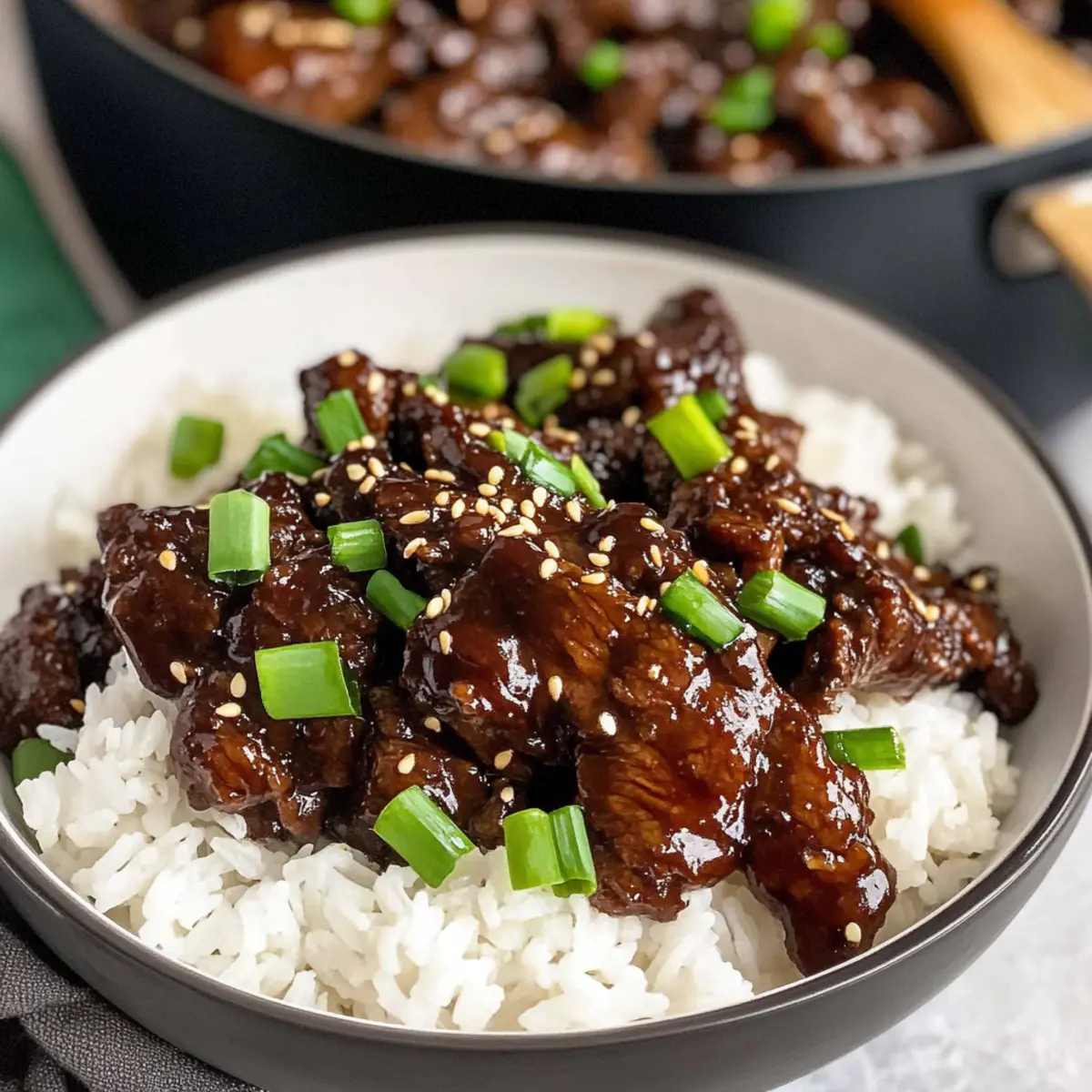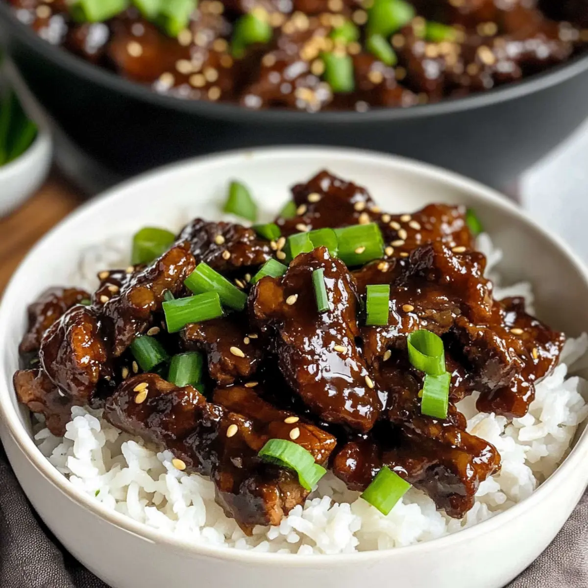 Jump to Recipe Print RecipeAs I pulled the tender strips of flank steak from the skillet, the rich aroma of sesame and ginger instantly transported me to a bustling Asian market. This Easy Beef Teriyaki recipe is a delightful twist on a classic dish, effortlessly showcasing how simple ingredients can create something extraordinary. In just 30 minutes, you can whip up a meal that will not only satisfy your taste buds but also please the entire family, making it a fantastic option for busy weeknights. The homemade teriyaki sauce is both flavorful and customizable, ensuring you can adapt it to your taste. Gather your loved ones around the table and watch as they savor each bite of this mouthwatering teriyaki beef recipe. Who else is excited to dive into a homemade dinner that feels like dining out? Why is this Beef Teriyaki Special? Quick and Easy: In just 30 minutes, you can create a flavorful meal perfect for busy weeknights. Homemade Goodness: Skip the takeout! This delightful recipe features a sweet and savory sauce made with pantry staples. Family-Friendly: It’s a crowd-pleaser that appeals to both kids and adults alike. Want more delicious beef options? Try my Beef Stew Hearty or Bbq Beef Tacos! Versatile Ingredients: Swap out flank steak for chicken or tofu and serve over rice, noodles, or even as lettuce wraps for a fresh twist. Satisfying Flavors: Enjoy the perfect blend of sweetness and umami in every bite, creating a memorable dining experience. Wholesome Meal: With around 306 calories per serving, it’s a nutritious choice for your family without compromising taste! Beef Teriyaki Ingredients For the Beef • Flank Steak – provides tender protein; slice thinly against the grain for a melt-in-your-mouth experience. • Cornstarch – helps coat the beef, creating that crave-worthy crispy texture. • Olive Oil – essential for sautéing; feel free to swap for your favorite cooking oil if preferred. For the Teriyaki Sauce • Soy Sauce – the flavorful base of your teriyaki sauce; go low-sodium for a healthier kick. • Water – used to dilute the soy sauce, creating the perfect pourable consistency. • Light Brown Sugar – adds necessary sweetness; honey or maple syrup can work in a pinch. • Rice Vinegar – provides acidity; apple cider vinegar is a great alternative for a tangy touch. • Sesame Oil – enhances flavor with a nutty note; can be omitted if necessary. • Fresh Ginger – adds aromatic zest; substitute with ground ginger if that’s what you have on hand. • Garlic – boosts the flavor profile; garlic powder can be used if fresh garlic isn’t around. • Honey – sweetens the sauce; for a vegan option, maple syrup is perfect. • Additional Cornstarch – use to thicken the sauce to your desired consistency. For Serving • Sesame Seeds – sprinkle for a delightful garnish; optional if you’re looking for a simpler presentation. • Green Onions – adds fresh and vibrant flavor; chives are a suitable substitute or skip if you prefer. Enjoy crafting this Beef Teriyaki recipe that promises to steal the show at dinner! Step‑by‑Step Instructions for Easy Beef Teriyaki Step 1: Prep Beef Begin by slicing the flank steak into thin strips against the grain, which ensures tenderness. Place the sliced beef in a Ziploc bag and sprinkle in cornstarch, sealing the bag before shaking gently to coat the meat evenly. Let it rest while you prepare the other ingredients, allowing for a crispy texture when cooked. Step 2: Cook Beef In a large skillet, heat 2 tablespoons of olive oil over medium-high heat until it shimmers, indicating it’s hot enough for cooking. Add the coated beef strips in a single layer, cooking for about 3-4 minutes on each side until they turn a rich brown and are cooked through. Once done, transfer the beef to a plate and set aside. Step 3: Make Sauce In a mixing bowl, whisk together ¼ cup of soy sauce, ¼ cup of water, 2 tablespoons of light brown sugar, 2 tablespoons of rice vinegar, and 1 teaspoon of sesame oil. Add minced fresh ginger and garlic, along with a tablespoon of honey and 1 tablespoon of cornstarch. Mix until smooth, ensuring all ingredients are well combined to create a luscious teriyaki sauce. Step 4: Thicken Sauce Reduce the heat in the skillet to medium and pour in your freshly made teriyaki sauce. Allow it to simmer gently for about 2-3 minutes, stirring occasionally. You’ll notice the sauce thickening and becoming glossy—this is a sign it’s ready to envelop your beef beautifully. Step 5: Combine Beef and Sauce Return the cooked beef strips to the skillet and toss them in the thickened teriyaki sauce. Stir continuously for about 1-2 minutes, ensuring each piece of beef is well-coated and heated through. This step ensures that every bite of your Easy Beef Teriyaki is saturated with flavor. Step 6: Garnish and Serve Once the beef is thoroughly coated, remove the skillet from heat. Serve your Easy Beef Teriyaki hot over fluffy rice or steamed vegetables. For an extra touch, sprinkle sesame seeds and finely chopped green onions on top. Dive into this delectable homemade meal that’s sure to impress! Make Ahead Options These Easy Beef Teriyaki strips are perfect for meal prep enthusiasts! You can slice the flank steak and coat it with cornstarch up to 24 hours in advance, storing it in an airtight container in the refrigerator to maintain crispiness. Additionally, you can prepare the teriyaki sauce a day prior and keep it sealed in a jar, allowing the flavors to deepen overnight. When you’re ready to cook, simply heat the oil, sauté the prepped beef for 3-4 minutes per side, and then add the pre-made sauce, simmering until thickened. With these make-ahead tips, you’ll enjoy a quick, delicious dinner with minimal effort, ensuring a satisfying homemade meal even on the busiest nights! How to Store and Freeze Beef Teriyaki Fridge: Store leftover Beef Teriyaki in an airtight container in the refrigerator for up 