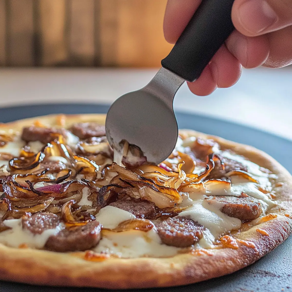 Jump to Recipe Print RecipeAs I stood by the grill at our last tailgate, I couldn’t help but overhear a couple of friends debating the best game day snacks. The buzz around beer brats was palpable, but what if we could elevate that iconic flavor combination? Enter the Beer Brat and Caramelized Onion Pizza! This recipe takes those savory beer-soaked brats and pairs them with sweet, caramelized onions atop a crispy pizza crust, topped with melty mozzarella—because who doesn’t love a pizza twist on a classic? Not only is it an absolute crowd-pleaser perfect for sharing with friends during the big game, but it’s also surprisingly simple to whip up at home. Curious about how to create this delicious masterpiece? Let’s dive in! Why Try Beer Brat Pizza? Flavor Explosion: This pizza packs a punch with the rich taste of beer brats and the sweetness of caramelized onions—an unforgettable combo! Crowd Favorite: Whether it’s game day or a casual family dinner, this dish is sure to impress everyone at your table. Easy Preparation: With straightforward steps, you can whip this up without culinary stress, leaving more time for fun and friends. Tailgate Ready: Perfect as a hearty snack for tailgating, it brings that outdoor vibe right to your kitchen. Gluten-Free Option: Want to cater to dietary needs? Simply swap the crust for a gluten-free version without sacrificing flavor! Embrace the fun of game time eats with this Beer Brat and Caramelized Onion Pizza that feels like a cozy hug in every bite! Beer Brat and Caramelized Onion Pizza Ingredients For the Toppings Bratwursts – Use uncooked bratwursts simmered in beer for an authentic flavor. Caramelized Onions – Finely slice yellow onions for sweetness; red onions offer a sharper taste. Fresh Mozzarella – This cheese melts beautifully and provides creaminess; substitute with provolone for a different flavor. For the Cooking Light Beer – A pale lager enhances the brats’ flavor; feel free to use your favorite brew! Butter – Essential for caramelizing the onions and frying the brats; olive oil is a great substitute. For the Crust Thin Pizza Crust – You can use store-bought or homemade; whole wheat or gluten-free crusts work wonderfully. Embrace the delightful flavors of Beer Brat and Caramelized Onion Pizza with these fresh and delicious ingredients! Step‑by‑Step Instructions for Beer Brat and Caramelized Onion Pizza Step 1: Prepare Bratwursts Begin by pouring a can of light beer into a deep pan. Add uncooked bratwursts, ensuring they’re fully submerged. Poke holes in the brats with a fork to allow flavor infusion. Bring the mixture to a boil, then simmer for 20 minutes, or until the brats turn gray and firm but not cooked through. Step 2: Caramelize Onions In a separate skillet, melt 1.5 tablespoons of butter over medium heat. Once melted, add finely sliced yellow onions, stirring well to coat. Cook the onions for about 30 minutes, stirring occasionally. They should become brown and translucent, developing a rich sweetness that will beautifully complement the Beer Brat and Caramelized Onion Pizza. Step 3: Fry Brats After simmering, transfer the bratwursts to the skillet with the remaining butter. Fry them for 4-5 minutes over medium heat, turning occasionally until they develop a nice golden-brown crust. Once browned, remove them from the skillet and allow them to cool slightly before slicing them into bite-sized pieces for the pizza. Step 4: Preheat Oven While the brats cool, preheat your oven to 400°F (200°C). This temperature will ensure a crispy crust for your Beer Brat and Caramelized Onion Pizza, allowing the cheese to melt beautifully while getting slightly browned on the edges. Step 5: Assemble Pizza On a baking sheet, lay out your thin pizza crust, whether store-bought or homemade. Evenly spread a layer of mozzarella cheese as the base. Next, distribute the caramelized onions and sliced bratwurst over the cheese. Make sure to scatter them generously for a balanced flavor in every bite. Step 6: Bake Place the assembled Beer Brat and Caramelized Onion Pizza in the preheated oven. Bake for 12-15 minutes, or until the mozzarella cheese has melted and the edges of the crust become golden brown. You’ll know it’s ready when you can see the cheese bubbling—truly a sight to behold! Step 7: Serve Once baked, remove the pizza from the oven and allow it to cool for a couple of minutes. Slice into small pieces, making it easy for guests to enjoy at tailgates or gatherings. This delectable Beer Brat and Caramelized Onion Pizza is ready to be devoured! Beer Brat and Caramelized Onion Pizza Variations Feel free to get creative with this delicious pizza and tailor it to your taste buds! Sausage Swap: Replace bratwurst with chicken sausage or vegetarian sausage for a lighter option that still delivers on flavor. Each alternative brings its own twist to the experience! Onion Twist: Use red onions instead of yellow for a sharper flavor that complements the brats wonderfully. This variation adds a vibrant color and a tangy bite! Heat It Up: Spice things up by adding jalapeño slices or red pepper flakes before baking. The extra heat pairs surprisingly well with the sweet onions! Honey Drizzle: After baking, drizzle a little honey or balsamic glaze over the top for a delightful sweet and savory contrast. It adds a gourmet touch that’s sure to impress! Cheesy Delight: For gooey goodness, layer in some shredded cheddar cheese alongside the mozzarella. The sharper flavor of cheddar adds a rich depth. Herb Infusion: Sprinkle fresh herbs like parsley or chives right before serving for a burst of freshness. It brightens the dish and adds a splash of color! Crust Variations: Use a whole-wheat crust for a healthier spin or try a cauliflower crust for a low-carb alternative that doesn’t skimp on taste. Mustard Bliss: Add a dollop of Dijon mustard or spicy mustard on top before serving. It enhances the beer brat experience beautiful