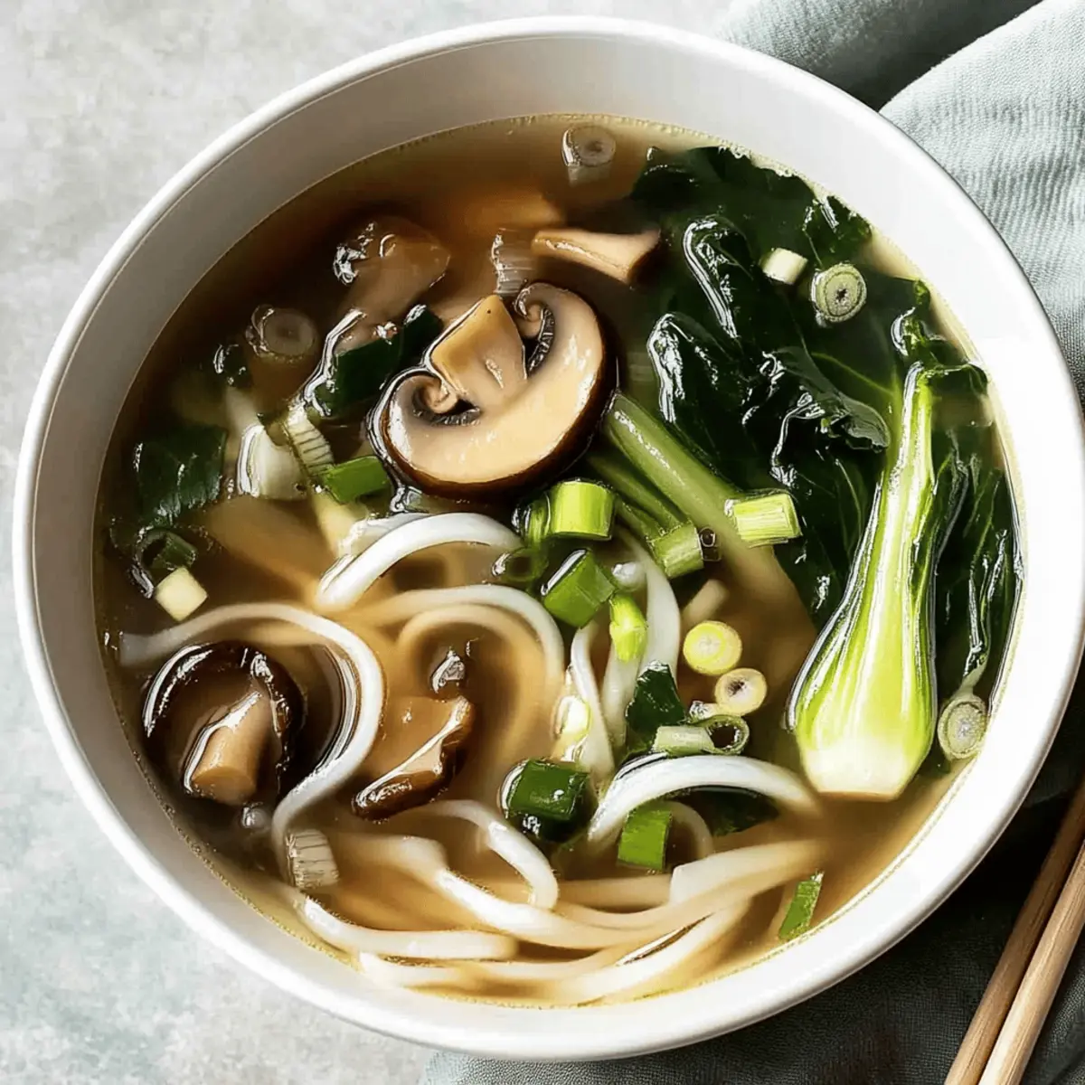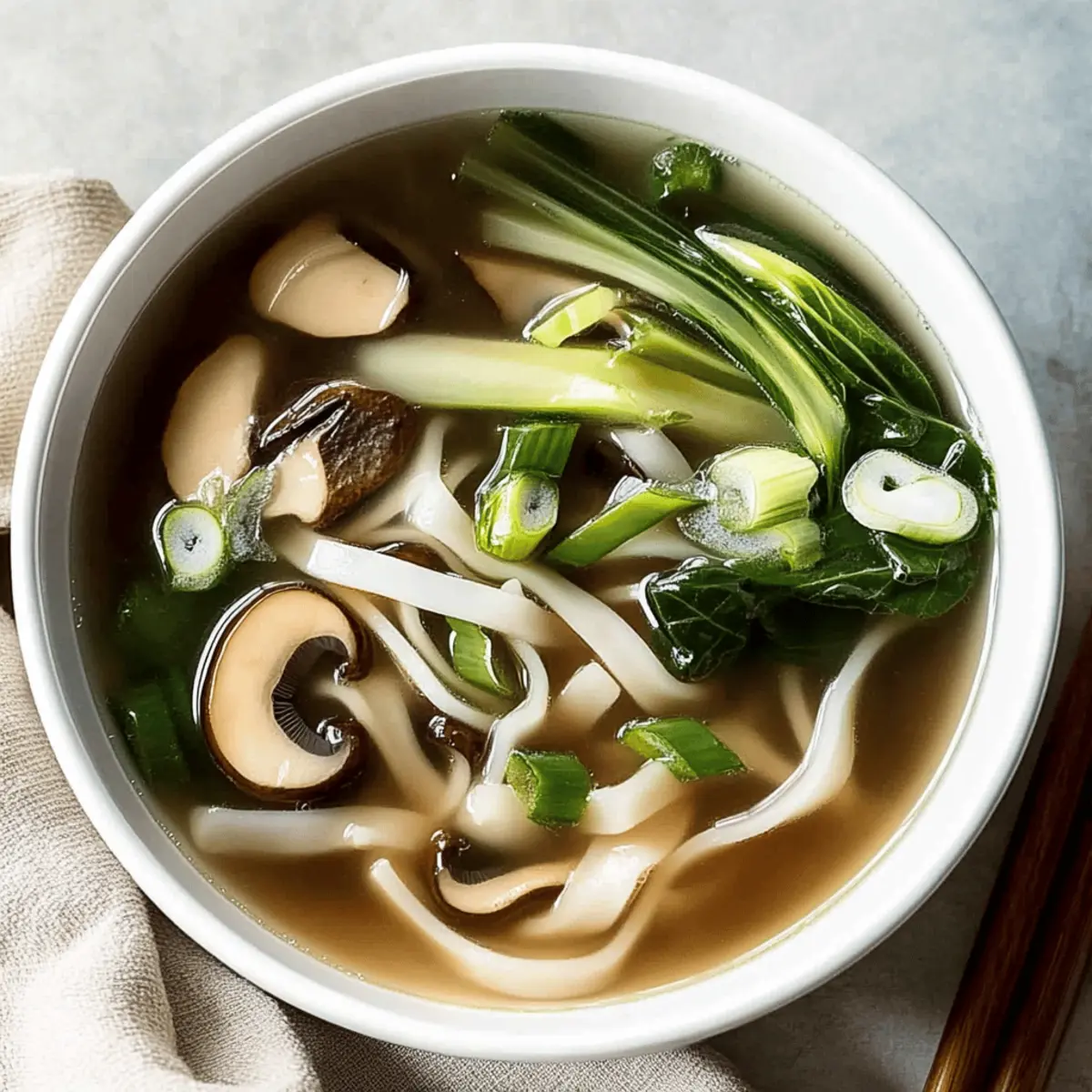 Jump to Recipe Print RecipeAs I settled down one chilly evening, the warm aroma of ginger and garlic beckoned me back to my kitchen, where a pot of Light and Nourishing Bok Choy Soup simmered on the stove. This satisfying bowl of goodness is not just a delightful way to chase away the winter blues; it’s also a quick, customizable meal that embraces health without compromising on flavor. With fresh bok choy, umami-rich shiitake mushrooms, and tender rice noodles, this vegan and gluten-free soup is perfect for those evenings when you crave comfort but want something light. Whether you’re feeling under the weather or just need a gentle pick-me-up, this Bok Choy Soup With Noodles is bound to become a staple in your home. Curious about how to make this nourishing dish your own? Let’s dive in! Why is Bok Choy Soup So Special? Nourishing Comfort: This Bok Choy Soup With Noodles is a warm hug in a bowl, perfect for chilly nights or when you need a little extra comfort. Quick and Easy: With just a few simple ingredients and a short cooking time, you can whip up this delightful soup in no time. Versatile Flavors: Customize your bowl with added proteins like tofu or chickpeas, or boost the flavor with hints of spice—there’s no wrong way to enjoy it! Healthy Goodness: Low in calories but rich in vitamins, this soup is a guilt-free option that still satisfies your cravings, making it an excellent choice for any meal. Crowd-Pleaser: Whether it’s a family dinner or a quick lunch, this dish is sure to impress, offering a vibrant, refreshing twist that everyone will love. Pair it with a side of crusty bread or complement it with a vibrant Salad Grilled Vegetables to elevate your meal. Bok Choy Soup With Noodles Ingredients For the Soup Bok Choy – The star vegetable, providing a mild flavor and satisfying crunch; Napa cabbage can be used as a substitute. Grapeseed Oil – Adds healthy fat for sautéing; vegetable broth is a great alternative for oil-free diets. Shallots – Sweet and mild, they form the aromatic base; yellow onion works if shallots aren’t available. Green Onions – Freshens the flavor; use the white parts in cooking and the green parts as garnish. Shiitake Mushrooms – Contributes depth and umami; white button mushrooms can be swapped in for a lighter taste. Garlic – Enhances the dish with robust flavor; fresh cloves are always best over pre-minced options. Ginger – Offers warmth and spice; fresh ginger yields the best flavor, but ground ginger is a quick substitute. Vegetable Broth & Water – The liquid base that supports the flavors; opting for low-sodium broth keeps it healthier. Soy Sauce/Tamari – Brings saltiness and umami; tamari is perfect for a gluten-free version. Star Anise – Adds a unique hint of licorice; omit if undesired or use a touch of ground turmeric for a different zest. Rice Noodles – Provides substance and texture; feel free to choose any noodle type that you prefer. Optional Toppings Sesame Seeds – Adds a nice crunch and extra flavor; optional, but they elevate a simple bowl to something special. Chilies/Red Pepper Flakes – Spice lovers can add these during cooking for an extra kick; adjust to your heat preference. This Bok Choy Soup With Noodles is not just a meal; it’s an experience waiting to happen! Enjoy putting your signature spin on each bowl. Step‑by‑Step Instructions for Bok Choy Soup With Noodles Step 1: Preheat and Sauté Begin by preheating a large soup pot over medium heat. Once warm, add 1 teaspoon of grapeseed oil and let it heat up for a minute. Add the chopped bok choy and sauté for about 1-2 minutes until it wilts down significantly, taking on a vibrant green hue. Season lightly with salt and pepper before removing it from the pot and setting it aside. Step 2: Aromatic Base In the same pot, pour in another teaspoon of oil, heating it for a minute. Sauté shallots, mushrooms, and half of the green onions for about 5 minutes. Stir frequently, allowing the vegetables to soften and the shallots to become translucent, which intensifies the flavors. You should start to notice a lovely aroma filling your kitchen. Step 3: Spice It Up Once the vegetables are softened, add the minced ginger and garlic into the pot. Cook for an additional minute, stirring continuously until fragrant. The garlic should be lightly golden, releasing its robust aroma. This fragrant mixture will form the aromatic base for your Bok Choy Soup With Noodles. Step 4: Add Liquid Pour in 4 cups of vegetable broth and 2 cups of water, followed by soy sauce and star anise. Increase the heat to high and bring the mixture to a boil. As soon as it bubbles, reduce the heat to a gentle simmer and cover. Let it simmer for about 10 minutes to allow the flavors to meld beautifully. Step 5: Noodle Time After the broth has simmered, add your rice noodles to the pot. Cook according to the package instructions, usually around 4-6 minutes. Stir occasionally to prevent the noodles from sticking together. You’ll know they are ready when they are tender yet retain a slight chew, enhancing the overall texture of your soup. Step 6: Final Touches Just before serving, gently stir the previously sautéed bok choy back into the pot to heat through, cooking for just a minute more. Carefully remove and discard the star anise, giving your soup a final taste check. Adjust seasoning with salt or soy sauce as needed, ensuring every bowl will be delightfully flavorful. Step 7: Serve and Garnish Ladle the steaming Bok Choy Soup With Noodles into bowls, taking care to distribute the noodles and veggies evenly. Garnish with the remaining green onions and an optional sprinkle of sesame seeds for an extra crunch. Serve hot, and enjoy the warmth of this nourishing soup with friends or family! Expert Tips for Bok Choy Soup With Noodles Wash Thoroughly: Always clean your bok choy well to avoid any grit or soil lingering in your soup. It’s essential for a pleasant eating experience. P