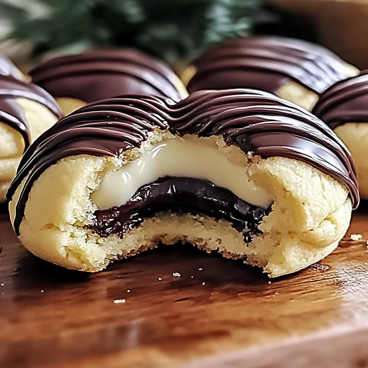 Jump to Recipe Print Recipe“Did you hear the buzz about these cookie bites?” My friend exclaimed, her eyes lighting up with excitement as she shared a new dessert discovery. That moment sparked my own culinary journey to recreate the delightful flavors of a classic Boston cream pie in a fun, bite-sized form: Easy Boston Cream Pie Cookie Bites. These sweet treats are not only quick to whip up but also perfect for customizing to suit your family’s taste – whether it’s a silky custard filling or a luscious chocolate drizzle. Plus, they’re kid-friendly and sure to impress at any gathering. Who wouldn’t want a cookie that tastes just like an iconic dessert? Ready to embark on this delicious adventure? Let’s dive in! Why are these cookie bites irresistible? Delightful Fusion: These Boston Cream Pie Cookie Bites combine the best of two worlds, merging classic flavors into a fun, bite-sized treat. Quick Preparation: You’ll love how easy these cookies are to make, perfect for those busy weekdays or last-minute gatherings. Customizable Fun: Whether you prefer rich chocolate drizzles or a light lemon custard filling, these cookies offer endless possibilities to suit every taste! Kid-Friendly Appeal: They are a hit with kids, making them an ideal solution for satisfying sweet cravings without the fuss of traditional desserts. Perfect for Sharing: Bring these delectable bites to parties, and watch them disappear in no time—they’re sure to be the star of the show! Boston Cream Pie Cookie Bites Ingredients For the Cookies All-Purpose Flour – Provides structure; substitute with whole wheat flour for a denser texture. Baking Powder – Acts as a leavening agent; ensure freshness for best results. Baking Soda – Enhances leavening; used alongside baking powder for optimal rise. Salt – Balances sweetness; use sparingly to enhance flavors. Unsalted Butter – Contributes to a soft cookie texture; use room temperature for easy mixing. Granulated Sugar – Adds sweetness and helps with browning; consider brown sugar for a deeper flavor profile. Egg – Binds ingredients and adds moisture; use large eggs for best results. Vanilla Extract – Infuses flavor; can substitute with almond extract for a different taste. For the Custard Filling Vanilla Custard – Fills the cookies, providing a creamy core; use store-bought or homemade for convenience. For the Topping Semi-Sweet Chocolate Chips – Drizzle over cookies for a glossy finish; dark chocolate can be substituted for a richer taste. Vegetable Oil – Helps to make melted chocolate smooth; coconut oil is a suitable alternative. Discover how this delectable filling and topping turn simple cookies into Boston Cream Pie Cookie Bites that will wow your taste buds! Step‑by‑Step Instructions for Boston Cream Pie Cookie Bites Step 1: Preheat the Oven Start by preheating your oven to 350°F (175°C). While the oven warms up, prepare your baking sheet by lining it with parchment paper, ensuring that the cookies won’t stick. This will create a perfect base for your Easy Boston Cream Pie Cookie Bites, ready for the delightful cookie dough. Step 2: Mix Dry Ingredients In a mixing bowl, whisk together 1 ½ cups of all-purpose flour, 1 teaspoon of baking powder, ½ teaspoon of baking soda, and ¼ teaspoon of salt. Ensure these dry ingredients are well combined to promote even rising and flavor distribution in your cookie dough. Set this mixture aside for the next step in creating your Boston Cream Pie Cookie Bites. Step 3: Cream Butter and Sugar In a separate large mixing bowl, beat together ½ cup of softened unsalted butter and ¾ cup of granulated sugar using an electric mixer. Mix on medium speed for about 2-3 minutes, or until the mixture is light and fluffy. This process incorporates air into the dough, helping to create a soft texture for your delicious cookie bites. Step 4: Incorporate Wet Ingredients Add one large egg and 1 teaspoon of vanilla extract to the butter-sugar mixture. Mix on low speed until everything is seamlessly combined into a smooth batter. This will add moisture and rich flavor to your Boston Cream Pie Cookie Bites, culminating in a delightful cookie experience. Step 5: Combine Mixtures Gradually fold the dry ingredients into the wet mixture using a spatula, being careful not to overmix. Stir just until the flour is incorporated – a few lumps are perfectly fine. This gentle mixing helps maintain the softness of your cookies while integrating the key flavors for your tasty bites. Step 6: Scoop Dough Using a cookie scoop or a spoon, portion out the cookie dough onto your prepared baking sheet. Space each scoop about 2 inches apart to allow for spreading during baking. You should have around 12-15 cookie dough rounds, perfectly sized for your Boston Cream Pie Cookie Bites. Step 7: Bake Cookies Place the baking sheet in the preheated oven and bake the cookies for 10-12 minutes. Keep an eye on them; you want the edges to turn lightly golden while the centers remain soft and chewy. Once baked, remove them from the oven and let them cool on the baking sheet for a few minutes. Step 8: Cool and Create Indentations After a few minutes, transfer the cookies to a wire rack to cool completely. Once cooled, use your thumb or the back of a spoon to gently press an indentation into the center of each cookie. This will create the perfect cavity for the silky custard filling of your Boston Cream Pie Cookie Bites. Step 9: Fill with Custard Using a piping bag or a small spoon, carefully fill each cookie’s indentation with vanilla custard. Don’t be shy; make sure each bite is generously filled with this creamy goodness, adding that classic Boston cream flavor that makes these cookie bites so irresistible. Step 10: Melt and Drizzle Chocolate In a microwave-safe bowl, melt ½ cup of semi-sweet chocolate chips with 1 teaspoon of vegetable oil. Heat in 30-second intervals, stirring until smooth and glossy. Once melted, drizzle the 