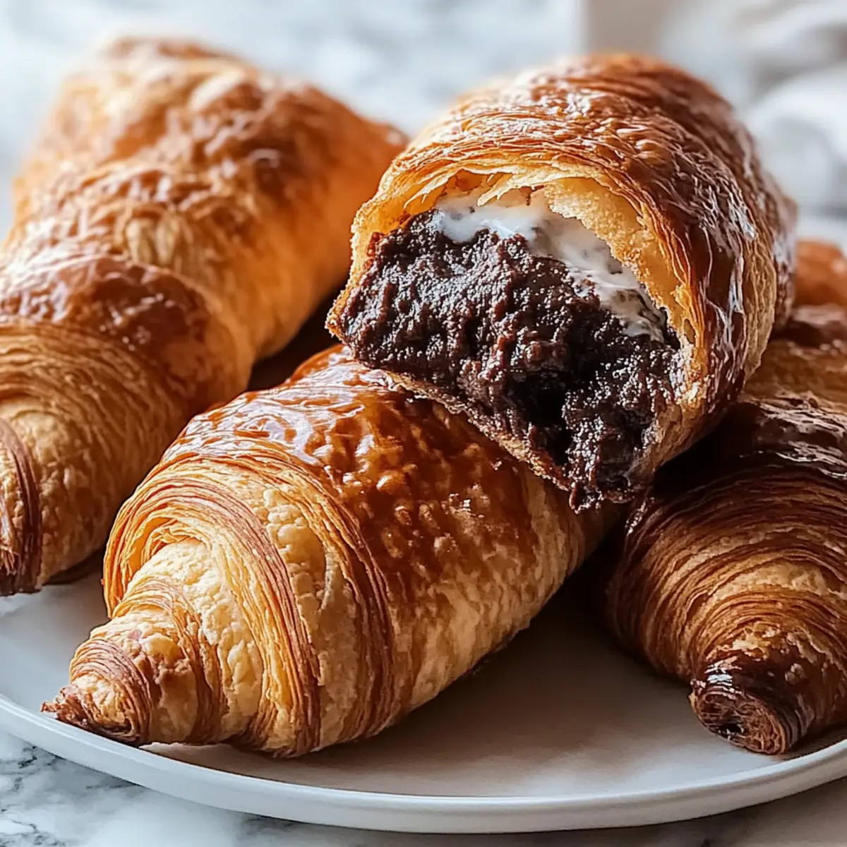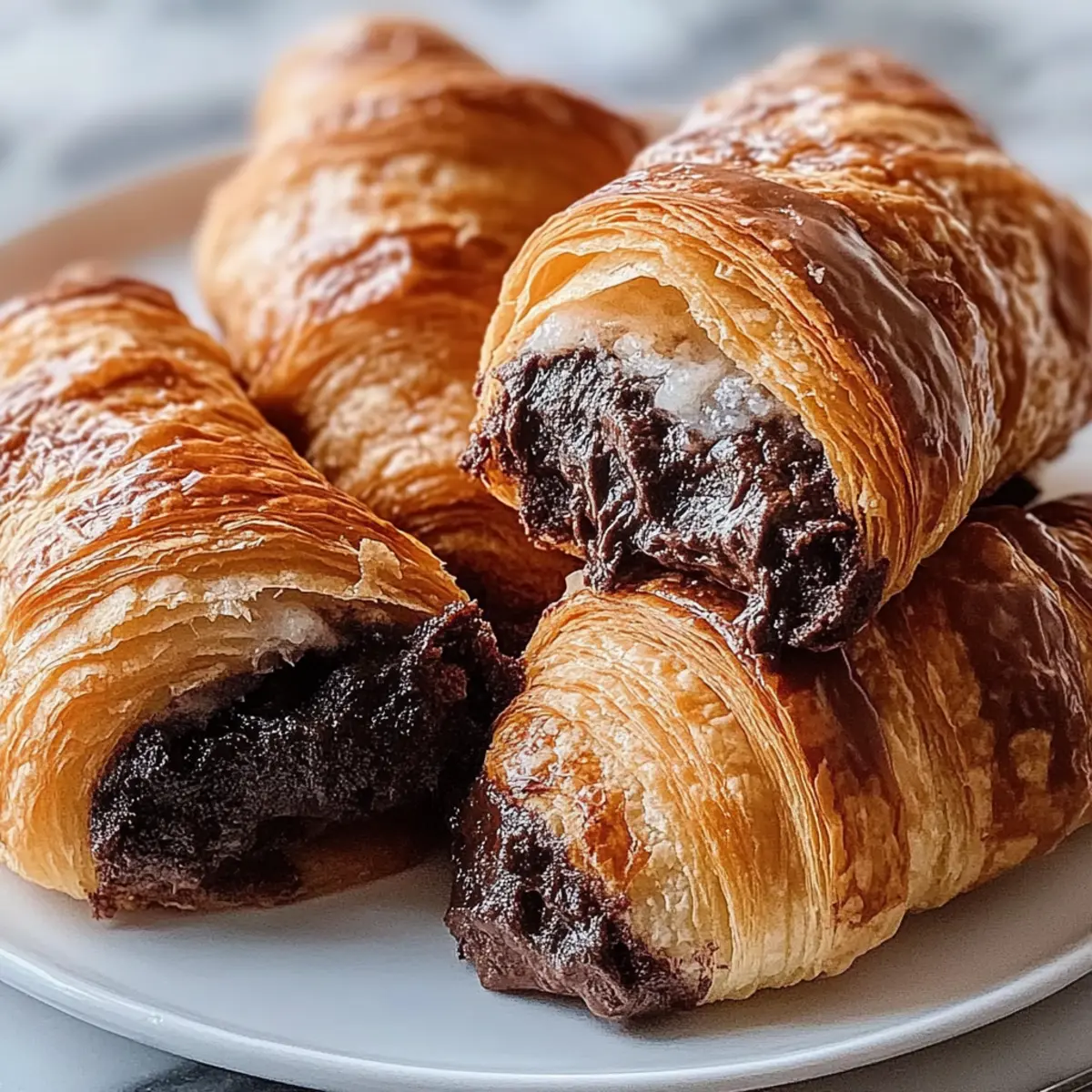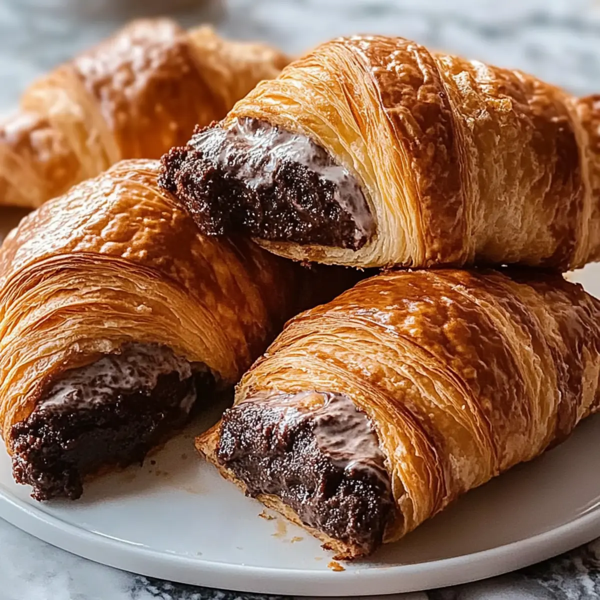 Jump to Recipe Print RecipeThe first bite of a warm croissant can instantly transport you to a bustling Parisian café, but imagine if that flakiness held a secret surprise—rich brownie batter! That’s exactly what you’ll discover with my Brownie Batter Croissants, a captivating fusion of buttery pastry and indulgent chocolate flavor. Perfect for those busy mornings or as an irresistible dessert, this recipe is a breeze to whip up in just 25 minutes. With minimal effort and maximum satisfaction, it’s hard to resist these delightful treats that marry breakfast and dessert in one glorious bite. Ready to take your mornings to the next level with this easy, yet indulgent option? Let’s dive into the delicious details! Why are Brownie Batter Croissants irresistible? Decadence in Every Bite: Experience the perfect blend of flaky croissant and luscious brownie batter, a match made in dessert heaven. Quick and Easy: Just 25 minutes of your time transforms humble ingredients into a gourmet delight. Versatile Treat: Enjoy them for breakfast or dessert, appealing to everyone from busy families to gourmet lovers. Uniquely Delicious: These are not your average pastries; they’re a fun twist on traditional croissants that’ll surprise your taste buds. Perfect for Sharing: Whether for brunch or a sweet finale, these sumptuous bites are sure to impress your guests! Want something equally mouthwatering? Check out my Pistachio Croissants Transform for another indulgent treat. Brownie Batter Croissants Ingredients For the Croissants • Crescent Roll Dough – This provides the flaky outer layer; feel free to substitute with puff pastry for a different experience. • Egg (optional) – Brush on top before baking for a glossy finish; you can skip it for an egg-free version. For the Brownie Batter • Brownie Mix – The star of the show, delivering rich chocolate flavor; consider using a gluten-free mix for a delightful twist. • Vegetable Oil – Key for making your brownie batter smooth; melted coconut oil can offer a unique flavor profile. • Water – Essential to combine with brownie mix; adhere to the package instructions for the perfect consistency. Enjoy whipping up these Brownie Batter Croissants that are guaranteed to bring joy to your breakfast table! Step‑by‑Step Instructions for Brownie Batter Croissants Step 1: Preheat Your Oven Begin by preheating your oven to 350°F (175°C). This crucial step ensures your Brownie Batter Croissants bake evenly and achieve that golden brown perfection. While the oven heats up, you can get everything else ready to make the process even smoother. Step 2: Prepare the Brownie Batter Take out your brownie mix, vegetable oil, and water. In a mixing bowl, combine these ingredients according to the package directions, whisking until the batter is smooth and free of lumps. Set the bowl aside, as this rich, chocolatey batter will soon become the delightful filling for your croissants. Step 3: Unroll the Crescent Roll Dough Carefully unroll the crescent roll dough onto a clean surface. Gently separate it into individual triangles, making sure not to tear the dough. You’ll need each triangle to hold the brownie batter, so handle it with care to maintain that delicate, flaky texture. Step 4: Assemble the Croissants Spoon a generous dollop of the prepared brownie batter at the wider end of each triangle. Be careful not to overfill, as you’ll want to roll them tightly without the batter spilling out. Starting from the wider end, roll each triangle towards the point, creating a tight, crescent shape. Step 5: Prepare for Baking Line a baking sheet with parchment paper, then place the rolled croissants on the sheet, ensuring they have some space between them. This will allow for even baking and help preserve the flaky layers of your Brownie Batter Croissants as they rise in the oven. Step 6: Optional Egg Wash If you choose to add a glossy finish, beat an egg in a small bowl and brush it over the tops of each croissant. This simple step will give your Brownie Batter Croissants a beautiful sheen when baked. If you prefer to skip the egg, they’ll still bake up wonderfully. Step 7: Bake the Croissants Transfer the baking sheet to the preheated oven and bake for 15-20 minutes. Keep an eye on them, as you’ll know they’re ready when they turn a lovely golden brown and emit a sweet, irresistible aroma. Step 8: Cool and Serve Once baked, remove the croissants from the oven and let them cool slightly on the baking sheet. This will help them set and prevent burns. After a few minutes, they are ready to be enjoyed warm, revealing that gooey brownie center that makes these Brownie Batter Croissants so special. Brownie Batter Croissants Variations Feel free to take your Brownie Batter Croissants to delightful new heights with these creative twists that add delicious surprises! Nutty Surprise: Add chopped walnuts or pecans to the brownie batter for an added crunch. It’s a great way to enhance that rich chocolate flavor with a satisfying bite. Chocolate Chunk Delight: Stir in some chocolate chips into your batter—because there’s never too much chocolate! This makes every bite a bit more indulgent and gooey. Flavored Mixes: Experiment with various brownie mix flavors, like peanut butter or raspberry. These alternative mixes can add a unique twist for those who enjoy experimenting. Skip the Dough: For a gluten-free option, use gluten-free crescent dough or a homemade pastry dough. Trust me; the texture will still amaze you! Coconut Bliss: Substitute vegetable oil with melted coconut oil, imparting a wonderful coconut flavor that pairs beautifully with the chocolate. Extra Sweetness: Drizzle melted chocolate or caramel over the finished croissants just before serving for an additional layer of decadence. Perfect for those with a serious sweet tooth! Fruit Infusion: Add diced strawberries or raspberries to your brownie batter for a pop of fruity flavor. This twist