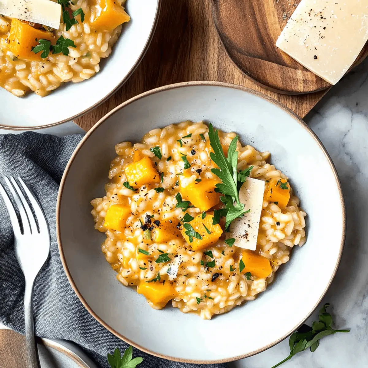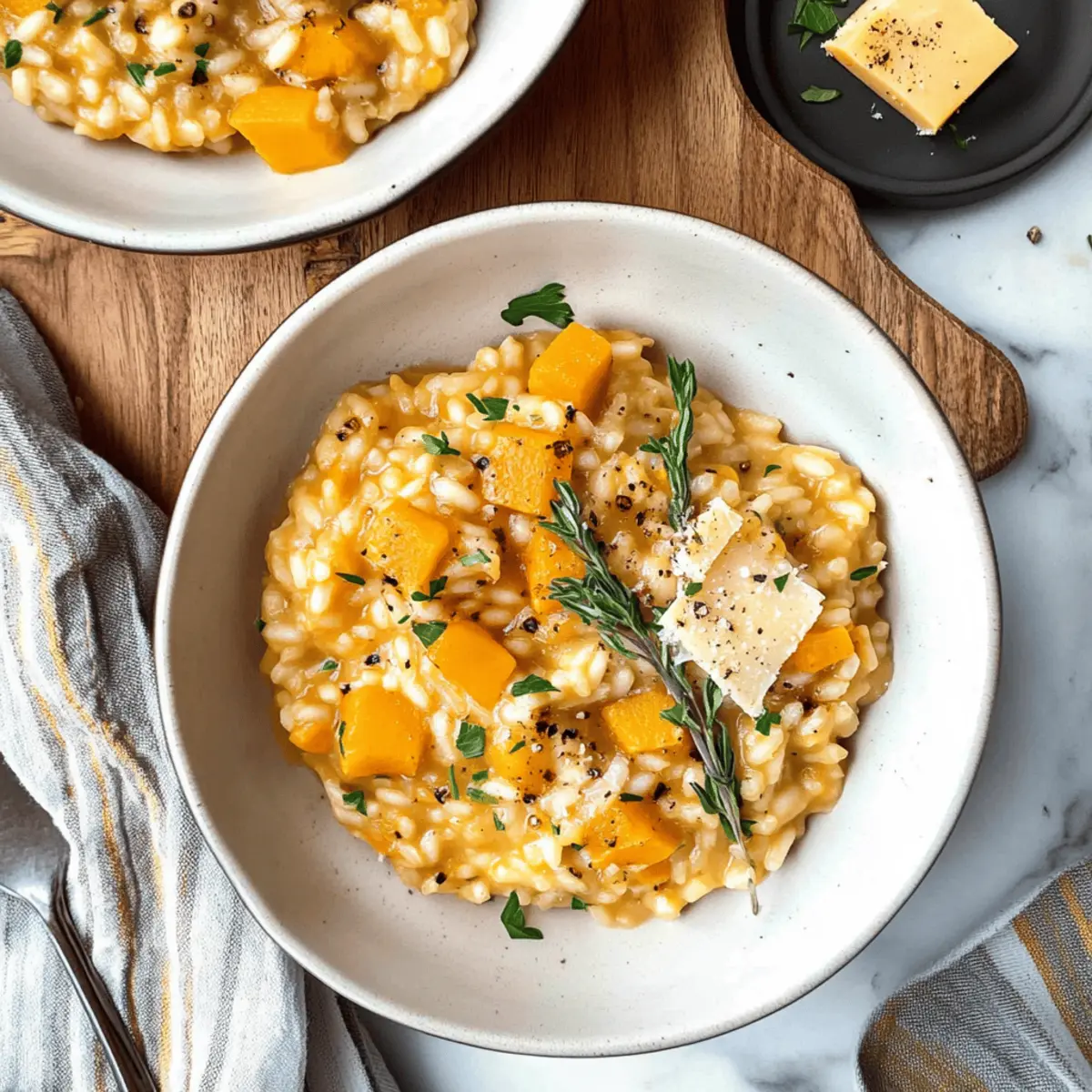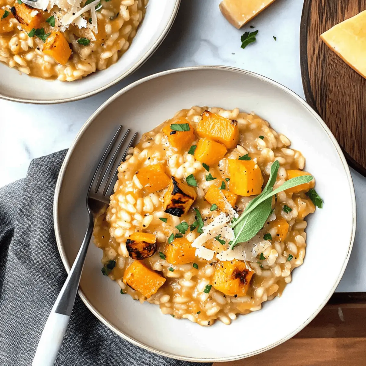 Jump to Recipe Print RecipeAs the cool breeze of autumn sweeps through the air, my kitchen fills with the warming aroma of something special simmering on the stove—Creamy Butternut Squash Risotto. With just 10 simple ingredients, this dish is a delightful embrace of comforting flavors that feels like home. The buttery richness of butternut squash combines beautifully with the creamy Arborio rice, creating a sumptuous comfort food that’s perfect for cozy nights. Not only is it a breeze to whip up, but it’s also an impressive centerpiece for gatherings or intimate dinners. Have you ever experienced the joy of transforming humble ingredients into a meal that feels fancy yet utterly satisfying? Come join me in crafting this autumn favorite that will surely become a staple in your kitchen. Why Is This Risotto So Special? Comforting, Creamy Delight: This Butternut Squash Risotto delivers the ultimate comfort food experience, with a rich, velvety texture that warms the heart. Easy to Make: With just 10 simple ingredients and straightforward instructions, this dish is perfect for both novice cooks and seasoned chefs looking to impress. Fall Flavors: As autumn settles in, the sweet notes of butternut squash paired with fresh herbs create a seasonal favorite that captures the essence of cozy nights. Versatile Ingredient Swaps: Feel free to customize this dish by adding spinach for extra nutrients or experimenting with different winter squashes to suit your taste. Perfect for Gatherings: Whether it’s a date night or a festive holiday dinner, this risotto is sure to impress your guests and leave them craving more. Serve alongside a fresh salad or homemade focaccia for an unbeatable meal! Aim to savor that moment when everyone gathers around the table enjoying your creation. Your loved ones will be asking for seconds of this heartwarming dish! Butternut Squash Risotto Ingredients For the Risotto Base • Extra-virgin olive oil – Adds richness and helps sauté the vegetables to perfection. • Medium yellow onion – Provides a sweet, aromatic foundation that enhances the dish’s overall flavor. • Sea salt – Essential for flavor enhancement; adjust based on personal preference. • Freshly ground black pepper – Adds a subtle warmth and depth to your butternut squash risotto. For the Main Ingredients • Cubed butternut squash – The star of the dish, offering a sweet taste and creamy texture when cooked; frozen squash works well too! • Garlic cloves – Finely minced for maximum flavor distribution throughout your risotto. • Minced rosemary or sage – Earthy herbs that elevate the dish; feel free to swap based on availability or preference. • Uncooked Arborio rice – The key ingredient for achieving that signature creamy risotto texture; avoid substitutes! • Dry white wine – Adds a vibrant acidity; broth can be used for a non-alcoholic option. • Warmed vegetable broth – Crucial for gradually cooking the rice and ensuring creaminess; adjust for desired consistency. Garnish Options • Chopped parsley or small sage leaves – Adds a fresh pop of color; optional, but highly recommended for presentation. • Grated pecorino or Parmesan cheese – Boosts umami and richness; omit for a vegan-friendly dish. Ready to dive into this cozy recipe? Let’s make some magic in the kitchen with this delightful butternut squash risotto! Step‑by‑Step Instructions for Butternut Squash Risotto Step 1: Sauté the Veggies In a large skillet, heat 2 tablespoons of extra-virgin olive oil over medium heat. Once shimmering, add a chopped medium yellow onion along with a pinch of sea salt and freshly ground black pepper. Sauté for about 2-3 minutes until the onion becomes translucent and fragrant. Then, stir in 2 cups of cubed butternut squash and cook for an additional 6-8 minutes, until the squash starts to soften and caramelize slightly. Step 2: Toast the Rice Add 3 minced garlic cloves and 1 tablespoon of finely minced rosemary or sage to the skillet. Stir these ingredients for about 1 minute, allowing the garlic to become aromatic without burning. Next, pour in 1 cup of uncooked Arborio rice, stirring well for another 1-3 minutes until the rice lightly toasts and becomes slightly translucent. This step will set the foundation for your creamy Butternut Squash Risotto. Step 3: Add Wine Slowly introduce ½ cup of dry white wine into the skillet, scraping the bottom to release any flavorful bits. Stir constantly until the wine has completely absorbed into the rice; this should take about 1-3 minutes. The wine will add a wonderful depth to your risotto, enhancing the overall flavor profile. Step 4: Add Broth Gradually With everything nicely simmering, begin adding 3 cups of warmed vegetable broth, starting with about ¾ cup at a time. Stir continuously, waiting for the liquid to be absorbed before adding the next batch. Repeat this process for approximately 18-20 minutes, adjusting the heat to maintain a gentle simmer. By the end, the rice should be creamy and the butternut squash tender, creating a delightful texture. Step 5: Season and Serve Once the risotto reaches your desired creaminess, taste it and adjust the seasoning with more salt and pepper if needed. If you like, stir in some grated pecorino or Parmesan cheese for added richness. Serve hot, garnished with chopped parsley or small sage leaves to brighten up the presentation. Your Butternut Squash Risotto is now a comforting masterpiece ready to be enjoyed! Make Ahead Options Preparing your Butternut Squash Risotto ahead of time is a fantastic way to ease your cooking routine for those busy evenings! You can sauté the onions, garlic, and butternut squash, then store this flavorful base in the refrigerator for up to 3 days. To maintain its quality, be sure to cool it completely before refrigerating in an airtight container. When you’re ready to enjoy your risotto, simply reheat the base in a saucepan, add the Arborio rice and 