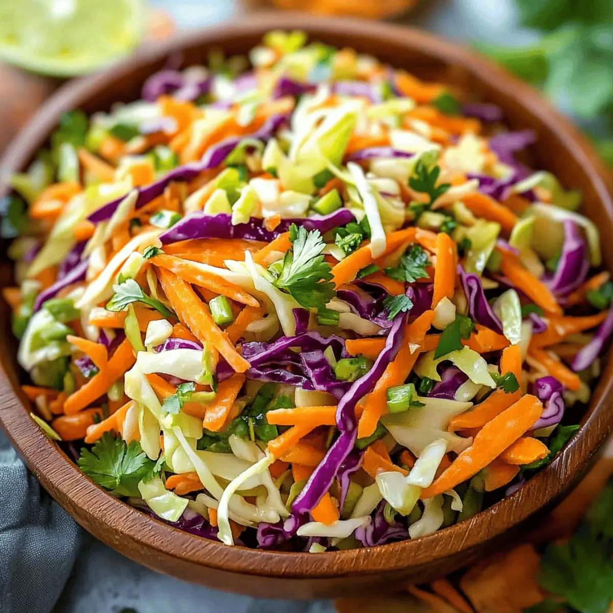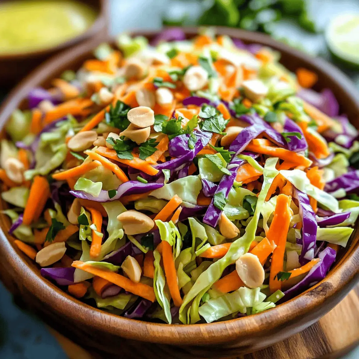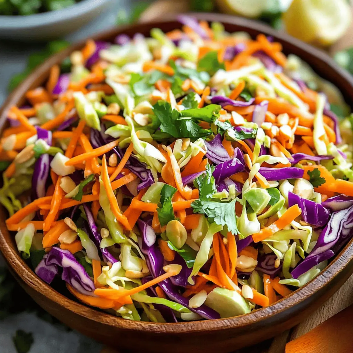 Jump to Recipe Print RecipeAs I lifted the lid of my fridge, I was greeted by the crisp crunch of fresh cabbage—a pantry staple just waiting to be transformed. That’s how my Easy Crunchy Cabbage Salad with Dijon-Lime Dressing was born; it’s not just a side, but a vibrant centerpiece that’s as healthy as it is delicious. With a zesty dressing that blends tangy Dijon and fresh lime, this salad is all about quick prep and nutritional benefits—ready in just 15 minutes! Whether you’re serving it alongside grilled meats or enjoying it as a light lunch, it’s a fantastic way to elevate ordinary meals into extraordinary ones. Curious about how to whip up this refreshing dish and make it your own? Let’s dive in! Why is This Cabbage Salad a Must-Try? Simplicity: This salad comes together in just 15 minutes, requiring minimal prep. Healthy Twist: Packed with fiber and nutrients, it’s a guilt-free indulgence. Versatility: Customize it by adding proteins like grilled chicken or chickpeas, or swapping in different veggies—think cucumbers or sweet bell peppers! Flavor Explosion: The zesty Dijon-lime dressing elevates every bite, making it a standout dish. Crowd-Pleaser: Whether it’s a picnic or a dinner party, this salad charms everyone at the table! Pair it with options like Chickpea Salad Grilled for a delightful spread. Cabbage Salad with Dijon-Lime Dressing Ingredients For the Salad • Cabbage – Provides crunch and is rich in fiber and antioxidants; use green or red cabbage based on your taste preference. • Carrots – Adds sweetness and color; feel free to substitute with bell peppers or radishes for a different crunch. • Fresh herbs (e.g., parsley or cilantro) – Contributes freshness and aroma; swap in basil for a unique twist if desired. For the Dressing • Dijon mustard – Elevates flavor and provides tanginess; yellow mustard is a milder substitution if needed. • Lime juice – Offers acidity and brightness that lifts the salad; lemon juice works well in a pinch. • Olive oil – Binds the dressing and enhances flavor; consider avocado oil for a distinct taste. • Salt – Enhances all flavors beautifully; adjust according to your personal taste preferences. This Cabbage Salad with Dijon-Lime Dressing is bound to become a favorite, whether served at a summer barbecue or as a quick weekday lunch! Step‑by‑Step Instructions for Cabbage Salad with Dijon-Lime Dressing Step 1: Prepare the Vegetables Begin by washing and drying half a head of cabbage. Thinly slice the cabbage into ribbons, ensuring a crisp, crunchy texture. Peel and shred two carrots for added sweetness and color. Finally, chop a handful of fresh parsley or cilantro, releasing their aromatic oils. Set your vegetables aside in a large mixing bowl, ready for the dressing. Step 2: Make the Dressing In a small bowl, whisk together three tablespoons of Dijon mustard and the juice of one lime until well combined. Gradually drizzle in four tablespoons of olive oil while whisking continuously to emulsify the dressing, creating a creamy texture. Add a pinch of salt to taste, ensuring a balanced flavor that will enhance your Cabbage Salad with Dijon-Lime Dressing. Step 3: Combine the Salad Pour the zesty dressing over your prepared vegetables in the mixing bowl. Using tongs or salad servers, gently toss the cabbage, carrots, and herbs until they are evenly coated in the dressing. Ensure every bite is infused with that delightful Dijon-lime flavor, resulting in a vibrant and refreshing salad that’s ready to shine at your table. Step 4: Serve or Chill For immediate enjoyment, serve the salad right away for maximum crunch. Alternatively, cover it with plastic wrap and place it in the refrigerator for about 10-15 minutes to allow the flavors to meld together. This chilling time enhances the taste, making your Cabbage Salad with Dijon-Lime Dressing even more delicious when served cold. What to Serve with Easy Crunchy Cabbage Salad with Dijon-Lime Dressing Elevate your meal with these delightful pairings that beautifully complement the bright flavors of this refreshing salad. Grilled Chicken: The smoky flavor enhances the salad’s zesty dressing, making for a satisfying dish full of protein. Quinoa Bowl: This nutty, fluffy grain adds a hearty texture that balances the crispness of the cabbage salad. Roasted Sweet Potatoes: Their caramelized sweetness contrasts wonderfully with the tangy dressing, creating a delicious flavor harmony. Fresh Fruits: Chopped apples or juicy mango bring a burst of natural sweetness, mingling excellently with the salad’s crunch. Pair your salad with a simple Lemonade Spritzer, refreshing and light, it adds a vibrant finishing touch to your meal. Crusty Bread: Freshly baked bread provides a comforting contrast, perfect for scooping up both salad and dressing. Herbed Couscous: Fluffy couscous with fresh herbs adds a delightful chew while complementing the greens’ freshness. Greek Yogurt Dip: The creaminess of the dip balances the salad’s crunch, offering an extra layer of flavor to each bite. Enjoy experimenting with these pairings, crafting a beautiful dining experience around your Easy Crunchy Cabbage Salad with Dijon-Lime Dressing! Expert Tips for Cabbage Salad Fresh Ingredients: Always choose fresh, firm cabbage for the best texture and taste. Wilted greens can lead to a sad salad experience. Salting Techniques: If using chopped cabbage, sprinkle with salt and let it rest for 5-10 minutes. This draws out excess moisture, enhancing the crunch in your Cabbage Salad with Dijon-Lime Dressing. Dressing Consistency: For a creamier dressing, add more olive oil. However, balance it carefully so it doesn’t overpower the unique flavors of Dijon and lime. Customize Wisely: Don’t hesitate to introduce new vegetables or proteins. Just remember to maintain balance in textures and flavors to keep your salad fresh and exciting. Storage Solutions: To keep leftovers crisp, store the dr