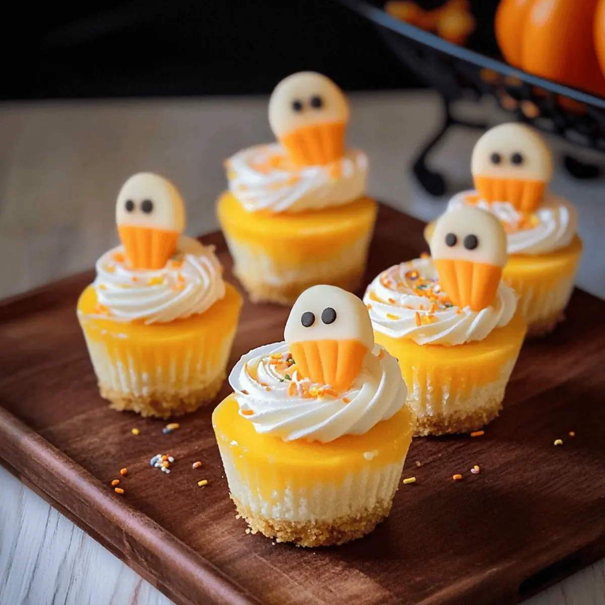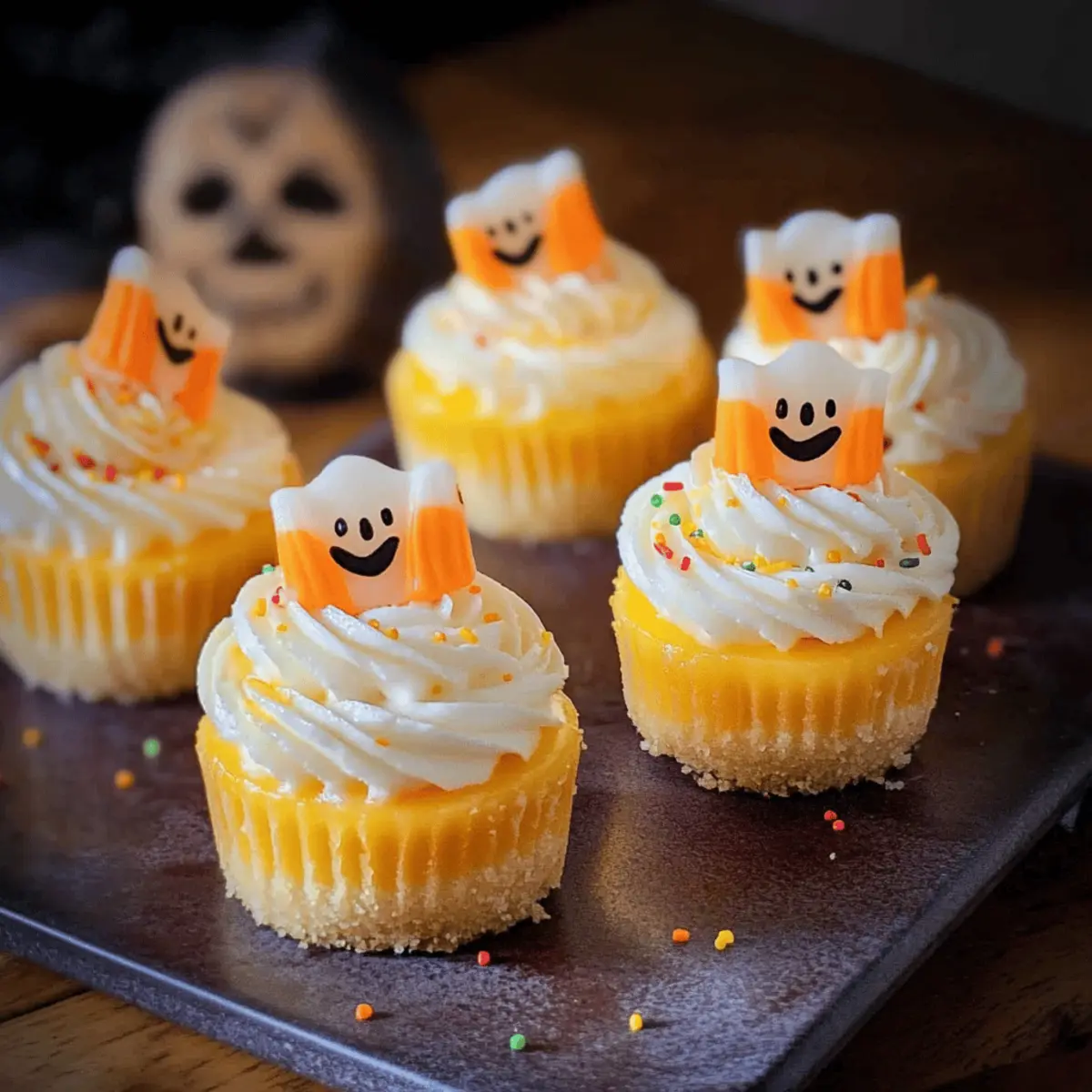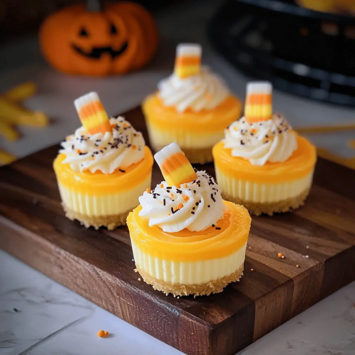Jump to Recipe Print RecipeAs I rummaged through my pantry for Halloween treats, a splash of color caught my eye—vibrant candy corn! This little gem of nostalgia inspired me to whip up something special: Candy Corn Mini Cheesecakes. With their graham cracker crust and creamy filling layered in festive orange and yellow, these mini delights are not just a feast for the eyes, but they also offer a quick and easy solution for your Halloween gatherings. The best part? You can prep them ahead of time, allowing you to enjoy the spooky festivities without a hitch. So, are you ready to impress your friends and family with these irresistibly adorable cheesecakes that scream holiday spirit? Let’s dive into this colorful recipe! Why Will You Love These Cheesecakes? Elevated Festivity: These Candy Corn Mini Cheesecakes bring the Halloween spirit right to your dessert table with their vibrant color layers and playful decoration. Effortless Preparation: The recipe is simple and doesn’t require advanced baking skills; it’s perfect for both beginners and seasoned chefs alike. Perfect Portioning: Mini cheesecakes are ideal for parties, making it easy for guests to indulge without overindulging—everyone can enjoy their own little slice of joy! Make-Ahead Magic: With the ability to chill overnight, these treats save you time on party day, allowing you to enjoy more festive activities. You might also enjoy making Chicken Chili Corn as a savory accompaniment! Versatile Flavor: While maintaining a classic cheesecake taste, you can easily switch up the colors and designs to fit any occasion beyond Halloween—consider pumpkin sprinkles for a fall gathering! Crowd-Pleasing Delight: Their rich, creamy texture combined with a buttery crust will have everyone coming back for seconds, ensuring your Halloween party is a delicious hit! Candy Corn Mini Cheesecakes Ingredients For the Crust • Graham Cracker crumbs – The perfect base for a sweet and buttery crust; feel free to try chocolate cookie crumbs for variety. • Granulated sugar – Adds sweetness to the crust and filling; consider reducing for a less sugary treat. • Unsalted butter – Binds everything together while adding richness; use melted for easier mixing. For the Cheesecake Filling • Cream cheese – The star ingredient, providing that luscious creamy texture; ensure it’s softened for the best mix. • Large eggs – Provides structure and creaminess; let them come to room temperature for optimal incorporation. • Vanilla extract – Enhances the flavor beautifully; you can swap it for almond extract for a unique twist. • Sour cream – Contributes to the creaminess with a slight tang; Greek yogurt works as a great substitute. • Orange and yellow food coloring – Essential for achieving that festive candy corn appearance in the cheesecake layers. For the Frosting • Powdered sugar – Ensures sweetness and smoothness in your frosting; remember to sift to avoid lumps. • Heavy cream – Adds fluffiness to your buttercream; for a lighter version, you can use milk instead. Decorative Touches • White sprinkles – An optional garnish to enhance visual appeal and add that festive touch. • White fondant or sugar paste – Great for crafting playful ghost shapes, though it’s completely optional. • Black edible marker or food coloring – For decorating your ghost shapes; use this if you want to up the spooky factor! These Candy Corn Mini Cheesecakes are sure to brighten up your Halloween festivities with their delightful flavors and colorful appearance! Step‑by‑Step Instructions for Candy Corn Mini Cheesecakes Step 1: Preheat the Oven Begin by preheating your oven to 325°F (165°C). While it heats, line a muffin tin with colorful cupcake liners, setting the stage for your beautiful Candy Corn Mini Cheesecakes. This will make for easy removal later, ensuring a delightful presentation fit for Halloween festivities. Step 2: Prepare the Crust In a medium mixing bowl, combine the graham cracker crumbs, granulated sugar, and melted unsalted butter. Use a fork to mix until the mixture resembles wet sand. Firmly press this crumb mixture into the bottom of each cupcake liner, creating a sturdy base. Bake in the preheated oven for 5 minutes, then allow them to cool while you prepare the cheesecake filling. Step 3: Make the Cheesecake Batter Using a hand mixer or stand mixer, beat the softened cream cheese until it’s smooth and creamy. Gradually mix in the granulated sugar until fluffy. Next, add in the large eggs, one at a time, mixing on low speed just until combined. Finally, blend in the vanilla extract and sour cream until the mixture is well incorporated and silky smooth. Step 4: Color the Batter Divide the cheesecake batter evenly into three bowls. Tint one bowl with yellow food coloring, another with orange, and leave the third plain for a vibrant tri-color effect. Stir each bowl gently until the colors are bright and uniform, creating the cheerful layers that characterize your Candy Corn Mini Cheesecakes. Step 5: Layer the Batter Spoon the colored mixtures into each pre-baked graham cracker crust, starting with the yellow batter, followed by the orange, and finishing with the plain cheesecake mix. Use a small spatula or spoon to gently smooth each layer. Be mindful of spreading to maintain distinct layers, ensuring that each cheesecake resembles a piece of candy corn. Step 6: Bake the Cheesecakes Place the filled muffin tin back into the oven and bake for 18-20 minutes. The centers should be set but will have a slight jiggle when done. Keep an eye on them to prevent overbaking which can lead to cracks. Once finished, remove from the oven and cool at room temperature for about 30 minutes before transferring to the fridge. Step 7: Chill the Cheesecakes Once cooled, refrigerate the mini cheesecakes for at least 4 hours or preferably overnight. This chilling time allows the flavors to meld and the texture to firm up beauti