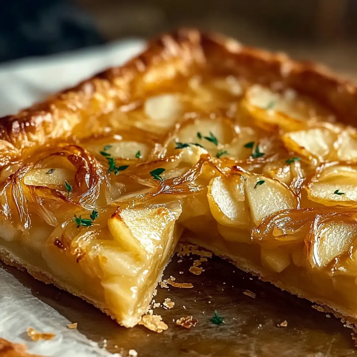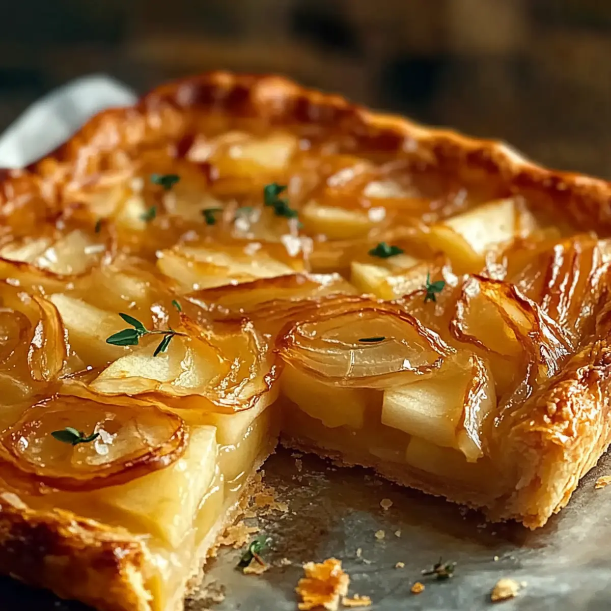 Jump to Recipe Print RecipeA waft of warm, caramelized onions hits me every time I step into the kitchen, instantly transporting me to a quaint French bistro. If you’re in the mood for a dish that beautifully merges rustic comfort with an air of sophistication, look no further than my Caramelized Onion, Apple & Cheddar Tart. This delightful creation brings together deeply caramelized onions, sweet-tart apple slices, and rich sharp cheddar cheese nestled atop a flaky puff pastry, making it a versatile choice for brunch or an elegant dinner party. Not only is this tart a showstopper, but it’s also a breeze to prepare—perfect for those busy weeks when you want to impress without the stress. Join me in crafting this vegetarian masterpiece that’s sure to captivate your taste buds. Curious how to bring this delicious medley to life? Let’s dive in! Why is this tart so irresistible? Simplicity at Its Best: The recipe requires just a handful of ingredients, making it a straightforward choice for both novice cooks and seasoned chefs alike. Unforgettable Flavors: Expect deeply caramelized onions paired with sweet-tart apples and sharp cheddar—each bite bursts with a delightful array of tastes. Versatility Galore: Enjoy it as a classy appetizer or a main dish; it fits perfectly into any gathering. Pair it with a light salad or soup for a complete meal. Quick to Impress: Ready in about 45 minutes, this tart is your go-to for last-minute dinner parties or cozy brunches. Vegetarian Delight: This dish makes everyone feel welcomed at the table, proving that meatless meals can be just as comforting and indulgent. For other vegetarian options, check out our vegetarian recipes. Dive into this culinary experience—you won’t regret it! Caramelized Onion, Apple & Cheddar Tart Ingredients • To create this irresistible Caramelized Onion, Apple & Cheddar Tart, gather the following ingredients for a delightful culinary experience. For the Crust Puff Pastry – Provides a flaky, crispy base; thawed store-bought pastry is convenient, but homemade is a lovely touch. For the Filling Unsalted Butter – Adds richness and helps caramelize the onions to perfection. Onions – The tart’s heart; yellow onions are ideal due to their balanced sweetness. Sugar – Enhances caramelization, transforming onions into sweet, jammy goodness. Salt – Essential for elevating all the delicious flavors. Apples (e.g., Honeycrisp or Granny Smith) – Offers a sweet-tart contrast; choose firm varieties that hold shape when baked. Sharp Cheddar Cheese – Melts beautifully while offering a tangy flavor that complements the sweetness of the onions and apples. Substitute with Gruyère or brie for variety. Fresh Thyme – Imparts an earthy, aromatic touch; rosemary can be swapped for a different herbal note. Egg – Used in an egg wash for a glossy, golden-brown finish. Honey – An optional drizzle to enhance sweetness and shine, adding a layer of flavor complexity. Embrace the warmth of this delightful tart, and let its inviting aroma fill your kitchen as you prepare for a memorable meal! Step‑by‑Step Instructions for Caramelized Onion, Apple & Cheddar Tart Step 1: Preheat the Oven Begin by preheating your oven to 400°F (200°C) while you prepare your baking sheet. Line a large baking sheet with parchment paper to prevent the tart from sticking and ensure easy cleanup. This initial step sets the stage for your delicious Caramelized Onion, Apple & Cheddar Tart, ensuring the pastry will rise beautifully and cook evenly. Step 2: Prepare the Puff Pastry Unfold the thawed puff pastry onto the lined baking sheet, making sure it’s flat and smooth. Using a sharp knife, lightly score a one-inch border around the edges, being careful not to cut all the way through. This scoring will help create a raised edge while the pastry bakes, perfectly encasing the flavorful filling of your tart. Step 3: Caramelize the Onions In a skillet over medium heat, melt 2 tablespoons of unsalted butter. Once melted, add 2 finely sliced yellow onions along with 1 tablespoon of sugar and a pinch of salt. Stir the mixture regularly for about 20 to 25 minutes, until the onions become soft, golden brown, and jammy. This step infuses the tart with sweet, deep flavors, a hallmark of the Caramelized Onion, Apple & Cheddar Tart. Step 4: Assemble the Tart Once the onions are caramelized, it’s time to assemble your tart! Spread the warm onion mixture evenly within the scored border of the pastry. Layer thin slices of your chosen apples (like Honeycrisp or Granny Smith) on top of the onions, adding a sweet and tangy contrast. Finally, sprinkle a generous handful of shredded sharp cheddar cheese and a few fresh thyme leaves across the tart for added flavor. Step 5: Finish with Egg Wash In a small bowl, beat one egg to create an egg wash. Using a pastry brush, gently brush the edges of the puff pastry with the egg wash to give them a shiny, golden finish. Optionally, you can drizzle a little honey over the assembled tart for an extra touch of sweetness, enhancing the flavors of the Caramelized Onion, Apple & Cheddar Tart. Step 6: Bake the Tart Carefully place the assembled tart into the preheated oven and bake for 20 to 25 minutes. Keep an eye on it, removing it when the pastry is puffed and golden brown, and the cheese is bubbling. This is when your kitchen will fill with mouthwatering scents, signaling a delicious creation coming together! Step 7: Cool and Serve Once baked to perfection, take the tart out of the oven and let it cool for a few minutes on the baking sheet. This cooling period allows the flavors to settle and the cheese to firm up slightly. After cooling, slice your Caramelized Onion, Apple & Cheddar Tart into squares or wedges and serve warm—it’s sure to be a hit! Storage Tips for Caramelized Onion, Apple & Cheddar Tart Room Temperature: Enjoy freshly baked tart within 2 hours to savor the best flavors; otherwise, store in a cool, dry