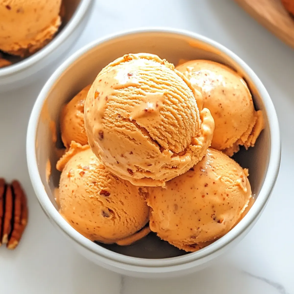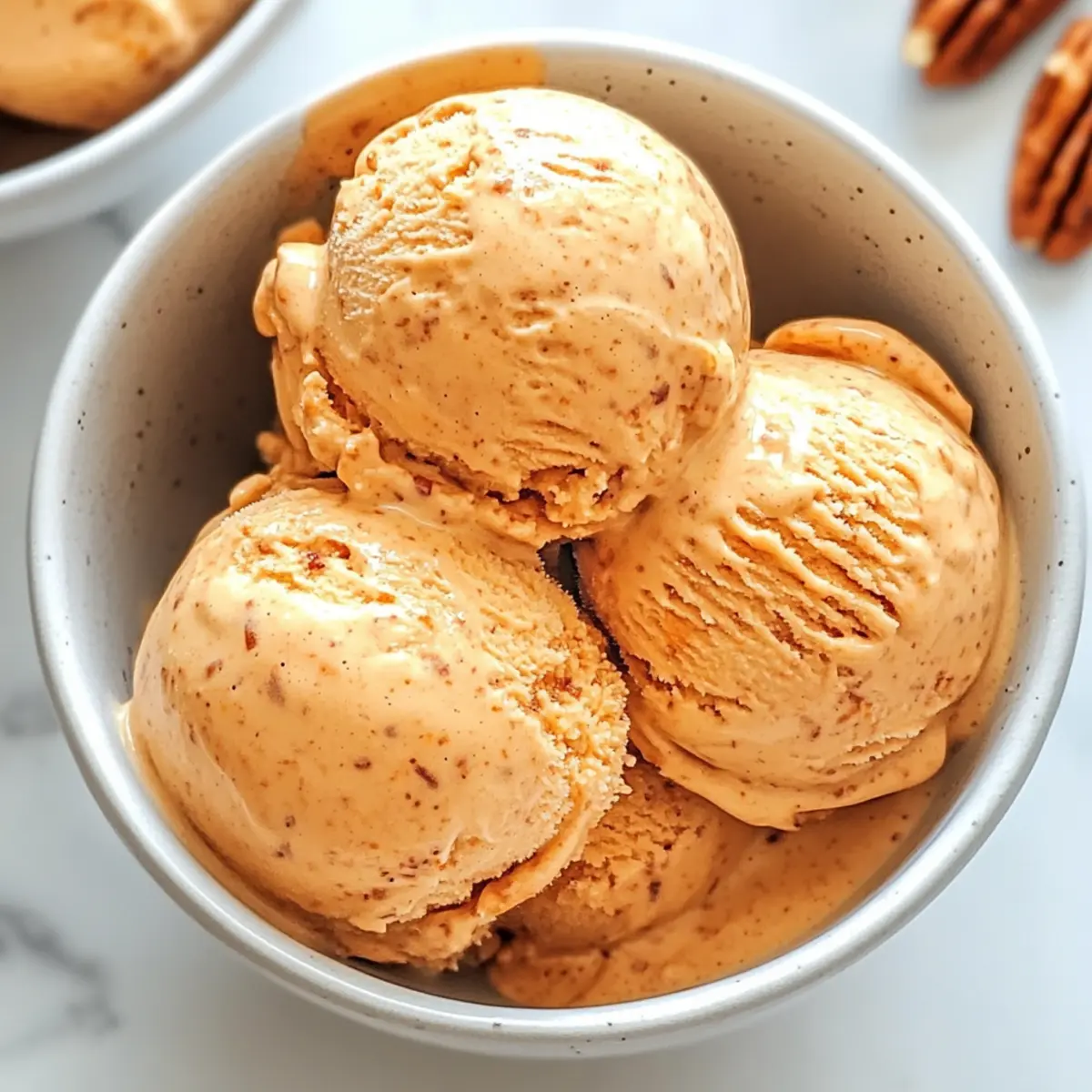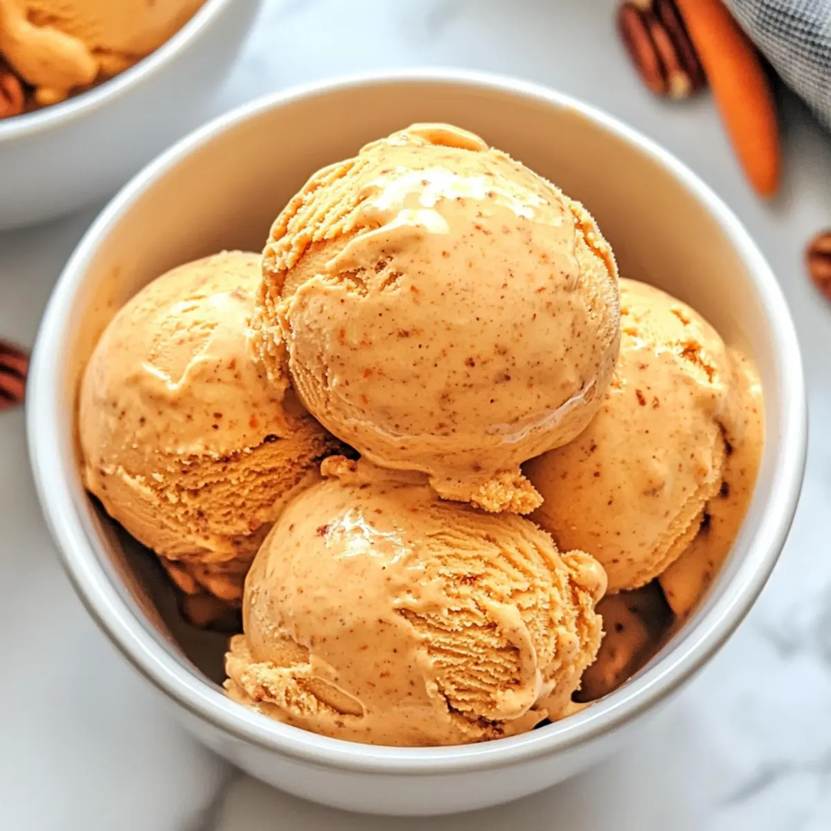 Jump to Recipe Print RecipeAs I opened my freezer one warm afternoon, the sight of my homemade Carrot Cake Ice Cream brought a wave of nostalgia, whisking me back to my grandmother’s kitchen. This recipe is a dreamy twist on traditional carrot cake, transforming the beloved warm spices, real carrots, and creamy goodness into a frozen delight that’s perfect even during the hottest months. What I adore about Carrot Cake Ice Cream is its versatility—it’s not only a unique take on a classic dessert but also a crowd-pleaser for gatherings or a sweet escape on a quiet night in. Plus, with easy substitutions, you can whip up a dairy-free version without sacrificing that delectable flavor. Are you ready to scoop into some delicious memories with me? Why Is Carrot Cake Ice Cream Amazing? Creamy Delight: This Carrot Cake Ice Cream delivers an explosion of flavors in every scoop, blending the familiar warmth of cinnamon and nutmeg with the sweetness of real carrots. Simple Process: With a straightforward recipe, you’ll master this homemade treat even if you’re new to ice cream making. Versatile Indulgence: Whether you’re craving a refreshing dessert after a meal or want to impress guests at a gathering, this treat fits the bill perfectly—just like a slice of classic <a href="https://recipeess.com/blueberry-cream-cake/">Blueberry Cream Cake</a> but cooler! Dairy-Free Option: Easily swap heavy cream for coconut cream, making it suitable for dairy-free diets without compromising that creamy texture. Nostalgic Flavor: Each bite takes you back to the comforting joys of your favorite carrot cake, but in a playful frozen form that’s ideal for any season! Carrot Cake Ice Cream Ingredients For the Ice Cream Base • Heavy Cream – Provides a rich base and creaminess; substitute with coconut cream for a dairy-free version. • Whole Milk – Adds liquid and creaminess; can be replaced with non-dairy milk, though it may affect texture. • Brown Sugar – Offers deep sweetness with a hint of molasses; white sugar can be used in a pinch. • Ground Cinnamon – Adds warmth and spice; feel free to increase the amount for heightened flavor. • Ground Ginger – Enhances the spiced flavor profile; fresh ginger can also be used, finely grated. • Ground Nutmeg – Complements the spices with a warm, aromatic quality; use fresh nutmeg for the best flavor. • Salt – Balances sweetness and enhances flavors. • Vanilla Extract – Provides depth of flavor; substitute with maple extract for a unique twist. • Egg Yolks – Create a custard base for added richness; for a vegan option, consider using cornstarch or a no-cook stabilizer. • Finely Grated Carrots – Main flavor component, providing sweetness and color; steam before adding for a smoother texture. Optional Mix-Ins • Chopped Toasted Pecans – Add texture and flavor; they bring a delightful crunch to your ice cream. • Crushed Graham Crackers – Can be used for added texture; they evoke that classic carrot cake crust flavor. This delightful Carrot Cake Ice Cream recipe is not just about satisfying your sweet tooth—it’s about taking a trip down memory lane while enjoying a scoop of nostalgia! Step‑by‑Step Instructions for Carrot Cake Ice Cream Step 1: Warm the Base In a medium saucepan over medium heat, combine 2 cups of heavy cream, 1 cup of whole milk, 3/4 cup of brown sugar, 1 tablespoon of ground cinnamon, 1/2 teaspoon of ground ginger, 1/4 teaspoon of ground nutmeg, and a pinch of salt. Stir the mixture until it’s warm and the sugar fully dissolves, but be careful not to let it boil. The mixture should steam gently and smell fragrant. Step 2: Temper Eggs While the cream mixture is warming, whisk together 5 egg yolks in a separate bowl. Once the mixture is warm, gradually add about 1/2 cup of it to the egg yolks while whisking briskly to temper the eggs. This process prevents the yolks from curdling. Slowly pour this yolk mixture back into the saucepan, stirring continuously to combine. Step 3: Cook Custard Reduce the heat to low and continuously stir the custard mixture with a wooden spoon or spatula. Continue cooking until the custard thickens, reaching about 170°F (77°C) or until it coats the back of the spoon. You’ll notice a creamy, silky texture that clings to the spoon. Step 4: Incorporate Carrots Remove the saucepan from heat and fold in 1 1/2 cups of finely grated and steamed carrots, followed by 1 teaspoon of vanilla extract. Blend the mixture until smooth, ensuring the carrots are well incorporated. The vibrant orange color and sweet aroma will transport you to the world of carrot cake. Step 5: Chill Mixture Transfer the mixture to a bowl and cover it with plastic wrap, pressing it directly onto the surface to prevent a skin from forming. Refrigerate for at least 4 hours, or overnight, allowing the flavors to meld and the custard to cool completely. Step 6: Churn Ice Cream Once chilled, pour the mixture into an ice cream maker and churn according to the manufacturer’s instructions. This process typically takes around 20 to 25 minutes. If you’re adding optional ingredients like chopped toasted pecans, stir them in during the last 5 minutes of churning for a delightful crunch. Step 7: Freeze After churning, transfer the soft ice cream into a freezer-safe container, spreading it out evenly. Cover the surface with plastic wrap and seal the container to prevent ice crystals from forming. Freeze for at least 4 hours, or until the Carrot Cake Ice Cream is firm and scoopable. Step 8: Serve and Enjoy To serve, let the Carrot Cake Ice Cream sit at room temperature for a few minutes to soften slightly, making scooping easier. Scoop into bowls, and consider topping with additional toasted nuts or a drizzle of caramel for an indulgent twist! Make Ahead Options Making Carrot Cake Ice Cream ahead of time is a game changer for busy home cooks! You can prepare the custard base (up to 24 hours before serving) by co