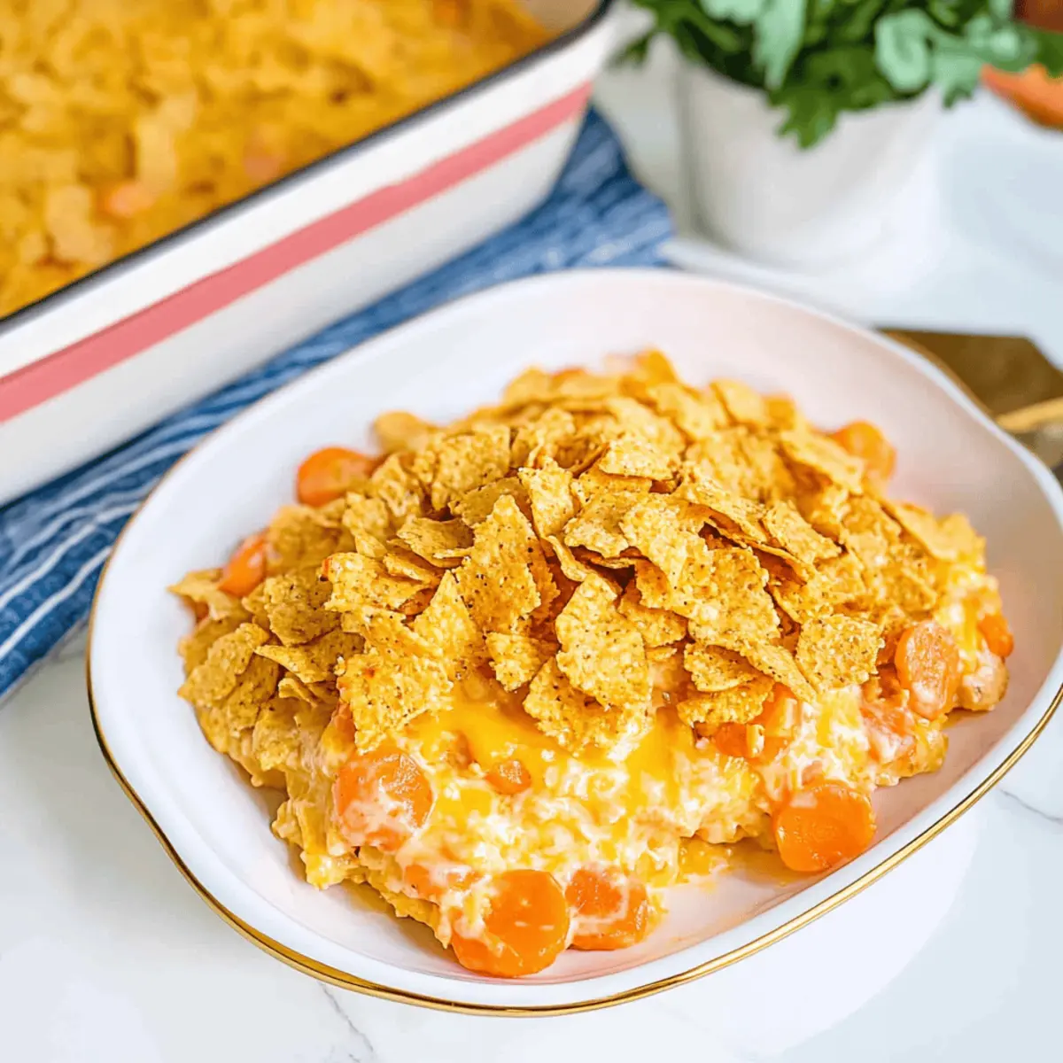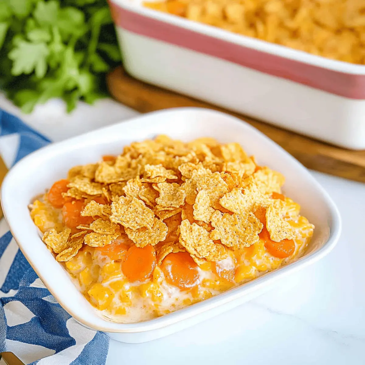Sprinkle the prepared cornflake mixture evenly over the carrot casserole. Place the baking dish in the preheated oven and bake for about 20 minutes, until the casserole is heated through and the topping is golden and crisp. This final touch will create a satisfying crunch that pairs perfectly with the creamy filling of the carrot casserole.