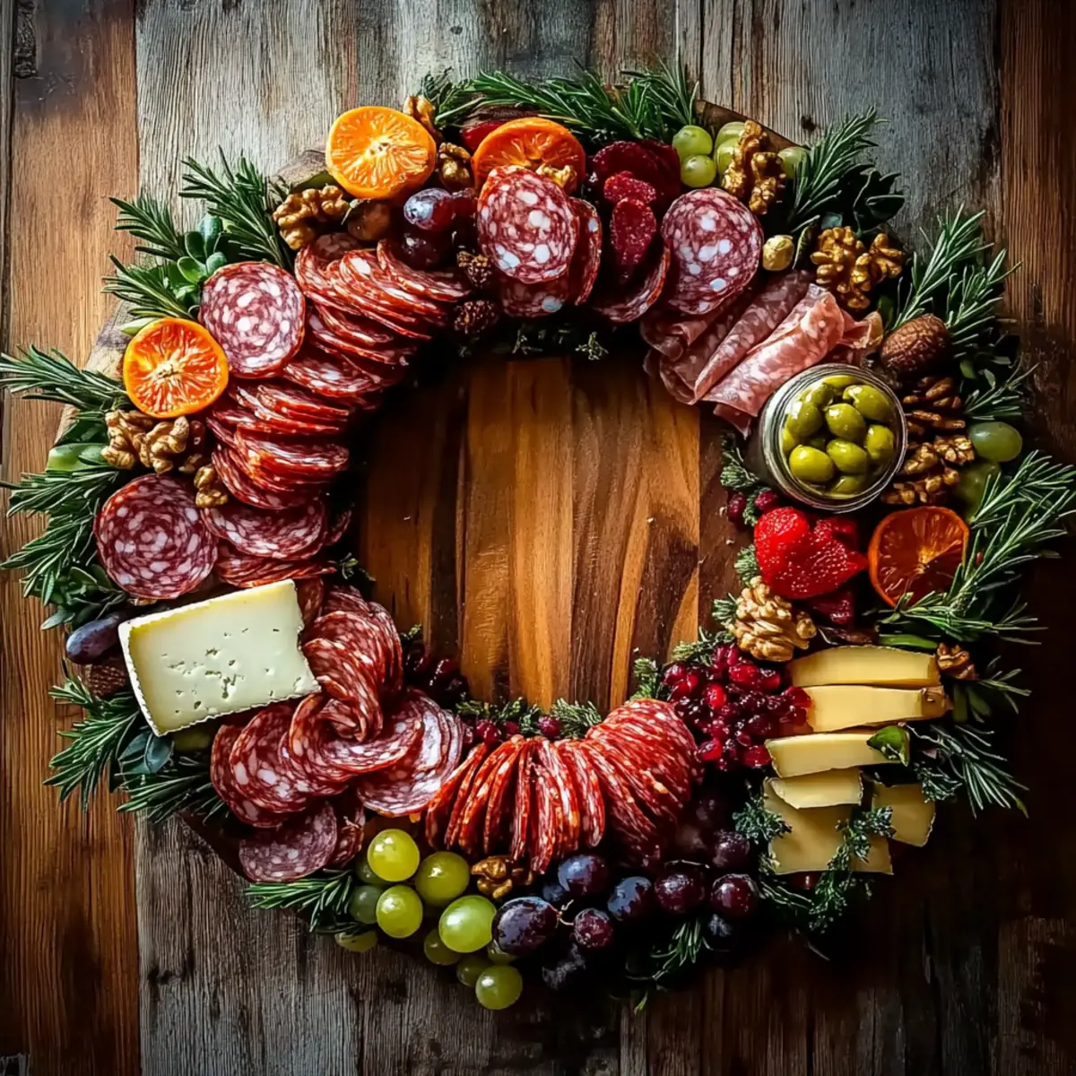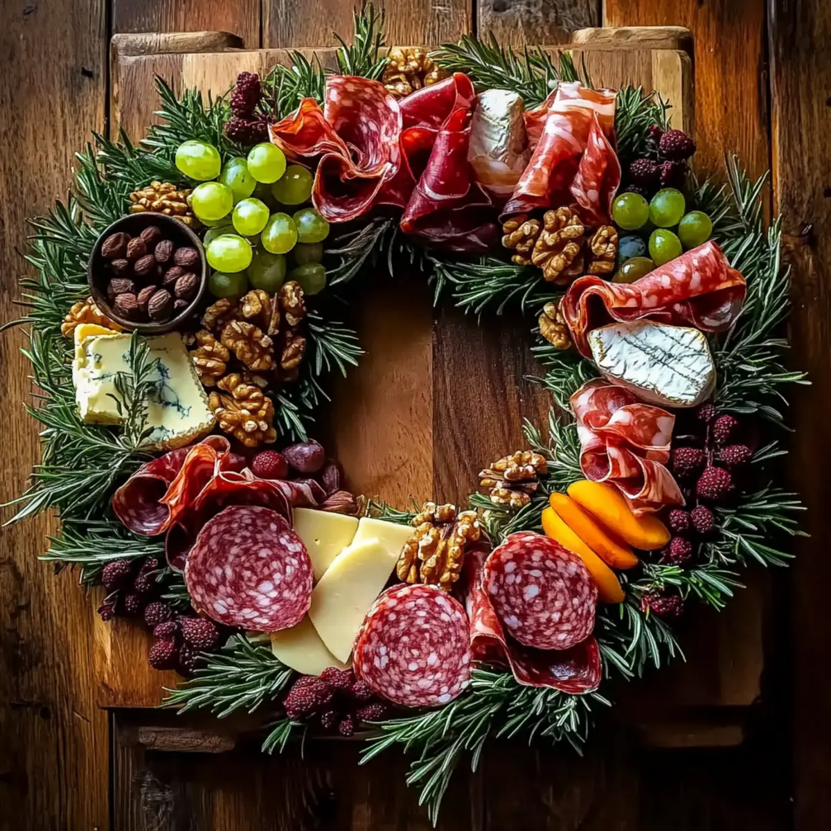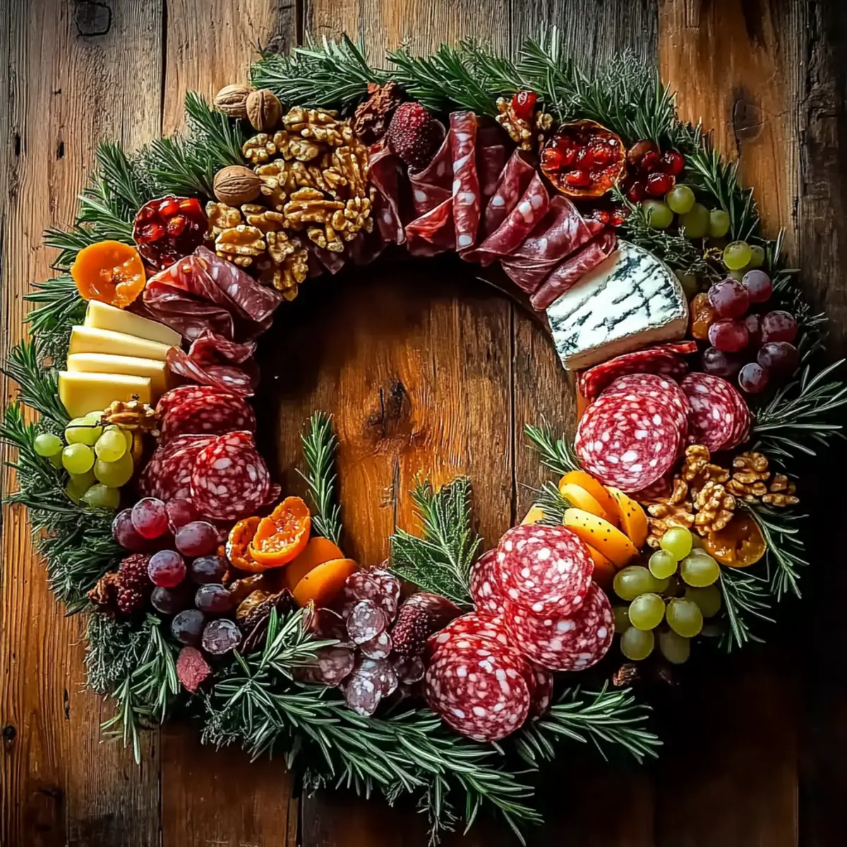 Jump to Recipe Print RecipeThe holiday season is upon us, and with it comes the perfect opportunity to elevate our gatherings with a feast for the eyes and the palate. Enter the Charcuterie Wreath, a stunning centerpiece that’s not only a feast but also a conversation starter! In just 30 minutes, you can assemble this visually striking display of savory cured meats, creamy cheeses, and vibrant produce that will delight your guests. This festive appetizer also offers endless customization, making it easy to cater to different tastes, including lighter and vegetarian variations. Imagine the joy of sharing a meal that invites everyone to pick and mingle, all while enjoying the flavors of the season. Ready to impress this holiday season? Let’s dive into how to create your own charcuterie wreath! What Makes This Wreath So Special? Eye-Catching Presentation: The charcuterie wreath is a showstopper, instantly brightening up any gathering and serving as a centerpiece that sparks conversations. Flavorful Variety: A harmonious mix of savory, creamy, and sweet elements makes each bite a delightful experience for your taste buds. Customizable: Easily adjust the ingredients to cater to diverse diets, from lightened options to vegan alternatives, ensuring everyone can enjoy! Quick and Simple: Assemble this stunning wreath in just 30 minutes, making it the perfect last-minute appetizer for unexpected guests. Holiday Cheer: Its festive appearance not only lifts spirits but also encourages sharing and togetherness, making your celebrations more memorable! For more festive inspiration, check out my seasonal appetizers. Charcuterie Wreath Ingredients For the Base Fresh Arugula or Lettuce Leaves – This adds a beautiful green layer; substitute with spinach or mixed greens for variety. Crackers – They provide the perfect crunchy base; consider gluten-free options to suit dietary needs. For the Cheese Cheese (Soft and Hard Varieties) – The creamy and savory centerpieces; use nut-based cheeses for a delightful vegan option. For the Meats Cured Meats (e.g., Prosciutto, Salami) – These lend delicious, savory depth to the wreath; swap with plant-based meats for a vegetarian treat. For the Fruits Fresh Fruits (e.g., Grapes, Pomegranate Seeds, Fig Slices) – They fill gaps with sweetness and vibrant color; any seasonal fruit will do! For the Crunch Toasted Nuts (e.g., Almonds, Walnuts) – They add a satisfying crunch and healthy fats; consider using seeds as a nut-free option. For the Tang Olives and Pickles – These provide a delightful tangy contrast; choose low-sodium varieties if desired for a healthier twist. For the Garnish Herbs (e.g., Rosemary, Thyme) – Fresh herbs elevate the aroma; use dried herbs in a pinch but fresh brings the most flavor. For the Sweet Finish Honey or Preserves – This adds a sweet note that pairs beautifully with cheese; opt for agave syrup for a vegan alternative. For Extra Color Extra Vegetable Accents (e.g., Bell Peppers, Radishes) – These provide additional crunch and color; feel free to substitute with whatever seasonal veggies you have on hand. Step‑by‑Step Instructions for Charcuterie Wreath Step 1: Prepare the Base Start by selecting a large round wooden board or a circular wreath frame lined with parchment paper. Spread a generous layer of fresh arugula or lettuce leaves to create a vibrant base. Aim for a circle approximately 12 inches in diameter, allowing the greens to peek out from underneath the other elements, enhancing the visual appeal of your charcuterie wreath. Step 2: Arrange Cheeses Position your chosen cheeses around the base, alternating between soft and hard varieties for texture contrast. Cut some cheeses into slices and keep others in larger blocks for a rustic look. Aim for balance in color and shape, allowing the creamy cheese to invite guests while ensuring it remains accessible for easy serving from the beautiful charcuterie wreath. Step 3: Layer Meats Next, fold or roll the cured meats like prosciutto and salami and nest them in clusters around the cheese. Vary the sizes and shapes to maintain interest, making sure to fill any gaps. The savory meats will complement the cheeses and add delicious flavor layers to your charcuterie wreath while enhancing its festive allure. Step 4: Fill Gaps with Fruits Now, distribute fresh fruits like grapes, pomegranate seeds, and fig slices throughout the wreath to add bursts of sweetness and lively color. Aim for an even distribution, placing fruit pieces strategically among the meats and cheeses. This not only enhances the visual balance but also encourages your guests to mix and match flavors from your beautiful charcuterie wreath. Step 5: Add Nuts and Garnishes Incorporate toasted nuts by placing them in small clusters around the wreath, adding delightful crunch and richness. Add olives and pickles in small bowls placed within the wreath or directly incorporated into the arrangement. Finish with fresh herbs like rosemary and thyme scattered on top to elevate the aroma and add a touch of elegance to your charcuterie wreath. Step 6: Finish with Drizzles To add a sweet touch, drizzle honey or preserves around the charcuterie wreath, highlighting various flavor profiles. If you’re making a vegan option, opt for agave syrup instead. Finally, tuck in extra crackers or breadsticks for convenience, ensuring your guests have everything they need to enjoy this festive, shareable masterpiece. Step 7: Serve or Store Once assembled, serve the charcuterie wreath immediately, allowing guests to indulge in its beauty. If you’re not ready to serve yet, cover it lightly with plastic wrap and store in the refrigerator until guests arrive. This way, your stunning centerpiece will remain fresh and inviting, ready to wow everyone at your holiday gathering. Charcuterie Wreath Variations Let your creativity shine as you customize your charcuterie wreath to match your tastes and dietary needs! Lighter Version: Redu