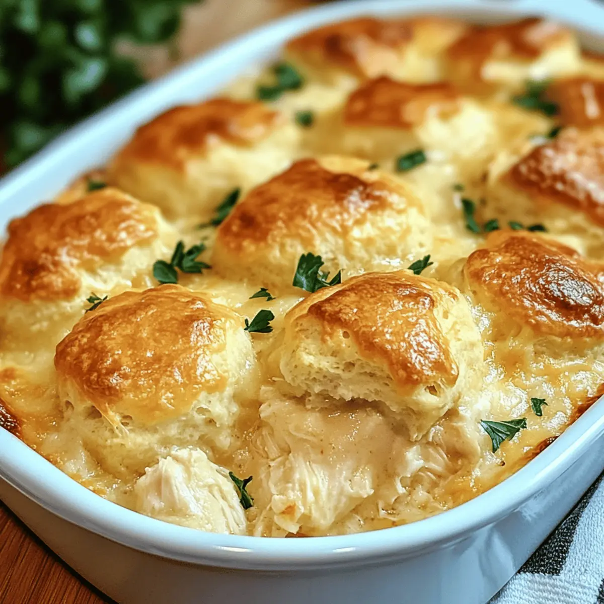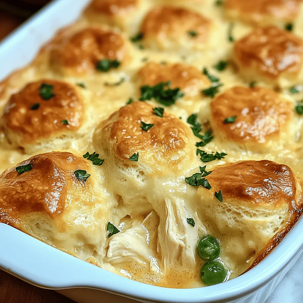 Jump to Recipe Print RecipeAs I opened my refrigerator to hunt for dinner inspiration, a cascade of disheartened thoughts rushed in—yet, there it was, last night’s leftover chicken, just waiting for a culinary makeover. That’s when I decided to whip up a Cheddar Bay Chicken Cobbler, a cozy creation that marries rich, creamy chicken with a dreamy biscuit topping. This recipe is a true lifesaver for busy weeknights, proving that comfort food doesn’t have to be complicated. Plus, it elevates the idea of traditional casseroles—no more bland, boring meals in my kitchen! With its chewy, cheesy biscuit crust and flavorful chicken filling, this dish is bound to have everyone asking for seconds. So, are you ready to dive into this deliciously simple comfort food adventure? Why is Cheddar Bay Chicken Cobbler a Must-Try? Comfort: This Cheddar Bay Chicken Cobbler redefines comfort food with its creamy, savory filling and buttery biscuit topping that’s simply irresistible. Quick: Perfect for those busy weeknights, this recipe comes together in no time, making dinnertime stress a thing of the past. Crowd-Pleaser: Ideal for family dinners or gatherings, it’s a dish that appeals to both kids and adults alike, ensuring nothing but empty plates at the end! Versatile: Feel free to swap out ingredients, like using homemade biscuits or different vegetables, to customize it to your taste—check out my Garlic Chicken Zucchini for more ideas! Aromatic: Your kitchen will be filled with delightful aromas, making it hard to resist diving in right away. You might want to serve it alongside a fresh green salad for balance or pair it with a hearty soup, just like my White Chicken Chili! Cheddar Bay Chicken Cobbler Ingredients Discover the key ingredients for this delightful dish! For the Chicken Filling Cooked, shredded chicken – Provides protein and substance; try using rotisserie chicken for added convenience. Chicken broth – Enhances flavor and moisture in the filling; you can substitute with vegetable broth for a lighter option. Frozen mixed vegetables – Adds nutrition and texture; fresh vegetables work too, but may require extra cooking time. Sour cream – Contributes creaminess and tang; Greek yogurt makes for a lighter alternative. Cream of chicken soup – This creamy base thickens the mixture; consider a homemade version for a personal touch. Garlic powder – Adds depth of flavor; fresh garlic can be used in smaller amounts for a sweeter taste. Black pepper – Provides a kick of seasoning; adjust to your heat preference. For the Biscuit Topping Cheddar Bay biscuit mix – Infuses a garlicky, cheesy flavor into the biscuits; feel free to substitute with any preferred biscuit mix but adjust for desired taste. Shredded cheddar cheese – Enhances flavor and richness of the biscuit topping; while other cheeses work, cheddar’s sharpness shines through. Milk – Adds creaminess to the biscuit mixture; almond or oat milk can be used for a dairy-free alternative. Butter (melted) – Gives richness to the biscuit topping; swap with margarine or olive oil for a lighter version. For Garnish (Optional) Fresh parsley – Offers a colorful, fresh finishing touch; feel free to omit if it’s not on hand. Now that you have all the ingredients for your Cheddar Bay Chicken Cobbler, it’s time to start cooking and delight your loved ones with this comforting dish! Step‑by‑Step Instructions for Cheddar Bay Chicken Cobbler Step 1: Preheat and Prepare Begin by preheating your oven to 375°F (190°C). Lightly grease a 9×13-inch baking dish with cooking spray or butter to ensure your Cheddar Bay Chicken Cobbler comes out easily after baking. This step sets the stage for a deliciously golden crust that will crown your comforting chicken filling. Step 2: Mix the Chicken Filling In a large mixing bowl, whisk together 1 cup of milk, 1 cup of sour cream, and 1 can of cream of chicken soup until smooth and creamy. This will form the base of your filling. Stir in garlic powder and black pepper for flavor, followed by your frozen mixed vegetables and the cooked, shredded chicken. Make sure every ingredient is well combined, then pour the mixture into your prepared baking dish. Step 3: Prepare the Biscuit Topping In a separate bowl, prepare the Cheddar Bay biscuit mix according to the package instructions, usually involving a bit of milk and the addition of shredded cheddar cheese. The mixture should be slightly thick yet pliable. This cheesy dough will create the wonderful topping atop your filling, adding flavor and texture to your Cheddar Bay Chicken Cobbler. Step 4: Assemble the Cobbler Using a spoon or cookie scoop, drop spoonfuls of the biscuit dough evenly over the surface of the chicken mixture in the baking dish. Aim for a rustic look; it doesn’t have to be perfect. Each dollop of biscuit dough will puff up during baking, creating a delightful, fluffy topping that complements the savory filling underneath. Step 5: Add Final Touches Drizzle melted butter over the top of your biscuit topping to ensure a rich, golden-brown finish. If you have fresh parsley on hand, sprinkle it over the biscuits for an added touch of flavor and color. This step not only enhances the visual appeal of your Cheddar Bay Chicken Cobbler but also infuses a welcoming aroma as it bakes. Step 6: Bake to Perfection Place your Cheddar Bay Chicken Cobbler in the preheated oven and bake for 40 to 45 minutes. You’ll know it’s ready when the biscuit topping is golden brown and bubbly. Keep an eye on it towards the end to prevent burning. The kitchen will fill with enticing aromas that hint at the delightful meal to come. Step 7: Cool and Serve Once baked, remove the Cheddar Bay Chicken Cobbler from the oven and let it cool for about 5 minutes. This resting period allows the flavors to meld and the filling to slightly thicken, making it easier to serve. Spoon generous portions onto plates and enjoy this heartwarming dish with fami