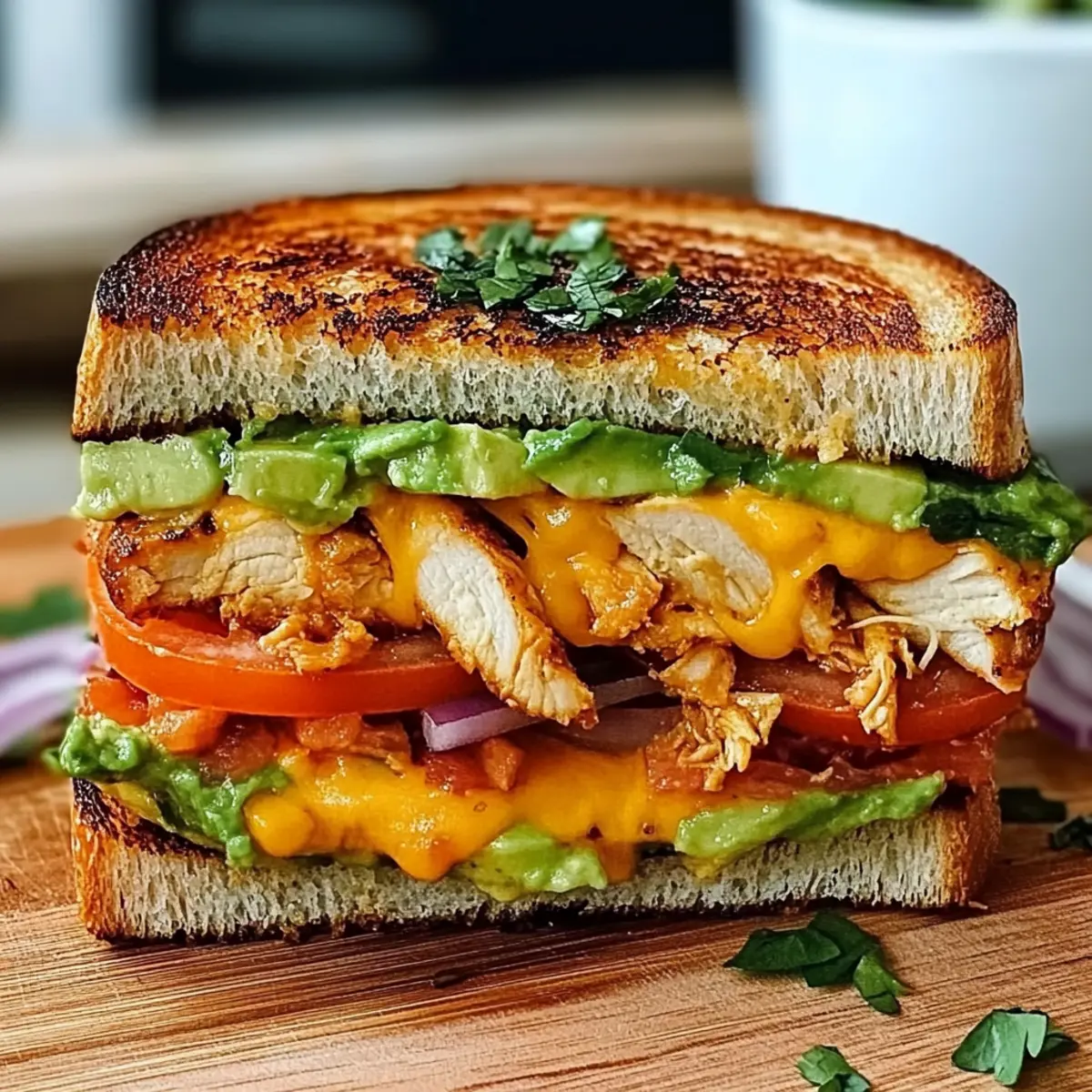 Jump to Recipe Print RecipeThe sound of sizzling chicken fills the air, and just like that, I’m transported to my favorite cozy kitchen moments. There’s something truly special about crafting a Chicken Avocado Melt Sandwich. This tempting treat combines juicy chicken, creamy avocado, and gooey cheese, all enveloped in perfectly toasted bread. Not only is this recipe quick enough to prepare on busy days, but it also invites endless customization—perfect for impressing family or simply satisfying your cravings. Whether you stick to the classic ingredients or sprinkle in your own twists, each bite promises warmth and comfort that rivals any deli sandwich. What’s your favorite ingredient twist that you can’t resist adding? Why is Chicken Avocado Melt a Must-Try? Quick and Easy: Preparing this sandwich takes minimal time, making it a fantastic option for those busy weeknights. Flavorful Combination: Juicy chicken, creamy avocado, and gooey cheese create a mouthwatering trio that elevates your mealtime. Customizable Ingredients: Add your personal touch! Swap in roast peppers or experiment with different cheeses like pepper jack to spice things up. Crowd-Pleasing Appeal: Perfect for family gatherings or busy nights, this sandwich is sure to satisfy even the pickiest eaters, much like a classic Oven Baked Chicken dish. Comfort Food Remake: With its golden, crispy exterior and warm filling, this Chicken Avocado Melt offers an upgraded take on traditional sandwiches that will keep you coming back for more! Chicken Avocado Melt Ingredients For the Sandwich • Chicken Breasts – This main protein should be boneless and skinless for easy cooking. • Salt and Pepper – Essential for enhancing flavor; always remember to season generously. • Olive Oil – Ideal for searing chicken, but you can substitute with butter for a richer taste. • Avocado – Provides creaminess and nutrition; replace with hummus or cream cheese if desired. • Cheese (Swiss, Cheddar, Provolone) – Choose your favorite for that delicious melted goodness. • Bread (Sourdough, Ciabatta, or your choice) – Sturdy bread works best to hold all the filling together. • Mayonnaise – Adds moisture and flavor; consider using Greek yogurt as a lighter option. • Dijon Mustard – Don’t skip this—it adds a tangy kick that brightens the whole sandwich. • Red Onion – Provides crunch and sharpness; substitute with green onions for a milder flavor. • Tomato – Adds freshness; roasted red peppers can be a great alternative for a twist. For Grilling • Butter or Olive Oil – Helps achieve that perfect golden-brown crust; cooking spray can lighten things up as well. Embrace the deliciousness of a Chicken Avocado Melt Sandwich, and let your culinary creativity shine with your favorite substitutes! Step‑by‑Step Instructions for Chicken Avocado Melt Sandwich Step 1: Cook Chicken Start by seasoning the boneless, skinless chicken breasts with salt and pepper. In a skillet, heat olive oil over medium-high heat for about 2 minutes. Add the chicken and cook for 6–7 minutes on each side until golden and fully cooked. You’ll know it’s done when the internal temperature reaches 165°F (75°C). Let the chicken rest for a couple of minutes before slicing it thinly. Step 2: Prep Avocado and Cheese While the chicken rests, slice your ripe avocado in half, remove the pit, and scoop the flesh into a bowl. Mash it gently with a fork and season with a pinch of salt. Prepare your cheese by cutting it into slices; Swiss, Cheddar, or Provolone works beautifully in this Chicken Avocado Melt Sandwich. Step 3: Prepare Bread Take your desired bread, such as sourdough or ciabatta, and spread a thin layer of mayonnaise and Dijon mustard on one side of each slice. This adds moisture and a tangy flavor to elevate the sandwich. Lay the bread slices aside, facing the mayo-mustard side up for easy assembly. Step 4: Assemble Sandwiches To each prepared slice of bread, layer the sliced chicken, followed by the creamy avocado, then the cheese. Add crunchy red onion and fresh tomato slices for extra flavor and texture. Close the sandwich with another slice of bread, ensuring the mayo side faces inwards to lock in all those delicious ingredients. Step 5: Grill Sandwiches Heat a skillet over medium heat and add a tablespoon of butter or olive oil. Once it’s hot, place your assembled sandwiches in the skillet, cooking for about 3–4 minutes per side. Grill until the bread is golden brown and crispy while the cheese melts deliciously inside. Adjust your heat as necessary to avoid burning. Step 6: Serve Once grilled to perfection, remove the Chicken Avocado Melt Sandwiches from the skillet and let them cool for a minute. Slice them in half to reveal the gooey cheese and vibrant fillings. Serve warm, perhaps alongside a side of chips or a light salad, and enjoy the comforting flavors of this quick meal! How to Store and Freeze Chicken Avocado Melt Sandwich Fridge: Store leftover Chicken Avocado Melt Sandwiches in an airtight container for up to 3 days. This helps maintain freshness while preventing any contamination. Freezer: If you’d like to keep them longer, wrap the sandwiches tightly in foil or freezer-safe bags and store them in the freezer for up to 2 months. Reheating: When reheating, take the sandwiches out of the freezer and thaw in the fridge overnight. For best results, reheat in a skillet over medium heat for about 5 minutes on each side to restore their crispy texture. Prep Ahead: Alternatively, prepare and store each component separately. You can assemble the sandwich and grill it fresh whenever you desire a cozy meal! Make Ahead Options These Chicken Avocado Melt Sandwiches are perfect for busy home cooks looking to save time during the week! You can prepare the chicken and slice it up up to 3 days ahead of time, storing it in an airtight container in the refrigerator to maintain its juiciness. Additionally, slice your avo