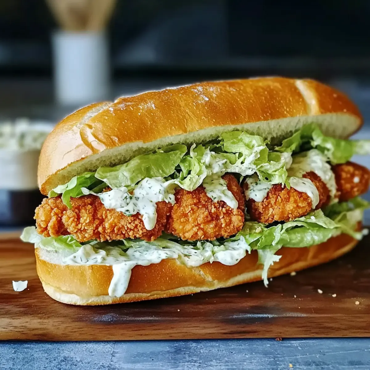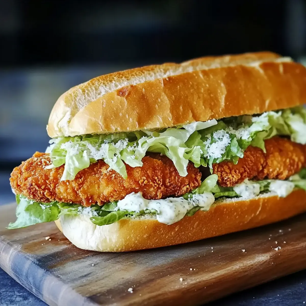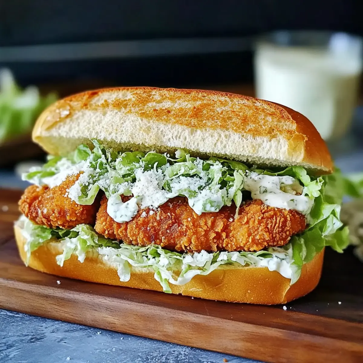 Jump to Recipe Print RecipeThere’s something extraordinary about transforming a beloved salad into a fabulous handheld delight. My Crispy Chicken Caesar Sandwich takes the classic flavors you love and wraps them snugly in a crusty baguette, complete with golden, fried chicken cutlets and a drizzle of creamy dressing. This easy chicken sandwich recipe isn’t just a crowd-pleaser—it’s a stress-free meal perfect for busy weeknights! The beauty lies in its versatility, too; you can easily switch up ingredients to suit any dietary need, including a gluten-free option. Ready to savor a culinary twist on tradition? Let’s dive into the delightful details! Why Is This Sandwich So Irresistible? Bold Flavors: Each bite bursts with a harmonious blend of crispy chicken, creamy Caesar dressing, and fresh romaine, creating an explosion of taste. Easy to Make: This recipe is beginner-friendly, requiring minimal cooking skills—perfect for anyone looking to step up their home cooking game. Customizable: Whether you prefer a gluten-free version or want to swap chicken for grilled vegetables, this recipe adapts to your cravings! Family-Friendly: Even picky eaters will enjoy this satisfying handheld meal, making it ideal for family dinners or gatherings. Quick Prep: Get this delicious sandwich on the table in no time—perfect for hectic weeknights. Pair it with some crispy fries or chips for a complete meal! Crispy Chicken Caesar Sandwich Ingredients For the Dressing Full-Fat Mayonnaise – The base that delivers rich creaminess to the dressing. Greek Yogurt – Adds tang and creaminess; try low-fat for a lighter version. Dijon Mustard – Offers a subtle heat and depth of flavor. Worcestershire Sauce – Enhances the dressing with a unique umami kick. Lemon Juice – Brightens the flavor profile; fresh juice is best. Parmesan Cheese – Brings richness; always go for freshly grated for a superior taste. Garlic Cloves – Provides aromatic depth; adjust based on your preference for garlic. Black Pepper & Sea Salt – Essential seasoning elements that enhance the dish. For the Chicken Chicken Cutlets – The star of this crispy chicken caesar sandwich; boneless, skinless breasts work great too. Oil for Frying – Essential for achieving that perfect crispy texture; olive oil is a healthier option. All-Purpose Flour – Provides the first layer of coating for the chicken. Eggs – Binds the coating together for a crunchy finish. Panko Crumbs & Breadcrumbs – For an extra crispy outer layer; substitute with gluten-free options if needed. For the Sandwich Assembly Romaine Hearts – Adds a fresh, crunchy layer to your sandwich. French Baguettes – Perfect for that satisfying crust; consider gluten-free bread for dietary needs. Transform your dinner with this chicken caesar sandwich that promises a delightful blend of flavors, all nestled in a warm, crusty baguette! Step‑by‑Step Instructions for Crispy Chicken Caesar Sandwich Step 1: Make the Caesar Dressing In a mixing bowl, combine full-fat mayonnaise, Greek yogurt, Dijon mustard, Worcestershire sauce, lemon juice, freshly grated Parmesan cheese, minced garlic, black pepper, and sea salt. Whisk the mixture until smooth and creamy. Once combined, refrigerate for about 30 minutes to allow the flavors to meld beautifully, creating a delicious homemade dressing for your Crispy Chicken Caesar Sandwich. Step 2: Prepare the Romaine While the dressing chills, wash and chop the romaine hearts into bite-sized pieces. In a large bowl, toss the chopped romaine with a generous amount of the prepared Caesar dressing until evenly coated. Cover and chill in the refrigerator for another 15-20 minutes, allowing the greens to soak up the creamy flavor for your sandwich. Step 3: Prepare the Chicken Cutlets Take your chicken cutlets and place them between two sheets of plastic wrap. Gently pound them to an even thickness of about 1/2 inch using a meat mallet or rolling pin. Season both sides with sea salt and freshly cracked black pepper to enhance their flavor. This ensures a juicy and flavorful chicken for your Crispy Chicken Caesar Sandwich. Step 4: Set Up the Breading Stations Prepare three shallow bowls for the breading process: in the first bowl, combine all-purpose flour with a sprinkle of paprika; in the second, whisk together eggs with a pinch of salt; and in the third, mix panko crumbs with additional herbs and Parmesan cheese for a flavorful crust. This setup will make breading the chicken smooth and efficient. Step 5: Bread the Chicken Cutlets Begin with one chicken cutlet, dredging it in the flour mixture until fully coated. Dip it into the egg mixture, making sure it’s well-covered, then transfer it to the breadcrumb mixture and press gently to ensure a good coating. Repeat this process for all chicken cutlets to prepare them for frying, ensuring they’re all crispy for your sandwich. Step 6: Fry the Chicken Cutlets In a large skillet, heat oil over medium heat until shimmering, about 350°F (175°C). Carefully add the breaded chicken cutlets to the hot oil, frying them for about 4-5 minutes on each side until they are golden brown and cooked through. Use a wire rack to drain the chicken and keep its crispy texture while you finish preparing the sandwich. Step 7: Assemble the Sandwich Slice the French baguettes into portions, creating the perfect vessel for your Crispy Chicken Caesar Sandwich. Spread a layer of the remaining Caesar dressing on the inside of each baguette. Layer each baguette with a crispy chicken cutlet followed by a generous helping of the chilled Caesar salad and a sprinkle of extra grated Parmesan. Close the sandwiches and serve warm for the best experience. What to Serve with Crispy Chicken Caesar Sandwich Elevate your meal by complementing this crispy delight with these mouthwatering sides and drinks. Crispy French Fries: The golden crunch of freshly fried potatoes pairs perfectly with the flavors of your sandwich, adding tha