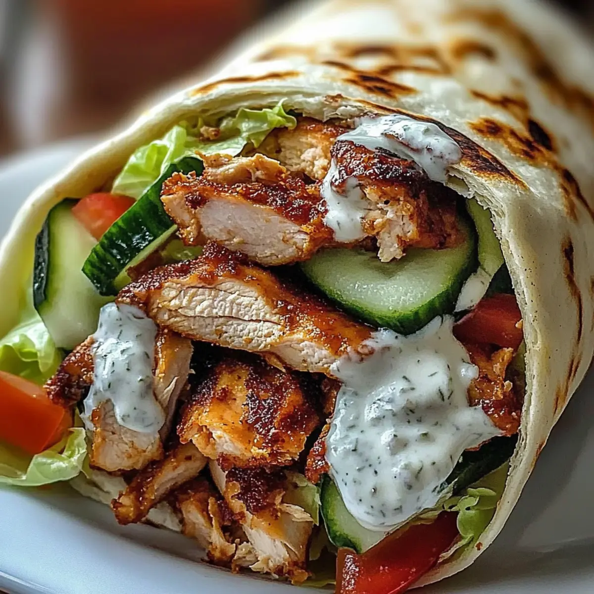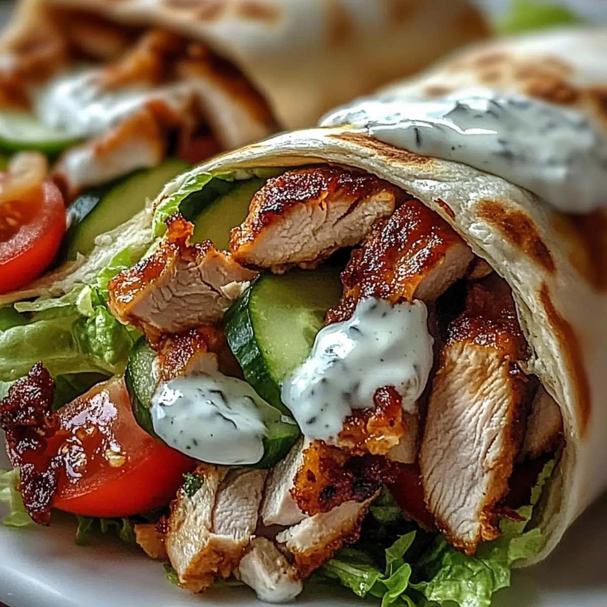 Jump to Recipe Print RecipeThere I was, savoring the sun-drenched streets of a bustling market, the tantalizing aroma of spices teasing my senses, leading me straight to a stall serving the most authentic Chicken Shawarma with Garlic Sauce. This vibrant dish—a staple of Middle Eastern cuisine—has a way of recreating those joyful moments at home. With tender marinated chicken thighs grilled to perfection and enveloped in fluffy pita, you’ll find this recipe captures both warmth and flavor. Not only is it a meal prep hero that makes weeknight dinners a breeze, but it’s also great for spicing up your gatherings with a delicious crowd-pleaser. Curious how to bring a taste of the market to your kitchen? Let’s dive into this savory wonder! Why is Chicken Shawarma So Irresistible? Flavor Explosion: The marination process infuses the chicken with a delightful mix of warm spices, making each bite unforgettable. Versatility: This dish can easily be adjusted to suit any palate, whether you prefer a mild flavor or a fiery kick with spices. Meal Prep Magic: The Chicken Shawarma is perfect for meal prep, allowing you to whip up delicious wraps for busy weekdays. Fresh and Crunchy: Wrapped in soft pita with crisp veggies, this dish balances juicy chicken with refreshing textures for a satisfying meal. Crowd-Pleaser: Serve it to your friends and family, and watch them come back for seconds! A surefire way to elevate any gathering, serve it alongside a variety of dips and sauces like in this Garlic Chili Oil Chicken Bites recipe for an extra treat! Chicken Shawarma with Garlic Sauce Ingredients For the Chicken Marinade Chicken Thighs – Juicy meat base, thighs provide more flavor and tenderness compared to chicken breasts. Garlic – Essential for flavor; fresh garlic is recommended for marinades and sauce. Ground Cumin – Adds warm, earthy notes; can be substituted with ground coriander for a different profile. Ground Coriander – Complements cumin with citrusy undertones to enhance the shawarma. Paprika – Contributes color and a mild smoky flavor; adjust the amount for desired smokiness. Turmeric – Adds a bright color and mild flavor, featuring anti-inflammatory properties. Ground Cinnamon – Provides warmth and sweetness to balance the spice blend. Cayenne Pepper – Offers heat; adjust to taste based on your heat preference. Olive Oil – Helps in marination and cooking, enhancing the chicken’s moisture. Lemon Juice – Adds brightness and acidity, balancing flavors beautifully; fresh is preferred. Salt and Pepper – Essential seasonings to enhance all ingredients. For the Garlic Sauce Plain Greek Yogurt – Serves as the base for the creamy garlic sauce, lending tanginess; substitute with other yogurt if needed. Tahini – Adds nuttiness to the sauce; can be omitted for a lighter garlic sauce. Minced Garlic – Amp up the flavor in the sauce; adjust to personal taste. For Assembling Pita Bread – Serves as the wrap; can substitute with flatbreads or gluten-free alternatives. Fresh Vegetables (Tomatoes, Cucumbers, Lettuce) – Adds freshness and crunch; feel free to include bell peppers or radishes for extra flavor. These ingredients come together to create delicious Chicken Shawarma with Garlic Sauce, perfect for meal prep and worthy of your dinner table! Step‑by‑Step Instructions for Chicken Shawarma with Garlic Sauce Step 1: Marinate the Chicken In a mixing bowl, combine minced garlic, ground cumin, coriander, paprika, turmeric, cinnamon, cayenne pepper, olive oil, lemon juice, salt, and pepper. Add the chicken thighs, ensuring they are thoroughly coated in the flavorful marinade. Cover the bowl and refrigerate for at least 1 hour, or ideally overnight, to allow the spices to permeate the chicken for a richer taste. Step 2: Prepare the Sauce While the chicken marinates, create the creamy garlic sauce. In another bowl, mix plain Greek yogurt, minced garlic, lemon juice, tahini, and a pinch of salt until the mixture is smooth and well-integrated. This sauce can be made up to a day ahead and stored in the refrigerator, allowing the flavors to meld together beautifully. Step 3: Cook the Chicken Preheat your grill or skillet to medium-high heat, ensuring it’s hot enough to sear the chicken for that delicious char. Place marinated chicken thighs on the grill, cooking for 6-7 minutes per side until they reach a golden-brown exterior and an internal temperature of 165°F. Avoid flipping them too often to allow proper browning. Step 4: Rest and Slice Once cooked, remove the chicken from the heat and let it rest on a cutting board for 5 minutes. This resting period allows the juices to redistribute, ensuring your Chicken Shawarma will be juicy and tender. After resting, slice the chicken into thin strips for easy assembly in your wraps. Step 5: Assemble Wraps Grab your pita bread and place a generous amount of sliced chicken in the center. Layer with your choice of fresh vegetables like lettuce, tomatoes, and cucumbers. Drizzle a helping of the creamy garlic sauce over the top, adding extra flavor and moisture to your Chicken Shawarma wrap. Step 6: Serve Roll or fold your wraps securely and serve immediately for optimal texture. The warm pita combined with juicy chicken and creamy garlic sauce creates a delightful experience. Gather your loved ones around the table, and enjoy these Chicken Shawarma wraps together! How to Store and Freeze Chicken Shawarma Fridge: Store your Chicken Shawarma in an airtight container for up to 4 days. This keeps the chicken moist and flavorful while protecting it from odors. Garlic Sauce: The creamy garlic sauce can be stored in the fridge for up to 1 week. Keep it separate from the chicken to maintain its freshness. Freezer: For longer storage, freeze the cooked chicken in a freezer-safe bag for up to 3 months. Thaw it in the fridge overnight before reheating. Reheating: To reheat, place the chicken in a skillet over medium heat or microwave in sho