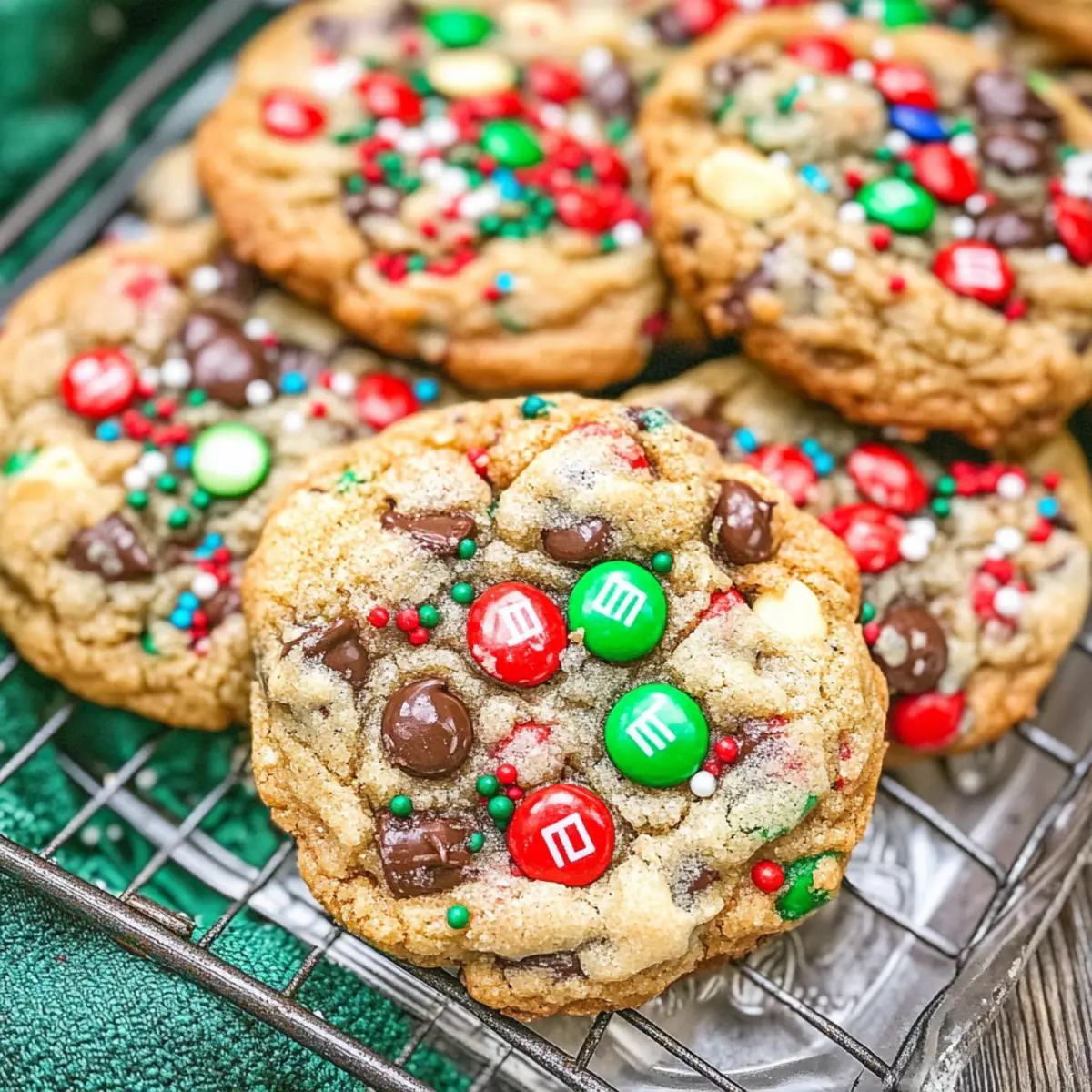 Jump to Recipe Print RecipeThe air is alive with laughter and the sweet scent of warmth as I gather in the kitchen, ready to bake my favorite festive treats: Christmas Chocolate Chip Cookies. These aren’t just any cookies; they’re a holiday tradition that brings friends and family together. With their buttery, chewy goodness, this easy recipe is the ultimate crowd-pleaser. What makes these cookies even more special is the vibrant pop of red and green M&Ms and a sprinkle of holiday cheer that turns each bite into a moment of joy. Not only are they quick to whip up, but they also make for delightful gifts straight from the oven! Will you join me in spreading some festive sweetness this holiday season? Why Are These Cookies So Special? Festive Touch: Each cookie is adorned with vibrant red and green M&Ms, adding a playful and cheerful element to your holiday spread. Buttery, Chewy Perfection: The combination of butter, sugars, and quality chocolate chips creates a moist, delicious cookie that’s impossible to resist. Quick and Easy: Perfect for busy bakers, this recipe can be prepared in no time, allowing you to spend more moments with loved ones. Crowd-Pleasing Delight: Whether at a holiday party or a cozy family gathering, these cookies are sure to disappear fast! Gift-Worthy Treats: Package them up as gifts—everyone will appreciate a taste of your homemade joy this season! Plus, if you’re looking for more festive bakes, check out our Christmas dessert ideas. Christmas Chocolate Chip Cookies Ingredients For the Batter • All-Purpose Flour – Provides structure; ensure it’s fresh for optimal texture. • Baking Soda – Acts as a leavening agent; check the expiration date for effectiveness. • Salt – Enhances flavor; use sea salt or table salt as available. • Unsalted Butter – Adds richness and moisture; must be at room temperature for proper mixing. • Light Brown Sugar – Contributes sweetness and moisture; can substitute with dark brown sugar for a deeper flavor. • Granulated Sugar – Provides sweetness and crispiness; adjust the amount for desired sweetness level. • Large Egg – Binds ingredients together; room temperature eggs mix better. • Vanilla Extract – Adds flavor depth; pure vanilla is recommended for the best flavor. For the Chocolate and Festive Additions • Semisweet Chocolate Chips – Main flavor, adds indulgence; consider using high-quality brands like Guittard for a richer taste. • White Chocolate Chips – Introduces sweetness and visual contrast; can be omitted if preferred. • Red and Green M&Ms – Festive decoration and flavor; regular chocolate candies can be used as a substitute. • Sprinkles – Adds visual appeal and a bit of crunch; choose holiday-themed sprinkles for a festive touch. These Christmas Chocolate Chip Cookies are a delightful way to celebrate the season, so gather your ingredients, and let the festive baking begin! Step‑by‑Step Instructions for Christmas Chocolate Chip Cookies Step 1: Preheat the Oven Begin by preheating your oven to 350°F (175°C). While the oven heats up, line two baking sheets with parchment paper. This ensures the Christmas Chocolate Chip Cookies bake evenly and don’t stick. Preheating is crucial for achieving that perfect golden brown crust! Step 2: Prepare the Dry Ingredients In a medium bowl, sift together 2 ¼ cups of all-purpose flour, 1 teaspoon of baking soda, and a pinch of salt. This step aerates the flour and combines the leavening agent evenly. Set the bowl aside as you move on to the next steps, ensuring all your dry ingredients are ready to go. Step 3: Cream the Butters and Sugars In a large mixing bowl, use an electric mixer to beat 1 cup of softened unsalted butter, along with ¾ cup of light brown sugar and ¾ cup of granulated sugar, until the mixture is smooth and creamy—about 2-3 minutes. You want it to be light in color and fluffy, creating a delightful base for your Christmas Chocolate Chip Cookies. Step 4: Add Egg and Vanilla Crack in 1 large room temperature egg and pour in 2 teaspoons of pure vanilla extract. Mix on low speed until both are fully incorporated into the buttery mixture. This step adds moisture and flavor, binding your ingredients together cohesively, and preparing your dough for the addition of dry ingredients. Step 5: Combine Dry and Wet Mixtures Gradually add the dry flour mixture to the wet ingredients, mixing on low speed until just combined. Take care not to overmix; you want your dough to be soft and slightly sticky for those perfect Christmas Chocolate Chip Cookies. If you see a few flour streaks, that’s completely fine! Step 6: Fold in the Goodies Using a spatula, gently fold in 1 cup of semisweet chocolate chips, ½ cup of white chocolate chips, 1 cup of red and green M&Ms, and ½ cup of festive sprinkles. This step is all about evening out the colorful treats throughout the dough, adding both flavor and a cheerful touch to your cookies. Step 7: Scoop the Dough Using a large ice cream scoop, portion out the cookie dough, placing 6-8 mounds on each prepared baking sheet. Make sure to leave about 2 inches between each mound for spreading as the cookies bake. This ensures that your Christmas Chocolate Chip Cookies have room to grow into delightful, chewy rounds. Step 8: Bake to Perfection Place the baking sheets in the preheated oven and bake for 10 to 13 minutes. Keep an eye out for the cookies: the edges should be lightly browned, while the tops should feel firm to the touch. This color will signal that they are ready to come out, keeping them resembling chewy, festive clouds. Step 9: Cool Before Serving Once baked, let the cookies cool on the baking sheets for about 5 minutes. This allows them to set before transferring them to a wire rack to cool completely. They will firm up as they cool, resulting in those irresistibly chewy Christmas Chocolate Chip Cookies perfect for any holiday gathering. How to Store and Freeze Christmas Choc