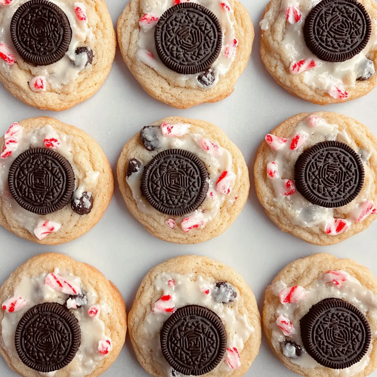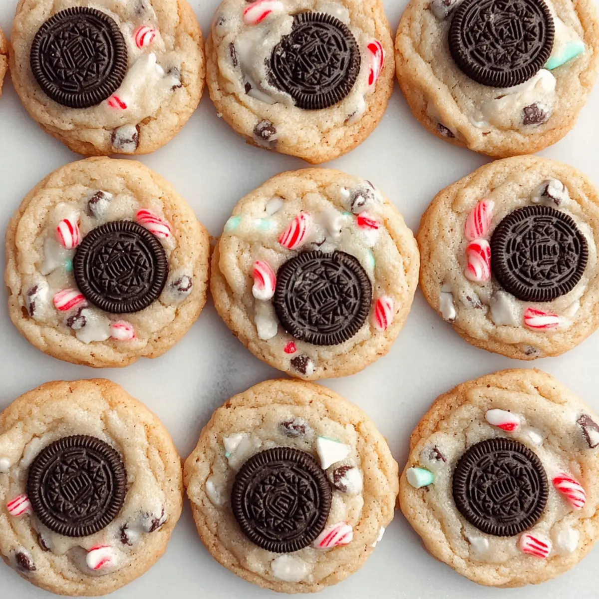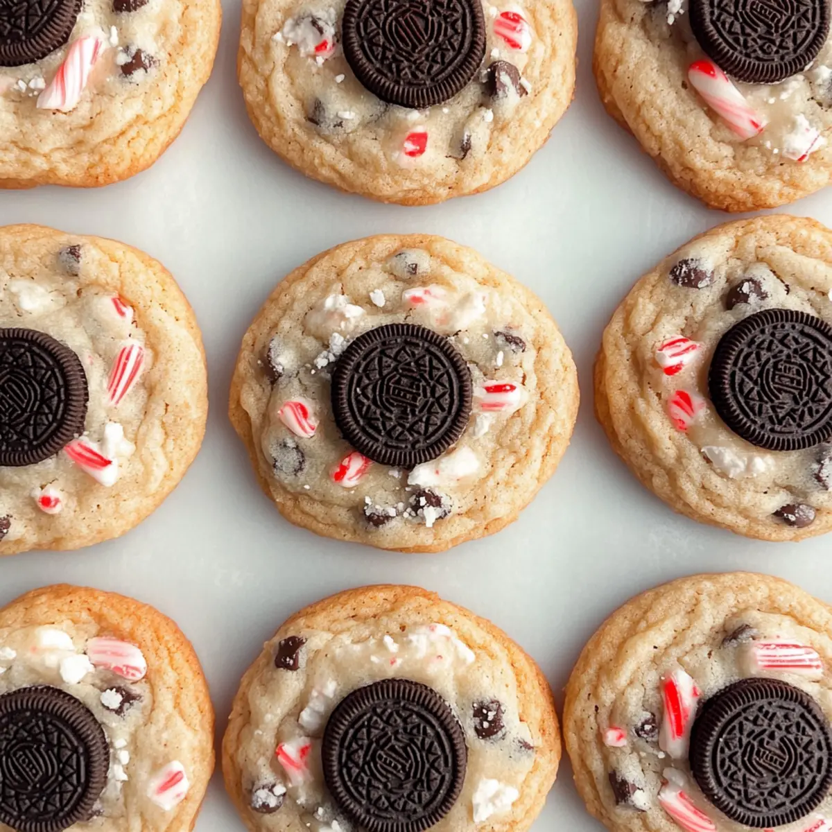 Jump to Recipe Print RecipeAs the holiday season approaches, the sweet scent of baking fills the air, evoking cherished memories of family gatherings. Today, I’m excited to share my recipe for Easy Peppermint Oreo Cookies, a delightful way to spread festive cheer without spending hours in the kitchen. These cookies combine the beloved crunch of Oreos with a refreshing peppermint twist—making them an instant crowd-pleaser. Plus, they’re not just incredibly delicious; they’re also easy to make ahead, perfect for busy holiday schedules. In about 30 minutes, you’ll have a scrumptious batch ready to impress family and friends. What’s your favorite cookie to bake during the holidays? Why Are These Cookies a Must-Bake? Irresistible Flavor: The combination of rich chocolate and cool peppermint takes traditional cookies to a festive new height, making them a tantalizing treat for everyone. Quick to Prepare: With just 30 minutes, you can whip up a batch, perfect for those last-minute holiday gatherings or cookie swaps. Make-Ahead Delight: These cookies can be easily made in advance and stored, ensuring you’re always ready to impress guests with a homemade touch. Crowd-Pleasing Goodness: Both kids and adults absolutely love these cookies, making them the ideal choice for parties and events—everyone is sure to go back for seconds! Creative Variations: Feel free to customize with seasonal ingredients or different Oreo flavors, allowing you to create unique treats that suit any gathering. For more holiday inspiration, check out our collection of easy baking recipes. Christmas Peppermint Oreo Cookies Ingredients For the Cookie Base Unsalted Butter – Adds richness and moisture; substitute with salted butter, reducing additional salt by 1/4 tsp. Brown Sugar – Provides sweetness and a chewy texture; use dark brown for deeper flavor or all white sugar for less chewiness. Granulated Sugar – Sweetens the dough while contributing to the cookie’s texture. Eggs – Binds the ingredients together; use at room temperature for better emulsion. Vanilla Extract – Enhances the overall flavor profile of the cookies. All-Purpose Flour – The core structure component, essential for shaping cookies. Cornstarch – Keeps cookies soft and chewy; replace with all-purpose flour (add 2 tsp) if needed. Baking Soda – Helps the cookies rise to give them that perfect texture. Salt – Balances sweetness and enhances the overall flavors of the cookies. For the Festive Touch Andes Peppermint Baking Bits – Adds delightful bursts of minty flavor; can be swapped with crushed candy canes or chopped mint chocolate bars for a fun twist. Chopped Oreo Cookies – Core flavor; feel free to use regular or mint Oreos for an extra minty experience. Semisweet Chocolate Chips – Provides that essential chocolatey goodness; may substitute with dark, white, or mint chocolate chips based on your taste preference. These Christmas Peppermint Oreo Cookies will surely become a holiday favorite, adding a sweet and festive flair to your gatherings! Step‑by‑Step Instructions for Christmas Peppermint Oreo Cookies Step 1: Preheat the Oven Start by preheating your oven to 400°F (200°C) and line two baking sheets with parchment paper. This is a crucial first step, ensuring your Christmas Peppermint Oreo Cookies bake evenly and don’t stick to the pans. While the oven heats up, gather your ingredients and let your cold butter sit out to soften slightly. Step 2: Cream the Butter and Sugars In a large mixing bowl, use an electric mixer to beat the cold, cubed butter together with brown and granulated sugar on medium-high speed for about 3-4 minutes. The mixture should become creamy and light in color, signaling that the sugar has begun to dissolve fully. This ensures each cookie will be rich and chewy, the perfect base for your festive cookies. Step 3: Incorporate the Eggs and Vanilla Add in the eggs and vanilla extract to the butter-sugar mixture. Beat everything together on medium speed until well combined, scraping down the sides of the bowl as necessary. The mixture should be smooth and uniform, indicating it’s ready for the dry ingredients. This combination of flavors will enhance the overall taste of your Christmas Peppermint Oreo Cookies. Step 4: Mix in the Dry Ingredients Gradually add the all-purpose flour, cornstarch, baking soda, and salt to the wet ingredients on low speed. Mix just until combined to avoid overworking the dough; you want it to remain soft and luscious. The dough will start to come together, and it should not be overly sticky or crumbly at this stage. Step 5: Fold in Festive Additions Gently fold in the Andes peppermint baking bits, chopped Oreos, and semisweet chocolate chips using a spatula. Be careful not to overmix, as this can toughen the cookies. The colorful bits should be evenly distributed throughout the dough, bringing that delightful holiday flair to your Christmas Peppermint Oreo Cookies. Step 6: Portion the Dough Using a 1/4 cup scoop, portion out the cookie dough onto the prepared baking sheets, making sure to space them about 2 inches apart. This allows plenty of room for the cookies to spread as they bake. You’ll be greeted by the sweet aroma of peppermint and chocolate soon! Step 7: Bake to Perfection Bake the cookies in your preheated oven for 10–12 minutes. You’ll know they’re ready when the edges are golden brown and the centers still look slightly underbaked. This step is key in achieving that perfect chewy texture, ensuring your Christmas Peppermint Oreo Cookies are delightful and soft. Step 8: Cool and Enjoy Once baked, let the cookies cool on the baking sheet for 5 minutes before transferring them to a wire rack. This cooling time allows them to set properly. After about 10 minutes on the rack, they will be ready to enjoy, with that perfect combination of chocolate and refreshing peppermint flavor bringing cheer to your holiday gatherings! Make Ahead Options Thes