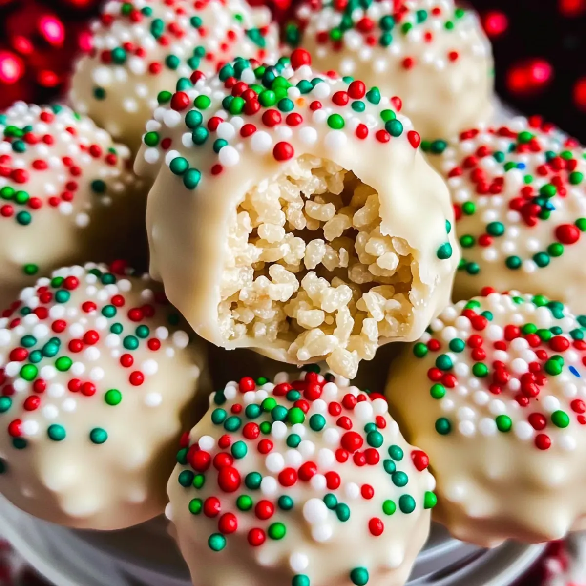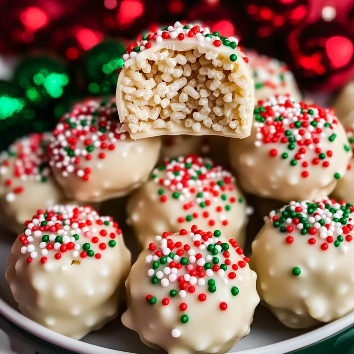 Jump to Recipe Print RecipeAs I unwrapped a delightful white chocolate bar, the sweet aroma filled the kitchen, instantly whisking me back to festive family gatherings. This year, I’m excited to share my recipe for White Chocolate Christmas Rice Crispy Treats, an effortlessly charming no-bake dessert that brings a touch of magic to any holiday celebration. Not only are these treats quick to whip up, making them perfect for last-minute party prep, but they also showcase a delightful mix of crunch and creaminess that will surely charm your guests. Whether you create them for gifting, an office potluck, or just to enjoy by the fire, these festive bites are sure to evoke joy and nostalgia. Are you ready to transform your holiday gatherings with this simple yet irresistible treat? Why Are These Treats a Holiday Must? Easy to Make: With no baking required, these treats come together in a snap! Perfect for busy holiday schedules. Delightfully Festive: The combination of white chocolate and colorful sprinkles makes them visually stunning and festive, enhancing your table spread. Versatile Options: Feel free to personalize by swapping in different chocolate varieties or adding nuts for a fun twist. Crowd-Pleasing Flavor: Kids and adults alike will adore the sweet, creamy taste paired with the satisfying crunch of puffed rice, making these treats a hit at any gathering. Memory-Making Moments: Relive cherished holiday traditions by creating these treats with family or friends, filling your home with love and laughter. You can explore more festive favorites like classic Rice Krispie treats or even get tips on how to store your creations for later enjoyment! Christmas Rice Crispy Treats Ingredients For the Treats Puffed Rice Cereal – This base ingredient provides the essential crunch; consider using gluten-free cereal if necessary. Unsalted Butter – Adds richness and aids in binding; substitute with salted butter for an extra flavorful touch if desired. Mini Marshmallows – Deliver sweetness and a gooey texture; marshmallow fluff can be used for a silkier mix. For the Coat White Chocolate – This delightful coating adds sweetness and creaminess; feel free to swap for dark or milk chocolate for a unique twist. For Decoration Holiday Sprinkles – These brighten up your treats and enhance their festive look; edible glitter or colored sugar are great substitutes to explore. With these Christmas Rice Crispy Treats ingredients, you’re on your way to creating a holiday masterpiece that will bring smiles to everyone around the table! Step‑by‑Step Instructions for White Chocolate Christmas Rice Crispy Treats Step 1: Melt Butter and Marshmallows In a large saucepan, add 4 tablespoons of unsalted butter and melt it over low heat, stirring gently until it starts to bubble. Once melted, pour in the mini marshmallows, mixing continuously for about 3-5 minutes until the mixture turns gooey and smooth. This sweet base is essential for your Christmas Rice Crispy Treats. Step 2: Mix in Cereal Remove the pan from the heat and carefully fold in the puffed rice cereal using a spatula. Ensure each piece is well coated with the marshmallow mixture, which should be sticky but still pliable. This should take around 1-2 minutes. Set the mixture aside to cool slightly, making it easier to handle. Step 3: Shape Treats Once the mixture has cooled for about 5 minutes, moisten your hands with a little water to prevent sticking. Grab a handful of the mixture and roll it into 1-inch balls, applying gentle pressure to pack them tightly. These will be the delightful bites of your Christmas Rice Crispy Treats, so keep the shapes consistent. Step 4: Coat with Chocolate While your treats cool, prepare the white chocolate by melting it in a microwave-safe bowl, heating in 30-second intervals and stirring in between until smooth and glossy. Dip each formed ball into the melted white chocolate, allowing any excess to drip off. This process adds a rich flavor and festive finish to your treats. Step 5: Add Sprinkles While the chocolate coating is still wet, generously sprinkle the holiday-themed decorations over each ball. This step is crucial as it adds a pop of color and festive flair to your Christmas Rice Crispy Treats, making them visually appealing for your celebration. Step 6: Set and Serve Transfer the coated treats to a parchment-lined tray, allowing them to set at room temperature for about 20-30 minutes until the chocolate hardens. Once set, your treats are ready to be enjoyed, stored in an airtight container at room temperature for up to three days, perfect for sharing with family and friends this holiday season! Christmas Rice Crispy Treats Variations Feel free to let your creativity shine and personalize these treats with delightful twists and substitutions! Chocolate Swap: Switch out white chocolate for dark or milk chocolate for a richer flavor and unique sweetness. The contrast will be delightful! Nutty Addition: Add crushed nuts like almonds or pecans for a satisfying crunch. This will not only enhance texture but also provide a nutty essence. Fruity Flavor: Toss in some dried fruits, such as cranberries or apricots, for a fruity surprise. These bites will add a wonderful burst of sweetness. Shape Shift: Rather than rolling into balls, use festive cookie cutters to create fun shapes like stars or Christmas trees. This adds a playful touch to your holiday table! Coconut Flakes: Mix in shredded coconut for a tropical flair. The coconut provides added flavor and a chewy texture that pairs beautifully with the chocolate. Spice Infusion: Sprinkle in a dash of cinnamon or nutmeg for warmth and depth. This twist will elevate the treats with a hint of holiday spice. Crunchy Cereal Mix: Experiment with different cereals, like Cheerios or Rice Chex, for added crunch and complexity. A mix can offer an exciting new texture! Heat It Up: For those who enjoy a kick, add a pinch of chili flakes or cayenne pepper to the chocol