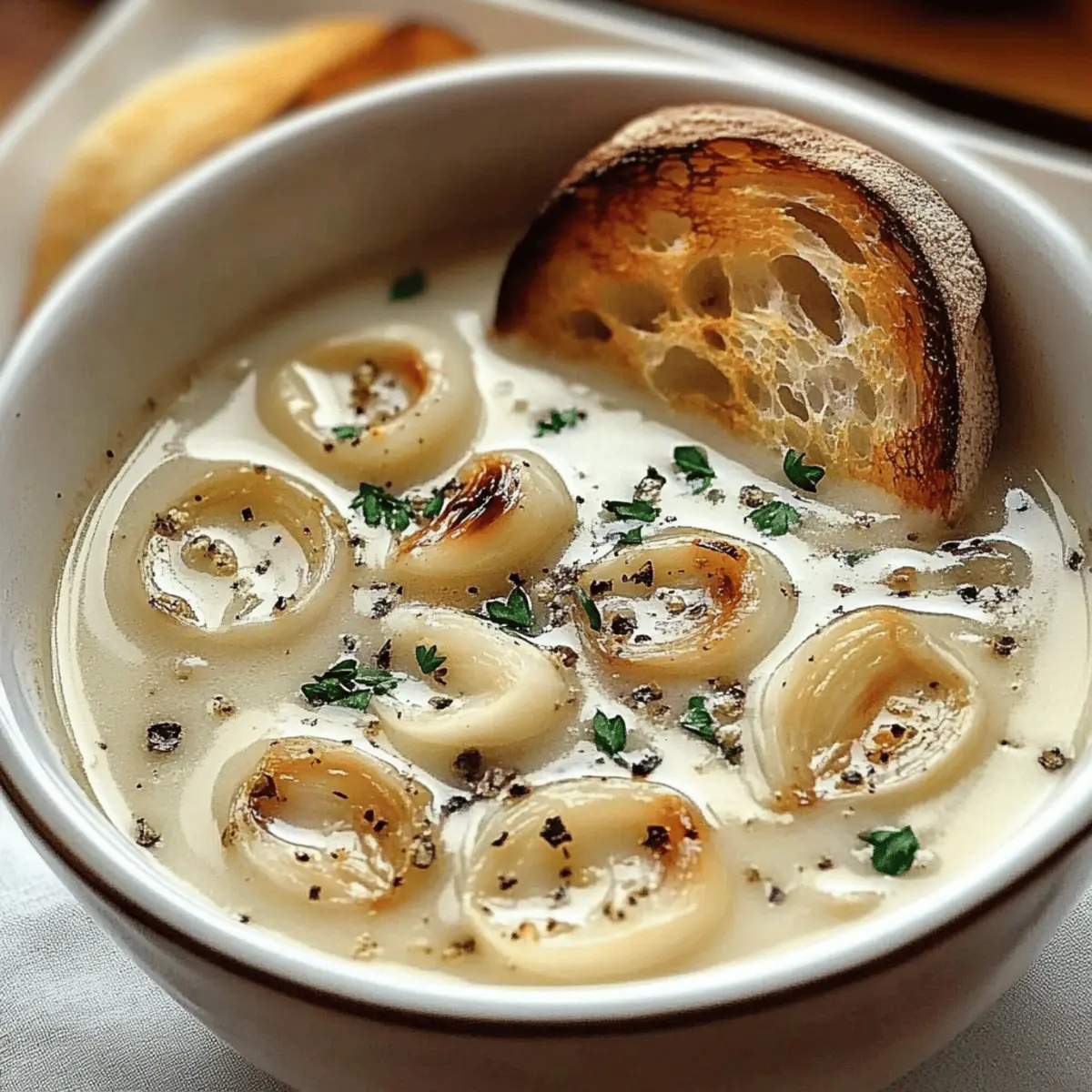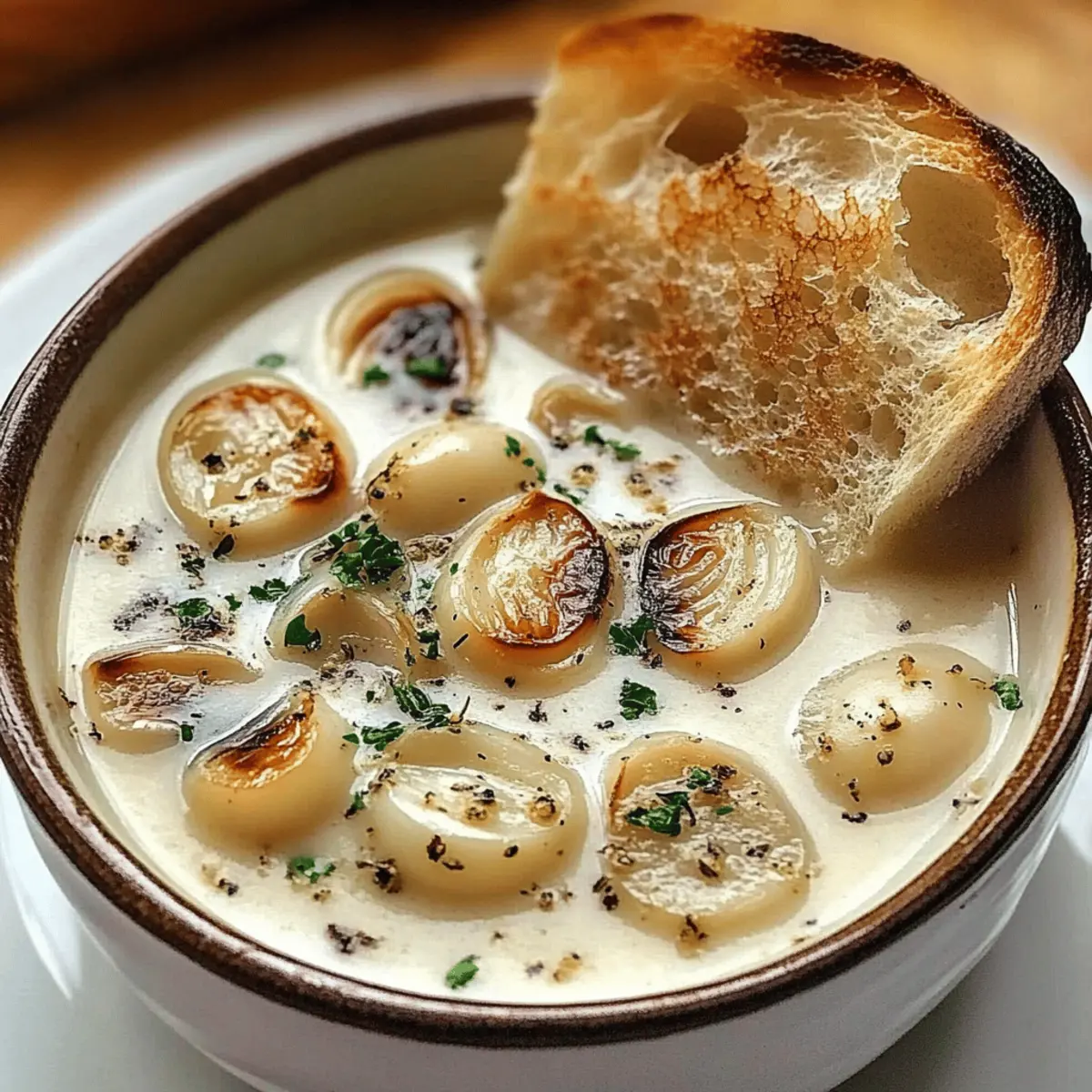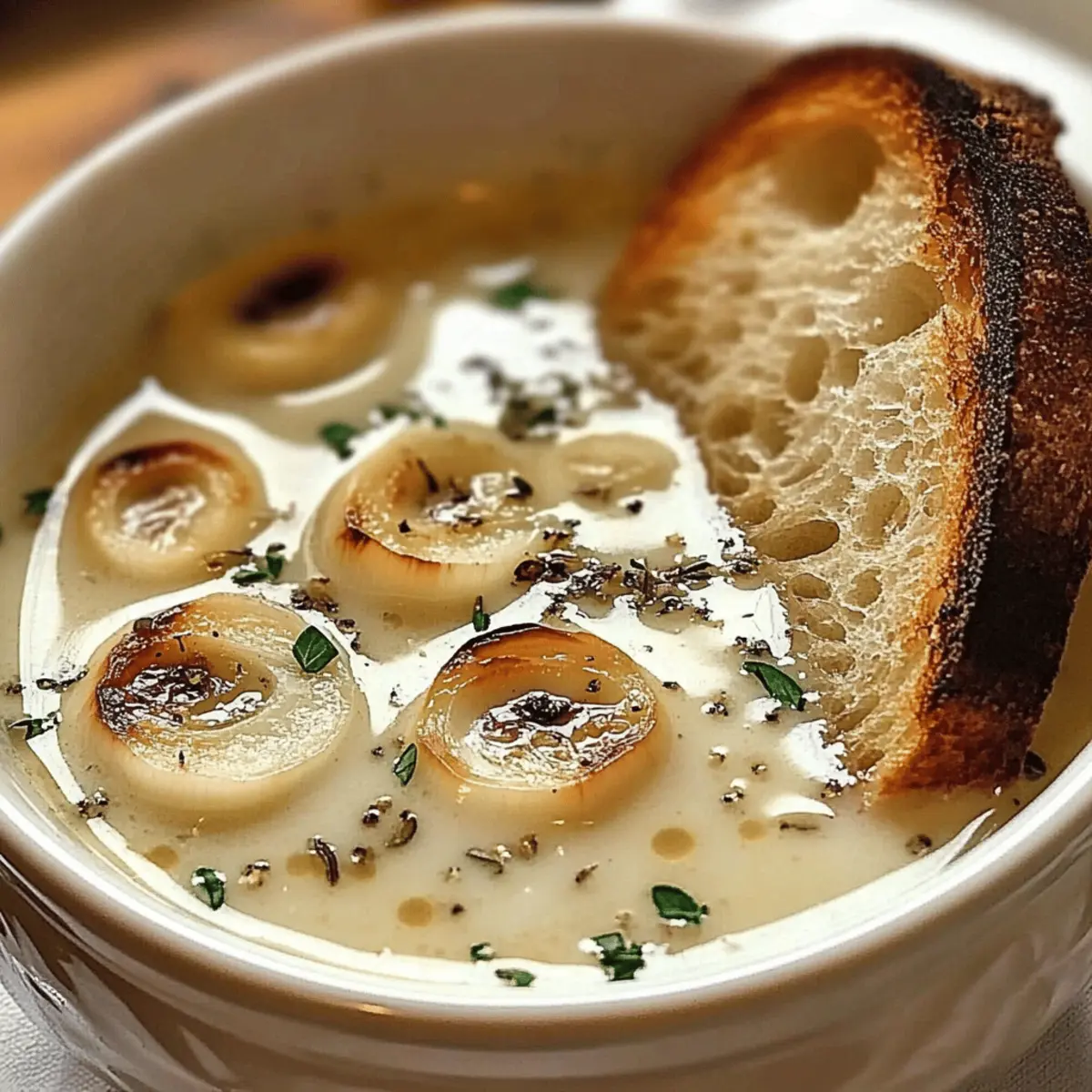 Jump to Recipe Print RecipeAs I stepped into the kitchen on a chilly evening, the familiar comforting aroma of roasting garlic instantly wrapped around me like a warm blanket. This is the essence of my Classic Country French Garlic Soup, a dish that perfectly embodies simple, rustic French cooking. Packed with the goodness of creamy egg yolks and nutty Parmesan, this soup is a nourishing hug in a bowl—ideal for those nights when all you crave is warmth and comfort. Not only does it come together quickly, but it also invites creativity, allowing you to adapt it with your favorite ingredients. Are you ready to discover how easy it is to make this delightful comfort food? Let’s get cooking! Why is this soup a must-try? Comforting, this Country French Garlic Soup offers the ultimate cozy experience, perfect for chilly evenings. Creamy texture from egg yolks creates a luxurious mouthfeel that’s simply delightful. Versatile variations allow you to customize with your favorite ingredients, like adding greens or using roasted garlic. Time-saving and easy to prepare, it’s ideal for busy folks craving homemade goodness without fuss. Plus, it pairs perfectly with a side of crusty bread, making every spoonful a heartwarming delight! Enjoy with a refreshing fresh green salad dressed in vinaigrette for a complete meal. Country French Garlic Soup Ingredients For the Soup Whole Heads of Garlic – The main flavor component; fresh, whole garlic cloves are essential for depth. Olive Oil – Adds healthy fats and a base for cooking; can be substituted with any neutral oil. Onion – Provides sweetness and depth; shallots are a milder alternative. Butter – Enhances flavor and richness; vegan butter or margarine can be used for a dairy-free option. Chicken or Vegetable Broth – Forms the soup base; choose vegetable broth for a vegetarian option. Fresh Thyme – Offers an aromatic herbaceous note; use dried thyme if necessary but adjust the quantity. Bay Leaves – Adds depth to flavor; remember to remove before serving. Salt and Pepper – Essential for seasoning; adjust to your taste preferences. For the Creamy Finish Egg Yolks – Creates a custard-like finish that thickens the soup; substitute with a vegan egg replacer if needed. Grated Parmesan Cheese – Provides umami and richness; replace with dairy-free cheese for a vegan version. To Serve Crusty Bread – Perfect for dipping alongside the soup; opt for gluten-free bread if necessary. Fresh Parsley (optional) – This garnish adds color and an extra touch of freshness to the dish. Step‑by‑Step Instructions for Country French Garlic Soup Step 1: Heat the Base In a large pot, heat 2 tablespoons of olive oil and 2 tablespoons of butter over medium heat. Allow the butter to melt completely until it begins to bubble gently, indicating it’s ready for the next ingredient. The comforting aroma of the oil will fill your kitchen as you prepare to add the onion for your Country French Garlic Soup. Step 2: Sauté the Onion Add 1 finely chopped onion to the pot and sauté for about 5 minutes. Stir occasionally until the onion becomes translucent and softened, giving off a sweet scent. This step builds a flavorful base for your soup, so take your time to develop that lovely depth of flavor before moving on to the garlic. Step 3: Add the Garlic Once the onion is softened, carefully add 2 whole heads of peeled garlic cloves to the pot. Sauté the garlic for 2-3 minutes, stirring frequently to prevent burning. You’ll notice the cloves turning golden and fragrant, a sure sign that your creamy Country French Garlic Soup is starting to take shape. Step 4: Combine with Broth Pour in 6 cups of chicken or vegetable broth into the pot, followed by 1 teaspoon of fresh thyme and 2 bay leaves. Increase the heat to high and bring the mixture to a boil. Once bubbling, reduce the heat to low, cover, and let it simmer for 30 minutes. The broth will absorb the garlic flavor, creating a comforting and aromatic base for your soup. Step 5: Season the Soup After simmering, remove the thyme and bay leaves from the pot. Season the soup with salt and pepper to taste, allowing the flavors to meld beautifully. You should taste the rich essence of garlic along with the broth’s depth at this stage, preparing your Country French Garlic Soup for a creamy finish. Step 6: Create the Creamy Finish In a separate bowl, whisk together 3 egg yolks and ½ cup of grated Parmesan cheese until combined. This mixture will create that delightful creamy texture. Make sure to temper the egg mixture by slowly whisking in a ladle of hot soup, ensuring the egg yolks don’t scramble when added to the pot. Step 7: Combine Egg Mixture with Soup Gradually whisk the tempered egg yolk mixture into the main pot of soup. Stir continuously over low heat for another 5 minutes. The soup will thicken slightly as it heats, transforming into a velvety consistency that beautifully embraces the garlic flavor in your Country French Garlic Soup. Step 8: Serve and Enjoy Ladle the hot soup into bowls and serve immediately, accompanied by crusty bread for dipping. Optionally, garnish with fresh parsley for a burst of color and freshness. This Country French Garlic Soup is a perfect cozy dish, ideal for inviting warmth into your chilly evenings! What to Serve with Classic Country French Garlic Soup A comforting bowl of soup deserves a delightful accompaniment to complete the meal. Crusty Bread: The classic pairing is irresistible. Its chewy texture and crunchy crust make it perfect for dipping into the velvety soup. Fresh Green Salad: A refreshing salad dressed in vinaigrette brightens the meal, offering a crisp contrast to the rich soup. The tanginess helps balance the garlic. Roasted Chicken: Serve alongside tender roast chicken for a heartier option. The savory flavors meld beautifully, creating a satisfying fusion. Herbed Rice: Fluffy rice with fresh herbs adds a lovely texture and taste, absorbing the comfo