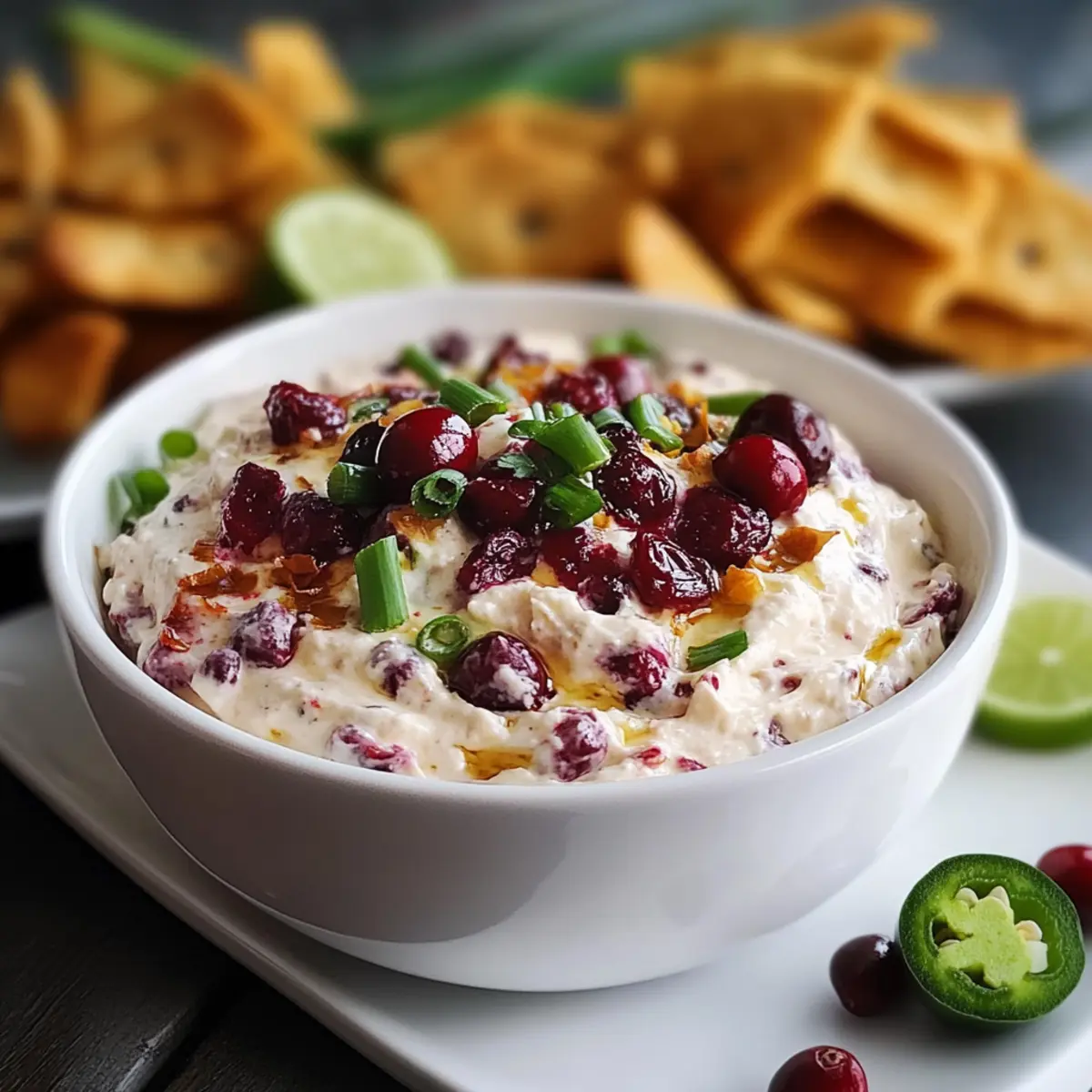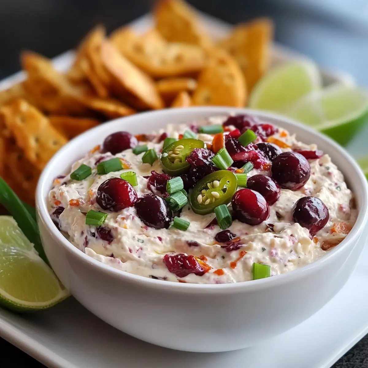 Jump to Recipe Print RecipeAt a recent gathering, I overheard someone exclaim, “This dip is amazing! What’s in it?” Little did they know, I had whipped up a delightful Cranberry Jalapeno Cream Cheese Dip that was a breeze to prepare! This vibrant appetizer brings together the tangy sweetness of cranberries and the spicy kick of jalapenos, making it a delightful addition to any party or holiday celebration. With just 10 minutes of prep time, it’s not only easy to make but also a surefire crowd-pleaser. Imagine your guests indulging in its creamy goodness, a stunning visual centerpiece that sparks conversation. Are you ready to impress your friends and family with this unique dip? Let’s dive into the recipe and get cooking! Why Should You Try This Dip? Irresistible Flavor: The blend of vibrant cranberries and zesty jalapeños creates a tantalizing contrast that’s sure to enchant your taste buds. Quick Prep Time: With just 10 minutes of prep, you can whip up this dip effortlessly, leaving you more time to enjoy the party! Versatile Options: Customize it with add-ins like shredded cheddar or even creamy avocados for an extra twist, making it your own. Crowd Favorite: Perfect for holiday gatherings, this dip is bound to become the talk of the table, impressing guests of all ages. Colorful Presentation: Its beautiful hues and creamy texture make it an eye-catching centerpiece for your appetizer spread. Make-Ahead Friendly: Prepare this dip a day in advance for stress-free entertaining; the flavors only get better with time! Cranberry Jalapeno Cream Cheese Dip Ingredients For the Base 8 oz cream cheese – This creamy foundation makes the dip rich and satisfying. Note: Soften to room temperature for easier mixing. 1 cup cranberry sauce – This adds a sweet and tart punch, making it the star of the show. Substitution: Use homemade cranberry sauce for a fresher taste. For the Heat 2-3 jalapeños – These provide a signature spiciness to the dip; adjust the quantity based on your heat preference. Prep Note: Remove seeds for a milder flavor. For Flavor Enhancement 3 green onions – They bring a pop of color and mild onion flavor. Optional: Use chives for a lighter touch. 1 tablespoon lime juice – It brightens the dip with a touch of acidity. Substitution: Lemon juice can offer a different citrus twist. Salt – Essential for balancing the overall flavors. To taste, start with a pinch and adjust as needed. Optional Add-Ins ½ cup shredded cheddar or mozzarella – For those craving extra cheesiness, this is a wonderful addition. Note: Omit for a lighter version or to accommodate dairy-free diets. Step‑by‑Step Instructions for Cranberry Jalapeno Cream Cheese Dip Step 1: Prepare the Cream Cheese Base In a medium mixing bowl, use a hand mixer or sturdy spatula to blend 8 oz of softened cream cheese and 1 cup of cranberry sauce until smooth and creamy, about 2-3 minutes. The mixture should have a uniform texture without lumps, creating a delightful base for your Cranberry Jalapeno Cream Cheese Dip. Step 2: Incorporate the Heat Finely dice 2-3 jalapeños (removing seeds for less spice), and add them to the creamy mixture. Follow by adding 3 chopped green onions for fresh flavor. Gently fold these ingredients into the dip with a spatula until evenly distributed, which provides a beautiful hint of color and texture. Step 3: Add Zest and Season Drizzle 1 tablespoon of lime juice into the bowl, then sprinkle a pinch of salt over the mixture. Stir thoroughly to combine all flavors, ensuring the zesty lime brightens the dip’s profile. Taste, and adjust the salt as needed, making sure the balance is just right for your Cranberry Jalapeno Cream Cheese Dip. Step 4: Chill for Flavor Transfer the dip into a decorative serving dish, smoothing the top with your spatula. Cover it with plastic wrap or a lid, then refrigerate for at least 1 hour. This chill time allows the flavors to meld beautifully, resulting in an even tastier dip when served. Step 5: Serve and Enjoy After chilling, remove the dip from the refrigerator and let it sit at room temperature for 20-30 minutes for the best texture. Feel free to garnish with extra jalapeño slices or green onions. Serve alongside an assortment of crackers, chips, or fresh vegetable sticks, allowing everyone to savor the amazing Cranberry Jalapeno Cream Cheese Dip! How to Store and Freeze Cranberry Jalapeno Cream Cheese Dip Fridge: Store the dip in an airtight container for up to 3 days. This is the best way to maintain its vibrant flavor and creamy texture. Freezer: Freezing is not recommended for this dip, as the cream cheese can separate and become watery upon thawing. Make-Ahead Tip: You can prepare the dip a day in advance and store it in the fridge. This allows the flavors to meld beautifully, making it even more delicious when served. Reheating: If you prefer a warm dip, gently warm the refrigerated dip in the microwave for a few seconds before serving, but be cautious not to overheat and spoil its creamy texture. Make Ahead Options These Cranberry Jalapeno Cream Cheese Dips are perfect for meal prep enthusiasts! You can prepare the dip up to 24 hours in advance, allowing the flavors to meld even more deliciously. Simply mix all the ingredients as instructed, cover the dip tightly in an airtight container, and refrigerate. To maintain the dip’s creamy texture, let it sit at room temperature for 20-30 minutes before serving. When ready to impress your guests, just give it a gentle stir, garnish as desired, and serve it chilled with your favorite dippers. Enjoy the time-saving benefits and a crowd-pleasing appetizer that’s just as tasty prepared ahead! Cranberry Jalapeno Cream Cheese Dip Variations Feel free to put your own spin on this delightful dip; the possibilities are endless and oh-so-delicious! Dairy-Free: Use vegan cream cheese instead of traditional cream cheese for a lactose-free option that’s equally creamy. Added Cheddar: Toss i