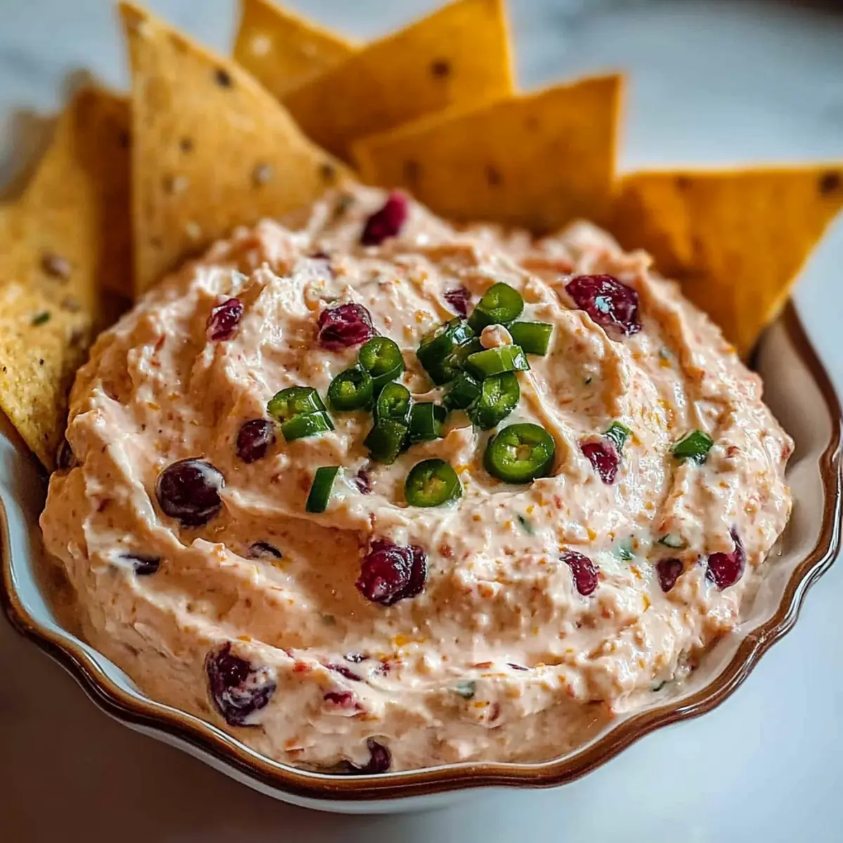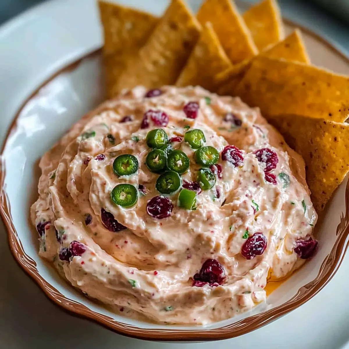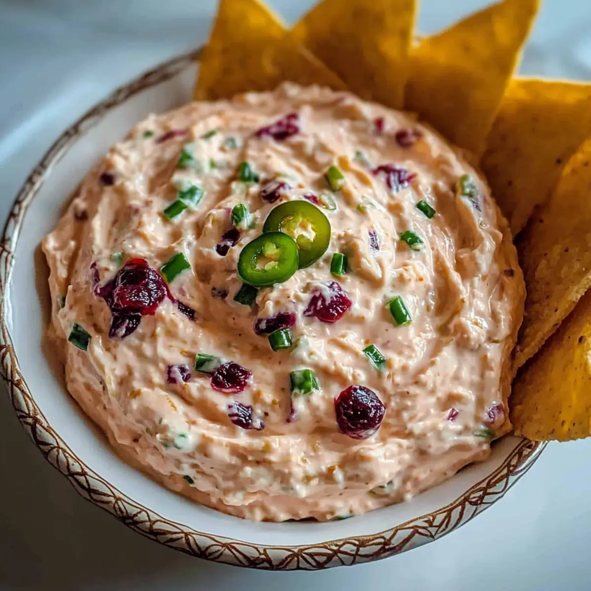 Jump to Recipe Print RecipeThe subtle hum of excitement fills the air as I unwrap the cream cheese for my latest kitchen creation. Today, I’m whipping up an irresistible Cranberry Jalapeño Cream Cheese Dip that strikes the perfect balance between sweet and spicy. With just 10 minutes of prep and zero cooking required, this dip is a foolproof addition to your gatherings. It’s vegetarian-friendly and sure to have your guests clamoring for more. The way it blends vibrant cranberry sauce with a fiery jalapeño kick is nothing short of magical. Not only is it a fantastic crowd-pleaser, but it’s also easy to whip together, making it ideal for those busy days when you want to impress without the hassle. Ready to elevate your appetizer game? Let’s dive into this deliciously simple recipe and discover together how to create a dip that will steal the show! Why is this dip a must-try? Ease of Preparation: With just 10 minutes of prep time, this dip is a breeze to make and requires no cooking! Perfect for those last-minute gatherings. Flavor Explosion: The unique blend of sweet cranberry sauce and spicy jalapeños creates a delightful taste sensation that keeps guests coming back for more. Versatile Serving Options: Serve it up with crispy baguette slices, tortilla chips, or fresh veggies—everyone will find their favorite way to enjoy it! Crowd-Worthy Appeal: This dip is not just tasty; it’s visually stunning too, with a vivid color contrast that adds beauty to any table. Perfect for Any Occasion: Whether it’s a chic party or a casual game day, this dip brings a wow factor that makes it suitable for every event. Storage-Friendly: Leftovers? No problem! Store in an airtight container and get ready for an intensified flavor experience over the next few days. Perfect for meal prep! Cranberry Jalapeño Cream Cheese Dip Ingredients • Crafting the perfect crowd-pleaser starts here! For the Dip Cream Cheese – This base creates a rich and creamy texture; low-fat options can lighten things up! Cranberry Sauce – Offers a sweet and tart flavor; for an extra twist, homemade or orange-cranberry sauce works beautifully. Jalapeños – They provide the spicy kick; start with one, and adjust according to your heat preference! Optional Garnishes Green Onions – Adds a fresh, oniony crunch; slice thinly for a beautiful presentation. Cranberries – Sprinkle on top for extra festive flair; they enhance both flavor and visual appeal! This Cranberry Jalapeño Cream Cheese Dip will surely be a hit at your next gathering! Step‑by‑Step Instructions for Cranberry Jalapeño Cream Cheese Dip Step 1: Combine the Base In a mixing bowl, take 8 ounces of softened cream cheese and add 1 cup of cranberry sauce. Using a hand mixer or a spatula, blend the ingredients until they are thoroughly combined and creamy, about 1-2 minutes. The mixture should be smooth and have a lovely light pink hue, indicating that the flavors are melding beautifully. Step 2: Prepare the Jalapeños While the cream cheese mixture is coming together, finely chop 1-2 jalapeños, depending on your desired heat level. For less spice, remove the seeds and membranes before chopping. Add the chopped jalapeños to the cream cheese blend, stirring well. The vibrant green specks will add a wonderful color contrast to your Cranberry Jalapeño Cream Cheese Dip. Step 3: Blend for Smoothness If you prefer a smoother texture for your dip, transfer the mixture into a food processor. Pulse for 15-30 seconds until the dip reaches your desired consistency. Keep an eye on it to avoid over-blending. This adds a velvety touch that enhances the overall tasting experience while still keeping the eye-catching ingredients present. Step 4: Chill for Flavor Fusion Once blended to perfection, transfer the dip to a decorative serving bowl and cover it with plastic wrap. Place it in the refrigerator for at least 30 minutes. Chilling allows the flavors of the cranberry and jalapeño to meld together, resulting in a more harmonious taste when served. Step 5: Garnish and Serve After the chilling period, remove the dip from the refrigerator. For an elegant touch, garnish with thinly sliced green onions and a sprinkle of extra cranberries on top. Serve your Cranberry Jalapeño Cream Cheese Dip with crispy baguette slices, tortilla chips, or fresh vegetable sticks for a delightful party appetizer that’s sure to impress! What to Serve with Cranberry Jalapeño Cream Cheese Dip Indulge in a delightful spread that will elevate your gathering atmosphere with vibrant colors and tantalizing flavors. Crispy Baguette Slices: These crunchy slices offer the perfect vessel for scooping up the creamy dip, adding a delightful texture contrast. Tortilla Chips: The salty crunch of tortilla chips pairs beautifully with the sweet and spicy dip, making for an addictive combination. Fresh Vegetable Sticks: Crisp celery, carrots, or bell peppers provide a refreshing and healthy option that complements the richness of the dip. Spiced Nuts: A mix of spiced roasted nuts can add a delightful crunch and a savory element, balancing the sweetness of the dip perfectly. Cheese Platter: Include assorted cheeses, such as sharp cheddar or creamy brie; their richness enhances the dip while offering varied flavor profiles. Sparkling Wine: A chilled glass of bubbly pairs well with the peppery notes of the jalapeños and elevates any occasion with a touch of sophistication. Fruit Skewers: Fresh fruit like grapes or pineapple adds a sweet brightness that beautifully contrasts with the dip’s flavors. Chocolate-Covered Pretzels: For a sweet-savory finish, these treats provide an unexpected yet delightful pairing option that will intrigue your guests. Mini Quiches: Savory quiches offer a heartier delight that complements the lightness of the dip, providing a balance in texture and flavor. How to Store and Freeze Cranberry Jalapeño Cream Cheese Dip Fridge: Store leftover dip in an airtight container for 