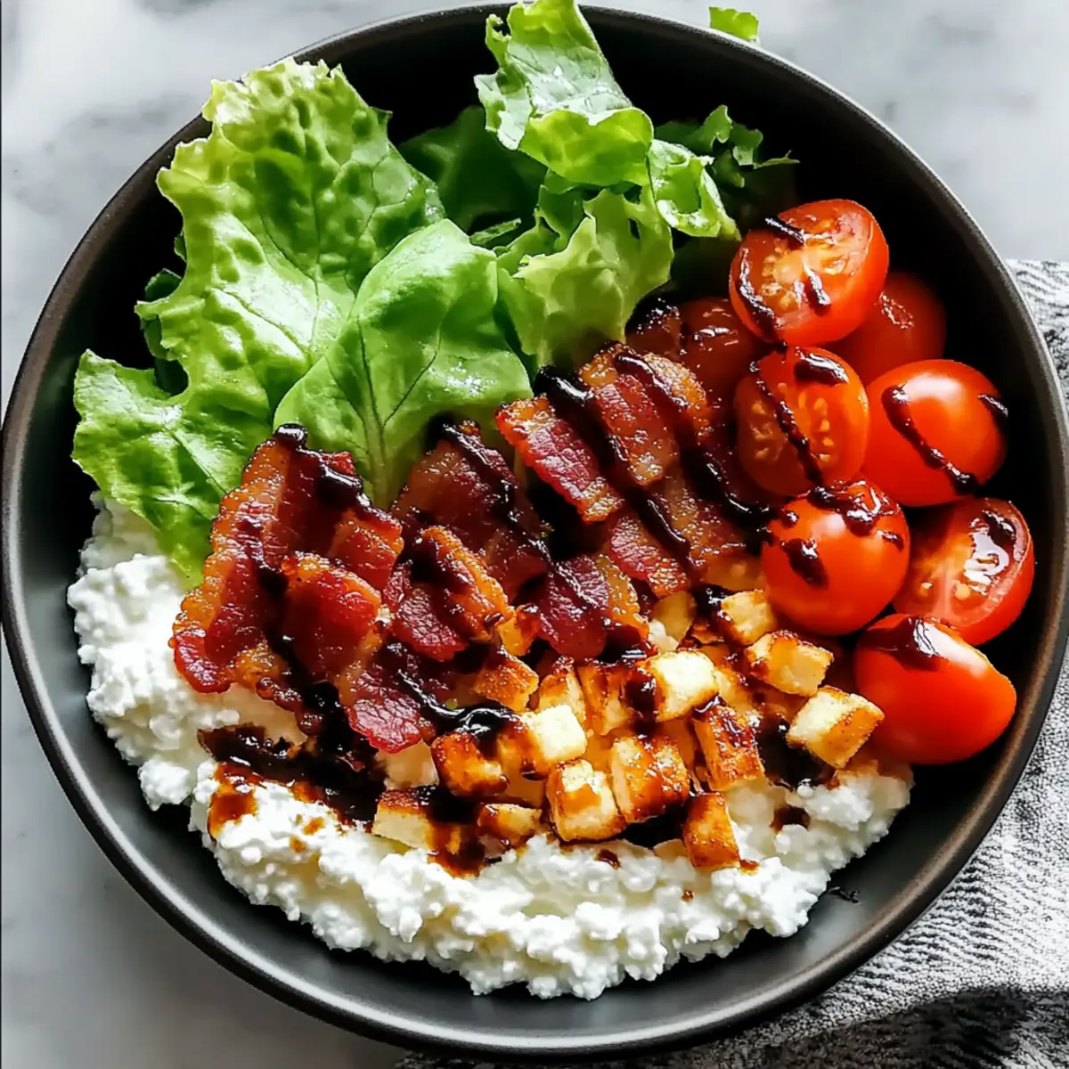 Jump to Recipe Print RecipeHave you ever craved the comforting taste of a classic BLT but wanted something lighter and easier? That’s where my Creamy BLT Cottage Cheese Bowl comes in. This high-protein, no-cook delight layers creamy cottage cheese, crispy bacon, crunchy romaine, and juicy cherry tomatoes all in one wholesome dish. Perfect for busy weeknights or a spontaneous lunch, this bowl not only satisfies your taste buds but also ensures you can whip up a nutritious meal in minutes. Plus, it’s adaptable to your preference — swap ingredients to suit your dietary needs! Ready to dive into this fresh twist on a beloved favorite that’s packed with flavor? Let’s get cooking! Why Will You Love This Bowl? Simplicity at its Best: This Creamy BLT Cottage Cheese Bowl requires no cooking, making it a perfect option for busy days or spontaneous meals. Rich, Flavorful Layers: With creamy cottage cheese, savory bacon, and fresh veggies, each bite is a delightful mix of textures and tastes. Versatile Customization: Easily tailor this dish by swapping proteins or greens to match your cravings or dietary preferences; try it with smoked tempeh or arugula for a twist! Protein-Packed Goodness: Loaded with high-quality protein, this bowl keeps you full and satisfied. Quick Assembly: Just throw everything together and enjoy — it’s ready in minutes! Perfect for last-minute lunches or easy dinners. For similar quick meals, check out this Hot Italian Cheese or indulge in a Grilled Cheese Burrito. Elevate your meal prep game with deliciousness that saves time and pleases the whole family! Creamy BLT Cottage Cheese Bowl Ingredients Discover the key flavors that make this dish shine! For the Base Cottage Cheese – A creamy and high-protein base; substitute with Greek yogurt or ricotta for a different flavor. For the Toppings Bacon Crumbles – Adds a savory crunch to each bite; feel free to swap with turkey bacon, prosciutto, or even chickpeas for a vegetarian option. Romaine Lettuce – Provides freshness and crunch; replace with arugula or spinach for a peppery twist. Cherry Tomatoes – Bring brightness and sweetness; try heirloom or sun-dried tomatoes for a unique taste. For the Drizzle Balsamic Glaze – Finishes the bowl with sweetness and acidity; olive oil with lemon juice or honey mustard can work well too. Step‑by‑Step Instructions for Creamy BLT Cottage Cheese Bowl Step 1: Cook the Bacon Begin by heating a skillet over medium-high heat and cooking your bacon until crispy, roughly 6–8 minutes. Turn frequently until it reaches a deep golden color. Once done, transfer the bacon to a plate lined with paper towels to absorb excess grease, then crumble it into bite-sized pieces. Step 2: Prepare the Base In a large, inviting bowl, scoop out the cottage cheese to establish a creamy base for your Creamy BLT Cottage Cheese Bowl. Aim for about 1 to 1.5 cups of cottage cheese; this will give you a delightful, rich foundation. Use a spoon or spatula to smooth it out evenly across the bottom of the bowl. Step 3: Add the Toppings Now it’s time to layer on the flavor! Generously sprinkle your crumbled bacon over the cottage cheese, followed by a handful of chopped romaine lettuce. Add around 1 cup of lettuce for that crispy crunch. Finish with halved cherry tomatoes, ensuring they’re spread evenly for added color and sweetness. Step 4: Drizzle with Balsamic Glaze Elevate your creation by drizzling balsamic glaze over the assembled ingredients. Use about 1-2 tablespoons, allowing it to cascade over the toppings. This step brings a nice acidity to balance the richness of the cottage cheese and the saltiness of the bacon. Step 5: Add Finishing Touches For an extra sprinkle of flavor, consider adding freshly cracked black pepper over the top. This finishing touch enhances the overall taste and aroma. If you like a bit of heat or zing, feel free to add a dash of cayenne pepper or a squeeze of lemon. Step 6: Serve Immediately Your Creamy BLT Cottage Cheese Bowl is now ready to be enjoyed! Serve it fresh alongside whole grain crackers or toasted bread for a fulfilling meal. This no-cook delight is perfect for a nutritious lunch or light dinner, combining the classic BLT components in a fresh, easy-to-eat format. Expert Tips for Creamy BLT Cottage Cheese Bowl Crispier Bacon: Cook bacon until deep golden and drain excess fat on paper towels for maximum crunch and flavor. Freshness Matters: Assemble your Creamy BLT Cottage Cheese Bowl just before serving to keep the lettuce crisp and the dish vibrant. Prep Ahead: Store components separately in airtight containers to maintain freshness, allowing for easy assembly up to 24 hours later. Dairy Alternatives: If you prefer a tangier flavor, swap cottage cheese for Greek yogurt to add a delightful twist to your bowl. Mind the Drizzle: Use balsamic glaze sparingly; start with 1 tablespoon and add more to taste if desired to avoid overwhelming the other flavors. Creamy BLT Cottage Cheese Bowl Variations Feel free to let your creativity shine as you customize this delicious bowl to suit your tastes and dietary needs! Protein Alternatives: Swap bacon for turkey bacon, smoked salmon, or chickpeas for a vegetarian twist. Each option adds a unique flavor, allowing you to explore new tastes. Dairy Options: Replace cottage cheese with Greek yogurt for extra tanginess; creamy avocado can be a wonderful addition for richness! You may even blend it in for a smoother texture. Greens: Opt for arugula, spinach, or even kale instead of romaine for a peppery flavor or added nutrients. Each green brings its own personality to the dish! Additional Crunch: Add diced cucumbers, sliced radishes, or even crushed whole-grain crackers on top for extra texture. The crunch will make every bite a delightful experience. Flavor Boost: Mix in some diced pickles or jalapeños if you’re craving a tangy or spicy kick! This adds an exciting burst of flavor that will excite your taste buds.