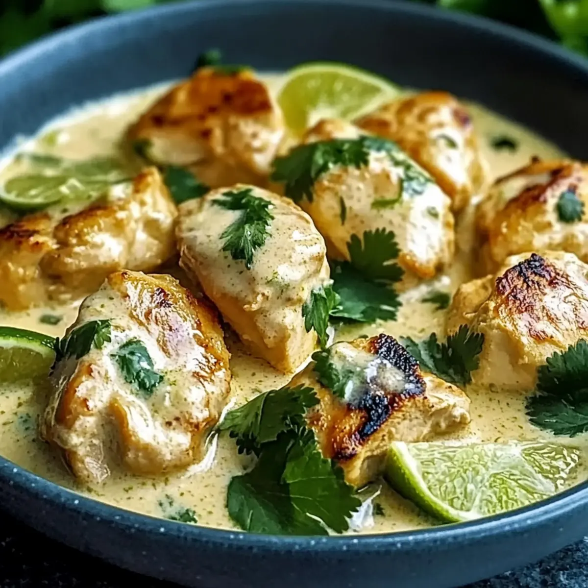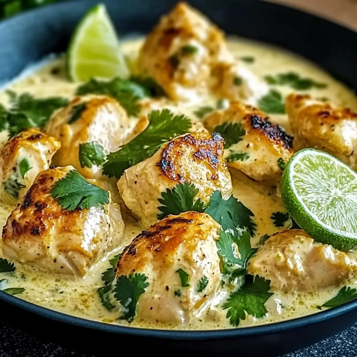 Jump to Recipe Print RecipeAs I stirred the pot, the kitchen filled with a scent that whisked me away to a sun-soaked tropical beach. This Creamy Coconut Lime Chicken combines the warmth of coconut milk with the zesty brightness of lime, creating a luscious, flavorful dish that’s impossible to resist. Perfect for those busy weeknights, this easy one-pot meal not only tantalizes your taste buds but also cuts down on cleanup time—who wouldn’t love that? The creamy sauce envelops tender chicken, turning a simple dinner into a delightful escape. Interested in making your weeknight dinners a little more exciting? Let’s dive into this recipe that’s sure to become a family favorite! Why is this dish a must-try? Simplicity: With just a few ingredients, this Creamy Coconut Lime Chicken comes together effortlessly in one pot, making it ideal for busy weeknights. Luscious Texture: The creamy coconut milk mingles perfectly with zesty lime, enveloping tender chicken for a dish that excites the palate and comforts the soul. Versatile Options: Feel free to swap chicken for shrimp or tofu, or add colorful veggies like bell peppers for extra nutrition! Crowd-Pleasing Flavor: This dish is guaranteed to impress guests and family alike, providing an unforgettable, tropical experience right at home. Quick Cleanup: Simplify your dinner routine—less time cleaning up means more time enjoying the flavors! Creamy Coconut Lime Chicken Ingredients For the Chicken • Boneless, skinless chicken breasts – A protein-packed base; thighs can be swapped for even richer flavor. For the Sauce • Coconut milk (13.5 oz can) – Creates a velvety texture; opt for lite coconut milk if you’re watching calories. • Lime juice (1/4 cup, about 2 limes) – Adds essential tang; fresh limes enhance that tropical flair. • Lime zest – Infuses aromatic citrus notes; you can use bottled lime juice in a pinch, but fresh is best. Aromatics • Olive oil – Great for sautéing; consider coconut oil for a more tropical depth. • Onion, diced – Brings sweetness; shallots can offer a milder taste. • Garlic, minced – Elevates overall flavor profile; fresh garlic truly makes a difference. Spices • Ground ginger – Contributes warmth and complexity; fresh ginger packs a more potent punch. • Ground cumin – A must for earthy undertones; swap with coriander for a twist. • Paprika – Delivers subtle heat and vibrant color; smoked paprika can amplify the dish’s flavor. • Salt and black pepper – Essential for seasoning; adjust to taste. Finishing Touches • Fresh cilantro – Adds a burst of freshness; feel free to omit if cilantro isn’t your thing. • Lime wedges – Perfect for serving; these will brighten each bite and enhance the dish’s cheerful essence. This Creamy Coconut Lime Chicken is just a few steps away from becoming your newest weeknight favorite! Step‑by‑Step Instructions for Creamy Coconut Lime Chicken Step 1: Prepare Chicken Begin by cutting the boneless, skinless chicken breasts into bite-sized pieces. Season the chicken generously with salt and black pepper to enhance its flavor. This will ensure that your Creamy Coconut Lime Chicken is well-seasoned from the inside out, creating a deliciously tender and flavorful base for your dish. Step 2: Sauté Onion and Garlic Heat a tablespoon of olive oil in a large skillet over medium heat. Once the oil is shimmering, add the diced onion and sauté for about 3-4 minutes until it turns translucent and tender. Stir in the minced garlic and cook for an additional 30 seconds until fragrant, infusing the oil with delicious aromas that will form the backbone of your sauce. Step 3: Brown Chicken Increase the heat to medium-high and add the seasoned chicken pieces to the skillet. Cook for 5-7 minutes, stirring occasionally, until the chicken is lightly browned on all sides. This step is crucial for developing a savory crust that will add depth of flavor to your Creamy Coconut Lime Chicken as it cooks further. Step 4: Add Spices Sprinkle in the ground ginger, ground cumin, and paprika over the chicken and onion mixture. Stir well to ensure an even coating of spices, allowing the chicken to absorb those warm and subtle flavors. Cook the mixture for about 1-2 minutes until the spices are fragrant, heightening the aroma of your dish. Step 5: Incorporate Coconut Milk Pour in the creamy coconut milk, followed by the fresh lime juice and lime zest. Stir everything together until the chicken and spices are completely combined with the coconut milk. The mixture should start to simmer gently; this rich sauce is what makes your Creamy Coconut Lime Chicken irresistibly luscious. Step 6: Simmer Reduce the heat to medium-low, cover the skillet, and let the mixture simmer for 15 minutes. This gentle cooking allows the chicken to become tender and soak in the flavors of the coconut and lime. Stir occasionally to prevent sticking and ensure even cooking, watching as the sauce begins to thicken beautifully. Step 7: Taste and Adjust After simmering, taste the sauce to check for seasoning. Add more salt, pepper, or extra lime juice if necessary to achieve your preferred flavor balance. This final step ensures that your Creamy Coconut Lime Chicken is perfectly seasoned, inviting everyone to enjoy a delightful burst of tropical taste. Step 8: Garnish and Serve Once the chicken is tender and the sauce is rich and inviting, remove the skillet from heat. Garnish your dish with fresh cilantro for a splash of color and added freshness, and serve with lime wedges on the side. This presentation will elevate your Creamy Coconut Lime Chicken, making every bite a cheerful, flavor-packed experience. What to Serve with Creamy Coconut Lime Chicken Elevate your tropical dining experience with these delightful pairings that complement the rich flavors of this one-pot wonder. Jasmine Rice: The light, fluffy texture of jasmine rice soaks up the creamy sauce beautifully, adding a subt