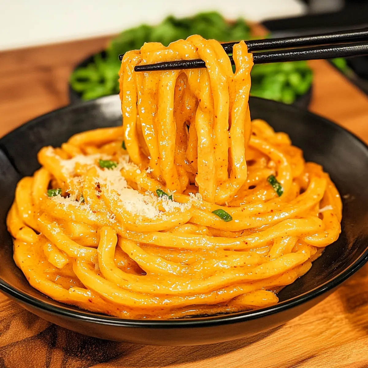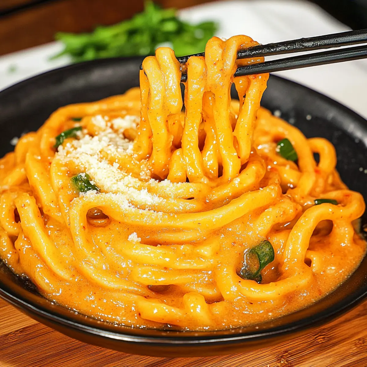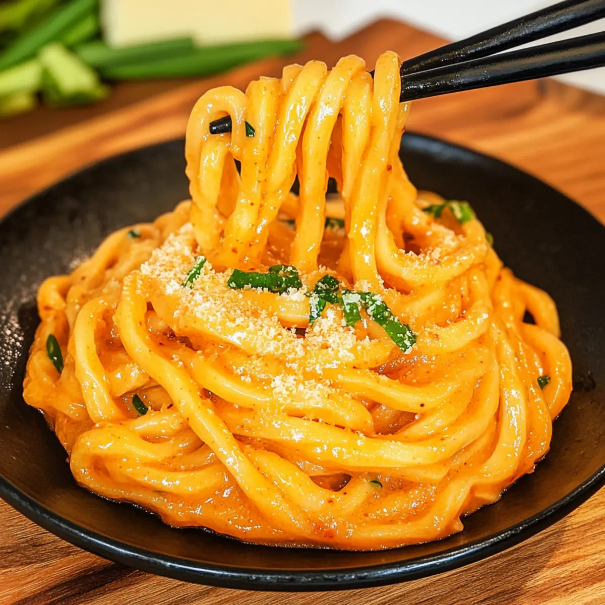 Jump to Recipe Print RecipeAs I rummaged through my pantry last week, the vibrant crimson hue of gochujang caught my eye, sparking a craving for something both spicy and comforting. This led me to whip up a delightful batch of Creamy Gochujang Udon Noodles—my new weeknight hero! In just 20 minutes, you can indulge in chewy udon noodles enveloped in a rich, garlicky sauce that dances on your taste buds. With its enticing blend of Korean-inspired flavors, this dish is a fantastic way to escape the mundane fast-food routine while satisfying your cravings for comfort. Plus, it’s versatile enough to adapt; add your favorite veggies or protein for a heartier meal. Are you ready to turn your kitchen into a spicy sanctuary? Let’s dive into this irresistible recipe! Why are these noodles so addictive? Bold, Spicy Flavors: Each bite of creamy gochujang udon noodles is bursting with incredible flavor, thanks to the rich gochujang sauce that adds a unique kick. Quick & Easy: In just 20 minutes, you can whip this up for a speedy weeknight dinner, making it perfect for those busy evenings. Versatile Options: Feel free to customize by adding your favorite veggies, like bell peppers or spinach, or protein such as chicken or tofu for a heartier meal. Comforting Texture: The thick, creamy sauce clings to the chewy udon noodles, creating a comforting dish that feels like a warm hug. Crowd-Pleaser: Whether you’re serving family or entertaining friends, everyone will love this spicy delight. Don’t forget to check out our Homemade Butter Chicken for another fantastic crowd-pleaser! Creamy Gochujang Udon Noodles Ingredients For the Noodles • Udon Noodles – Use frozen udon for convenience and a wonderful chewy texture. For the Sauce • Butter – Adds richness; for a lighter option, substitute with olive oil. • Minced Garlic – Fresh garlic introduces a punchy aroma and flavor. • Chopped Shallots – Provides a hint of sweetness; onions can be used as an alternative. • Gochujang – The star of the dish, adding heat and umami; try a mix of chili paste and vinegar for a milder version. • Heavy Cream – Creates a creamy texture; you can use coconut cream for a dairy-free alternative. • Soy Sauce – Enhances the umami flavor; tamari is a great gluten-free alternative. • Gochugaru – Adds to the spice level; adjust to your heat preference. For the Finish • Grated Parmesan Cheese – Adds a savory finish; use nutritional yeast for a vegan option. • Chopped Green Onion – Fresh garnish that adds mild onion flavor. • Egg Yolk – Richness for the final presentation; omit for a vegan version. Step‑by‑Step Instructions for Creamy Gochujang Udon Noodles Step 1: Cook Noodles Begin by bringing a large pot of salted water to a boil over high heat. Once boiling, add the frozen udon noodles and cook according to the package instructions, usually about 5–7 minutes, until they are tender yet still chewy. Remember to reserve ½ cup of the noodle water before draining and rinsing the noodles under cold water to stop the cooking process. Step 2: Sauté Aromatics In a large skillet, melt 2 tablespoons of butter over medium heat. Once melted, add 3 minced garlic cloves and 1 chopped shallot to the skillet. Sauté for about 3 minutes, stirring frequently, until the garlic is fragrant and slightly golden. This step will infuse your creamy gochujang udon noodles with delicious flavors. Step 3: Make Sauce Stir in 3 tablespoons of gochujang into the aromatic mixture and cook for about 30 seconds, allowing the paste to release its robust flavors. Next, pour in ½ cup of heavy cream and the reserved noodle water, stirring well to combine. Add 2 tablespoons of soy sauce and 1 teaspoon of gochugaru, letting the sauce simmer for 2-3 minutes until it thickens and becomes luscious. Step 4: Combine Once your sauce has thickened, gently add the cooked udon noodles into the skillet. Toss the noodles in the sauce for about 1-2 minutes, ensuring they are evenly coated and warmed through. The creamy gochujang sauce should beautifully envelop the noodles, creating a rich and flavorful dish. Step 5: Serve Transfer the creamy gochujang udon noodles to bowls and finish with a generous sprinkle of grated Parmesan cheese and chopped green onions for a fresh touch. If you like, add a vibrant and rich egg yolk on top for extra creaminess. Enjoy this comforting dish hot, and savor the spicy explosion of flavors! Creamy Gochujang Udon Noodles Variations Feel free to get creative with your creamy gochujang udon noodles and make them your own! Vegetable Boost: Add colorful veggies like snap peas, bell peppers, or mushrooms. They not only bring nutrition but also a delightful crunch to every bite. Protein Power: Stir in cooked chicken, shrimp, or tofu for a heartier dish. This is a great way to make your meal more filling and satisfying. Noodle Swap: Try using rice noodles or whole wheat noodles for a different texture and taste. Adjust cooking times as needed for your noodle choice! Creamy Vegan Option: Substitute heavy cream with coconut cream and skip the egg yolk for a dairy-free delight that doesn’t skimp on creaminess. Flavorful Heat: Incorporate additional spices like ginger and sesame oil for a more complex flavor profile. This adds layers of warmth and depth. Nutty Finish: Top with crushed peanuts or sesame seeds. This adds a delightful crunchy texture and enhances the visual appeal of your dish. Spicy Kick: If you love heat, toss in sliced fresh jalapeños or a dash of your favorite hot sauce to really amp up the spice level. For more delicious ideas, don’t forget to check out our delightful Chicken Zucchini Noodles that are equally quick and full of flavor! Or explore the magic of our Drunken Noodles Savor for more fusion goodness. What to Serve with Creamy Gochujang Udon Noodles Elevate your dining experience with delightful pairings that complement the rich flavors of this creamy dish. Kimchi: A Korean 