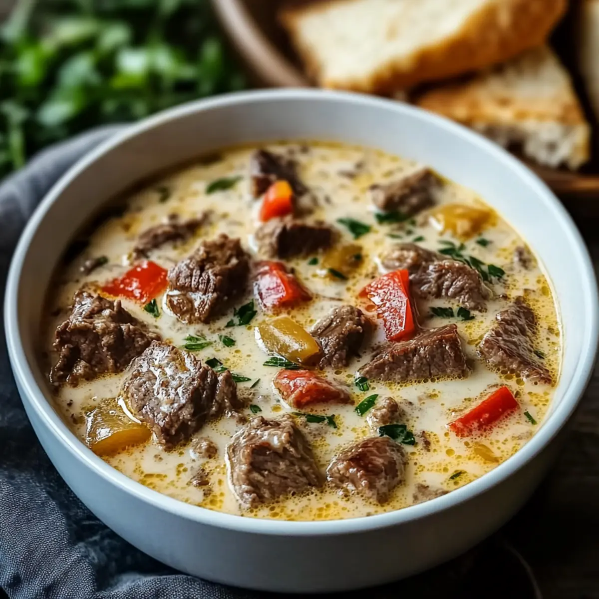 Cozy Up with Creamy Philly Cheese Steak Soup Tonight