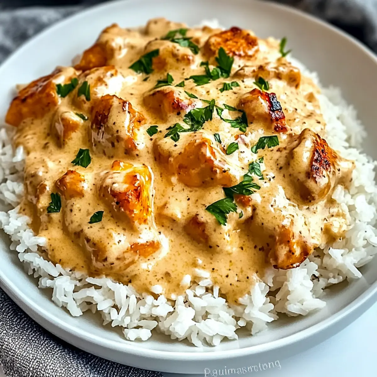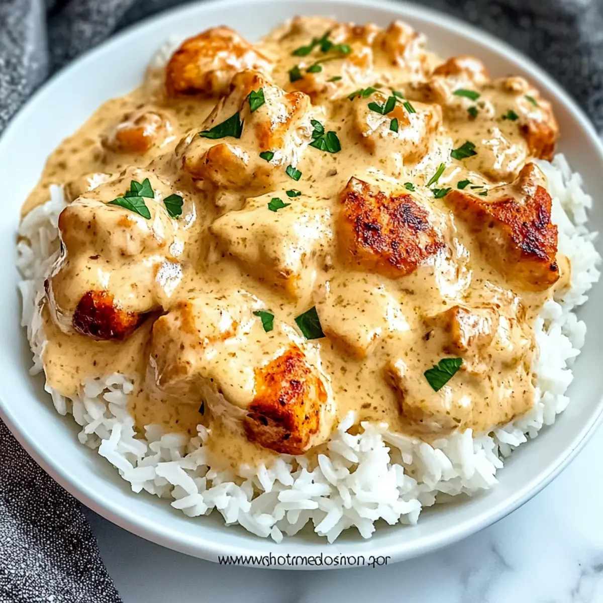 Jump to Recipe Print RecipeAs I stood in my kitchen, the rich aroma of chicken simmering filled the air, drawing my family in like moths to a warm flame. Nothing spells comfort quite like Creamy Smothered Chicken and Rice. This easy recipe combines tender chicken, coated in a luscious, cheesy sauce, served atop fluffy rice—perfect for turning any dinner into a cozy family gathering. The allure of a one-pan meal means less cleanup and more time spent enjoying hearty conversations around the table. With the flexibility to sneak in vibrant veggies like spinach or bell peppers, this dish elevates both flavor and nutrition. Curious to discover how to whip up this comforting classic? Let’s dive into the recipe that’s sure to become a staple in your kitchen! Why is Creamy Smothered Chicken a must-try? Comforting Delight: Every forkful of this dish wraps you in warmth, making it the ultimate comfort food for family gatherings. One-Pan Wonder: Simplify your cooking routine and enjoy less cleanup with this easy, all-in-one meal. Flavor Boost: Customize with extra veggies like sautéed mushrooms or spinach to enhance both taste and nutrition. Easy to Make: Perfect for any skill level, you’ll impress everyone without breaking a sweat! Crowd Favorite: With its rich, creamy sauce and tender chicken, it’ll please even the pickiest eaters at your table. Versatile Dish: Whether it’s a weeknight dinner or a special occasion, this recipe is bound to steal the show. Creamy Smothered Chicken and Rice Ingredients For the Chicken Chicken Breasts – Main protein source, providing heartiness; for extra flavor, consider using bone-in chicken. Olive Oil – For searing chicken; feel free to substitute with vegetable oil for a different taste. Salt & Black Pepper – Essential for seasoning; adjust according to your preference for maximum flavor. For the Sauce Unsalted Butter – Serves as the base for a rich sauce; margarine can be used as a substitute if preferred. All-Purpose Flour – Thickens the sauce beautifully; gluten-free flour works well as a substitute. Whole Milk – Creates a creamy texture; almond or soy milk can lighten it up. Garlic Powder – Adds savory depth; fresh garlic provides an intensified flavor if you like it bolder. Onion Powder – Enhances overall taste; finely chopped fresh onion can be an alternative for a fresher kick. Smoked Paprika – Provides a delightful smoky flavor; sweet paprika can be swapped for a milder option. Thyme – Adds a lovely herbal aroma; fresh thyme is a fantastic alternative if you have it on hand. Cheddar Cheese – Brings creaminess and flavor; use sharp cheddar for a more pronounced taste. Parmesan Cheese – Enhances flavor complexity; for a dairy-free version, nutritional yeast can be used. For the Rice Long-Grain White Rice – The perfect base for this creamy dish; brown rice can add health benefits, just adjust the cooking time. Chicken Broth – Infuses flavor into the rice; consider low-sodium versions for a healthier option. For Garnish Fresh Parsley – Offers a colorful finish; chives or green onions work great as substitutes. This Creamy Smothered Chicken and Rice recipe not only nourishes the body but also warms the spirit, bringing comfort in every serving. Enjoy crafting this dish that will not only fill your family’s stomachs but also their hearts! Step‑by‑Step Instructions for Creamy Smothered Chicken and Rice Step 1: Sear the Chicken Begin by heating a large skillet over medium-high heat and adding a drizzle of olive oil. Season the chicken breasts generously with salt, black pepper, garlic powder, onion powder, and smoked paprika. Sear the chicken for about 4-5 minutes per side, until they achieve a golden brown color and are cooked through. Once done, remove the chicken from the skillet and set it aside on a plate. Step 2: Cook the Rice In a medium saucepan, pour in chicken broth and bring it to a boil over high heat. Add salt for flavor, then stir in the long-grain white rice. Once the mixture returns to a boil, reduce the heat to low, cover it, and let it simmer for 15-18 minutes. When the liquid is absorbed and the rice is fluffy, turn off the heat and set the saucepan aside, letting the rice remain covered. Step 3: Prepare the Sauce Using the same skillet, reduce the heat to medium and melt the unsalted butter. Once melted, whisk in all-purpose flour, stirring continuously for 1-2 minutes until it turns a light golden color. Gradually add whole milk and a bit of chicken broth, whisking until the mixture is smooth and free of lumps. Allow the sauce to simmer for 3-4 minutes until it thickens slightly. Step 4: Add Cheeses and Seasonings Stir in garlic powder, dried thyme, cheddar cheese, and Parmesan cheese into the creamy sauce. Continue to cook over low heat until the cheese has melted completely and the sauce becomes thick and creamy. Visually check for a velvety consistency, ensuring the cheesiness is harmonious with the sauce. Step 5: Combine Chicken and Sauce Return the seared chicken breasts to the skillet, ensuring they are well-coated in the thick sauce. Cover the skillet with a lid and let it simmer on low heat for about 10 minutes, allowing the chicken to absorb the flavors and ensuring it is tender and fully cooked. Check that the internal temperature reaches 165°F for safety. Step 6: Serve To serve the Creamy Smothered Chicken and Rice, fluff the rice and plate it generously. Top with the tender chicken coated in the creamy sauce, ensuring each serving gets a good portion of the delicious sauce. Garnish with fresh parsley for a pop of color and added flavor, and enjoy the comforting warmth of this delightful dish! Storage Tips for Creamy Smothered Chicken and Rice Fridge: Store leftovers in an airtight container for up to 3 days. Reheat gently to maintain the creamy texture without drying out. Freezer: For longer storage, freeze in portions for up to 2 months. Ensure the dish is completely cooled before