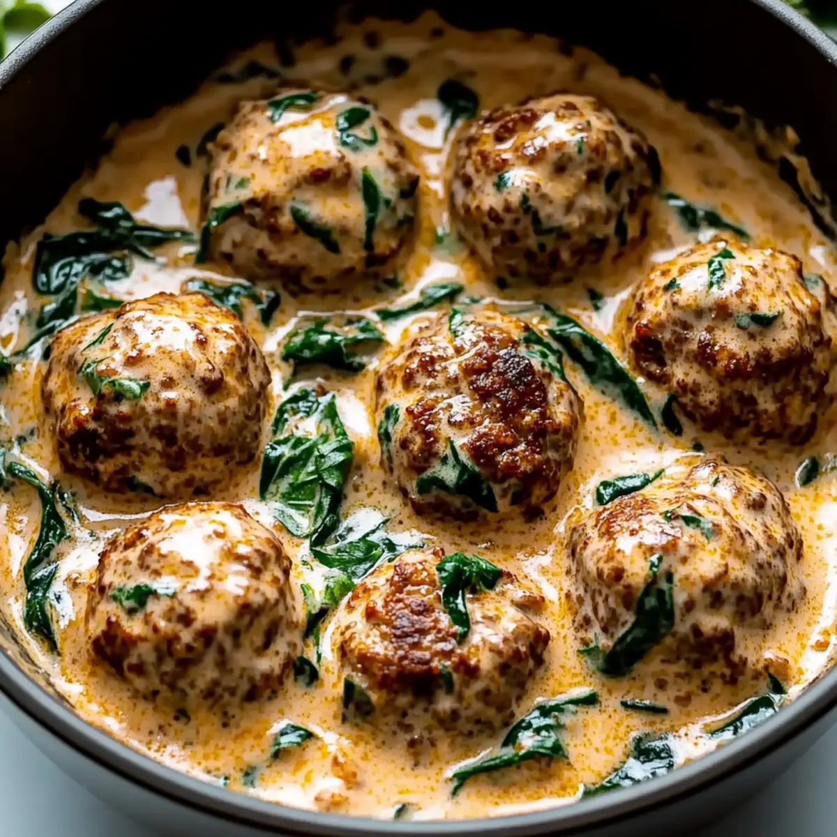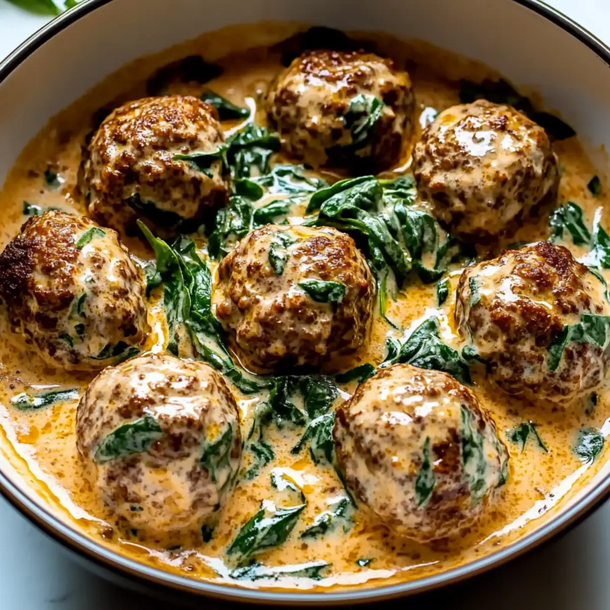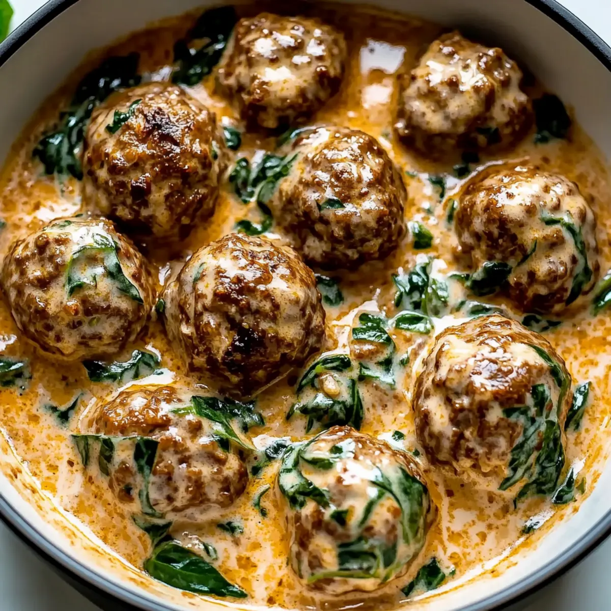 Jump to Recipe Print RecipeAs I stirred the pot, the intoxicating scent of garlic mingled with fresh herbs transported me straight to the rolling hills of Tuscany. These Creamy Tuscan Low Carb Meatballs embody the comforting essence of Italian cooking while fitting seamlessly into a low-carb lifestyle. They’re not just a delightful indulgence—these meatballs are a quick and easy meal prep solution for busy evenings, making them perfect for health-conscious home chefs. Plus, with flavorful variations and gluten-free substitutions, you can make them your own. Aren’t you curious to turn your kitchen into a slice of Tuscany today? Why Will You Adore These Meatballs? Flavorful Comfort: The blend of creamy sauce and savory meatballs offers a delectable taste that comforts like a warm hug from Italy. Easy Meal Prep: 🕒 Quick and hassle-free preparation means you’ll have dinner on the table in no time, perfect for busy weeknights! Versatile Ingredients: Tailor your meatballs with various substitutions—like swapping almond flour for coconut flour or using ground chicken for a lighter meal. Low-Carb Delight: Enjoy all the flavors of Tuscan cuisine while keeping your keto goals intact; these meatballs are a guilt-free indulgence! Crowd-Pleasing Appeal: Whether serving a family or entertaining guests, these creamy meatballs will impress and satisfy everyone at the table. For more options, check out Eggplant Meatballs Savor or consider a lighter option like Vegan Tofu Cauliflower for variety! Creamy Tuscan Low Carb Meatballs Ingredients For the Meatballs Ground Beef or Turkey – The main protein that ensures juicy texture; feel free to use ground chicken for a lighter alternative. Garlic Powder – Brings robust flavor to the mix; fresh garlic can be used for a more aromatic punch. Onion Powder – Enhances the savory profile; adjust to taste for those sensitive to strong onion flavors. Almond Flour – Keeps these meatballs low carb; coconut flour can serve as a suitable substitute. Egg – Acts as a binding agent for the ingredients; unsweetened applesauce works well for an egg-free version. Italian Seasoning – Infuses the meatballs with classic Tuscan flavors; be adventurous and mix spices for variety. For the Creamy Sauce Heavy Cream – Creates that luxurious sauce texture; half-and-half is a lighter option that still tastes great. Chicken Broth – Adds depth and richness; vegetable broth can be used for a vegetarian-friendly alternative. Parmesan Cheese – Provides a savory finish to the sauce; try nutritional yeast if you’re aiming for dairy-free. Spinach – Adds a pop of color and nutrition; swap in kale or other greens if you prefer. Fresh Basil – Brightens the dish with freshness; dried basil can be an alternative—just use one-third the amount. Step‑by‑Step Instructions for Creamy Tuscan Low Carb Meatballs Step 1: Mix the Meatball Ingredients In a large mixing bowl, combine ground beef or turkey with garlic powder, onion powder, almond flour, and egg. Stir vigorously until the mixture is homogeneous and slightly sticky. This should take about 2-3 minutes. The ground meat will soak up the flavors nicely, creating a delectable base for your Creamy Tuscan Low Carb Meatballs. Step 2: Shape the Meatballs Using your hands, scoop out portions of the mixture and roll them into golf ball-sized meatballs, ensuring they are uniform for consistent cooking. Place the shaped meatballs on a baking sheet lined with parchment paper. Aim for around 1.5 inches in diameter to allow for even cooking and browning later in the skillet. Step 3: Cook the Meatballs Heat a large skillet over medium heat and add a splash of oil. Once the oil is shimmering, carefully add the meatballs to the skillet. Sear them for about 8-10 minutes, turning occasionally, until they are nicely browned on all sides and cooked through to an internal temperature of 165°F. This will give your Creamy Tuscan Low Carb Meatballs a delicious outer crust. Step 4: Prepare the Creamy Sauce After the meatballs are cooked, reduce the skillet heat to low. Pour in heavy cream and chicken broth, stirring gently to combine with the drippings from the meatballs. Let the sauce simmer for 1-2 minutes, then stir in Parmesan cheese, spinach, and fresh basil. Cook until the spinach wilts, about 3-4 minutes, creating a rich and flavorful sauce. Step 5: Combine and Serve Gently nestle the meatballs into the creamy sauce, allowing them to simmer together for an additional 2-3 minutes. This step will infuse the flavors beautifully. Serve your Creamy Tuscan Low Carb Meatballs over cauliflower rice or your preferred base, ensuring everyone enjoys the luscious sauce with every bite. Make Ahead Options These Creamy Tuscan Low Carb Meatballs are a fantastic option for meal prep, allowing you to enjoy flavorful meals even during your busiest days. You can mix the meatball ingredients and shape them up to 24 hours in advance; just cover and refrigerate them tightly to maintain quality. Additionally, the cooked meatballs can be stored in the refrigerator for up to 3 days. To reheat, gently warm the meatballs in the creamy sauce on low heat, ensuring they regain their juicy texture. This make-ahead method not only saves you time but also guarantees that your meal tastes just as delicious as when freshly made! What to Serve with Creamy Tuscan Low Carb Meatballs Indulge in a flavorful feast by pairing your meatballs with delightful sides that complement the rich Tuscan flavors. Zucchini Noodles: Light and refreshing, these noodles provide a perfect, low-carb alternative to pasta and soak up the creamy sauce beautifully. Cauliflower Rice: A classic pairing, this fluffy rice absorbs the luscious sauce while adding a satisfying texture without the carbs. Garlic Roasted Asparagus: The tender, slightly crispy spears contrast beautifully with the creaminess of the meatballs, offering brightness in each bite. Caprese Salad: Juicy tomatoes, fresh mozzar