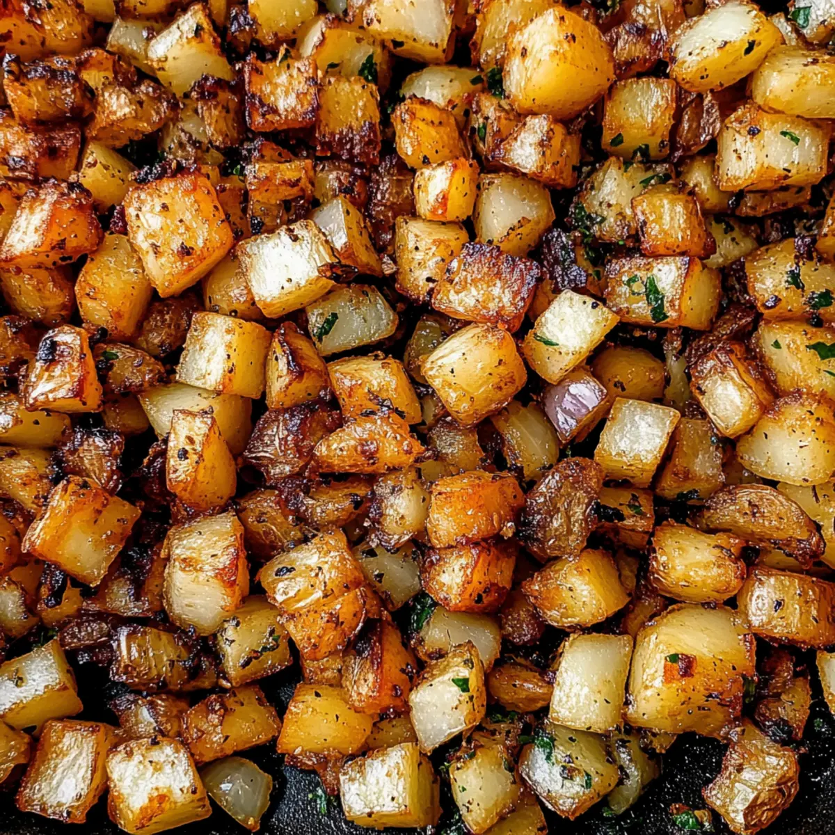 Jump to Recipe Print RecipeIn the comfort of my kitchen, there’s an unmistakable aroma that fills the air—it’s the scent of crispy home fries sizzling away, reminiscent of my favorite diner breakfasts. This ultimate crispy home fries recipe takes the familiar and elevates it, featuring fluffy centers and golden-brown edges that shatter with every bite. The secret? A pinch of baking soda that amps up the crunch factor, making this dish not just a speedy breakfast option, but a versatile side for any meal. Plus, with just a handful of ingredients, these home fries are a perfect canvas for personal twists—think sautéed onions and a hint of garlic for extra flavor! Are you ready to transform your mornings with these delightful crispy bites? Why Are These Crispy Home Fries Unforgettable? Irresistible Crunch: The unique baking soda technique makes these fries remarkably crispy while keeping the insides fluffy! Quick & Easy: With minimal prep and cooking time, you can serve up a delicious breakfast without hassle. Versatile Base: Enjoy them as a classic breakfast side or dress them up with flavors like herbs or even sautéed bell peppers to match your craving. Crowd-Pleaser: Perfect for family breakfasts or brunch gatherings, they’re sure to satisfy both kids and adults alike. For an easy, sweet treat afterward, try my Chocolate Oat Cookies. Homey Flavor: These home fries evoke nostalgic diner vibes, making you feel cozy and satisfied at any meal! Crispy Home Fries Ingredients For the Home Fries • Russet Potatoes – Provide structure and a fluffy texture; substitute with Yukon Gold for a creamier bite. • Baking Soda – Aids in browning the potatoes; can be omitted if using leftover baked potatoes. • Vegetable Oil – Used for frying to achieve crispiness; substitute with canola or olive oil based on preference. • Unsalted Butter – Adds richness and flavor; substitute with vegan butter for a dairy-free version. • White Onion – Adds sweetness and depth to the flavor; substitute with yellow onion or shallots if preferred. • Garlic – Adds aromatic flavor; omit if sensitive or substitute with garlic powder. • Seasoned Salt – For flavor enhancement; use regular salt and add your own herbs or spices for customization. • Ground Black Pepper – Provides a slight heat; adjust to taste or substitute with white pepper for a milder flavor. For Serving (Optional) • Fresh Herbs – Chopped parsley or chives add a burst of freshness to the dish. • Hot Sauce – Drizzle over the top for a spicy kick that pairs beautifully with crispy home fries! This collection of ingredients will help you create the perfect crispy home fries, elevating your breakfast experience! Step‑by‑Step Instructions for Crispy Home Fries Step 1: Prep the Potatoes Begin by scrubbing the russet potatoes under cold running water. Once clean, peel them if desired, and cut them into half-inch cubes for even cooking. This uniform size helps achieve that perfect crispy texture in your crispy home fries. Set the chopped potatoes aside as you prepare to cook. Step 2: Parboil the Potatoes In a large pot, add the cubed potatoes and cover them thoroughly with cold water. Stir in a pinch of baking soda and bring the mixture to a boil over medium-high heat. Allow the potatoes to cook for 1-2 minutes until they are fork-tender but not fully cooked. Drain them well in a colander to remove excess moisture. Step 3: Sauté the Onions and Garlic Heat 1 tablespoon of vegetable oil and ½ tablespoon of unsalted butter in a large skillet over medium heat. Add in the chopped white onion, sautéing until softened and translucent, which should take about 4-5 minutes. Incorporate the minced garlic, cooking for an additional minute until fragrant, then remove the mixture from the skillet and set aside. Step 4: Crisp the Potatoes In the same skillet, add the remaining vegetable oil and butter, swirling to coat the bottom. Once hot, carefully add the parboiled potatoes in a single layer, making sure not to overcrowd the pan for ideal crispiness. Fry the potatoes for about 8-10 minutes, turning occasionally, until they are golden-brown and crispy on all sides. Step 5: Combine and Season Once the potatoes are beautifully crisp, return the sautéed onions and garlic to the skillet. Season the mixture generously with seasoned salt and ground black pepper, tossing everything together gently to combine and heat through. Allow the mixture to cook for another 2-3 minutes, making sure those flavors mingle perfectly. Step 6: Serve Hot Once everything is well combined and heated, transfer your crispy home fries to a serving dish. Serve them hot as a delightful side to your breakfast, and consider sprinkling fresh herbs on top for an extra burst of flavor. Enjoy your homemade diner-style experience right in your kitchen! Make Ahead Options These Crispy Home Fries are perfect for meal prep, allowing you to enjoy a quick and satisfying breakfast even on the busiest of mornings! You can prep the potatoes by parboiling them up to 24 hours in advance; just drain them well and store in the refrigerator in an airtight container. The sautéed onions and garlic can also be prepared ahead of time; simply refrigerate them for up to 3 days. When you’re ready to serve, heat up some oil and butter in the skillet, add your cold potatoes, and fry until they’re golden and crispy. This way, you’ll achieve that irresistible crunch and flavor while saving precious time! What to Serve with Ultimate Crispy Home Fries Imagine savoring the crunch of perfectly golden fries alongside delightful accompaniments that elevate your breakfast experience. Fluffy Scrambled Eggs: The creamy texture of scrambled eggs complements the crispy home fries beautifully, creating a balanced bite. Fresh Garden Salad: A bright salad featuring mixed greens, cherry tomatoes, and cucumbers adds a refreshing crunch and vibrant color to your plate. Spicy Breakfast Sausage: The s