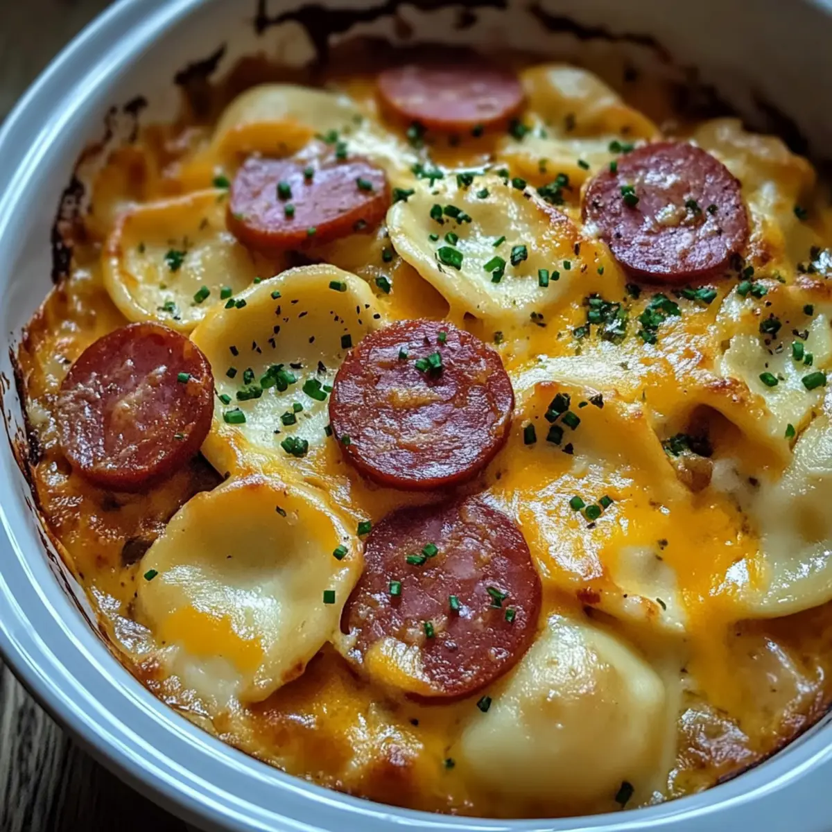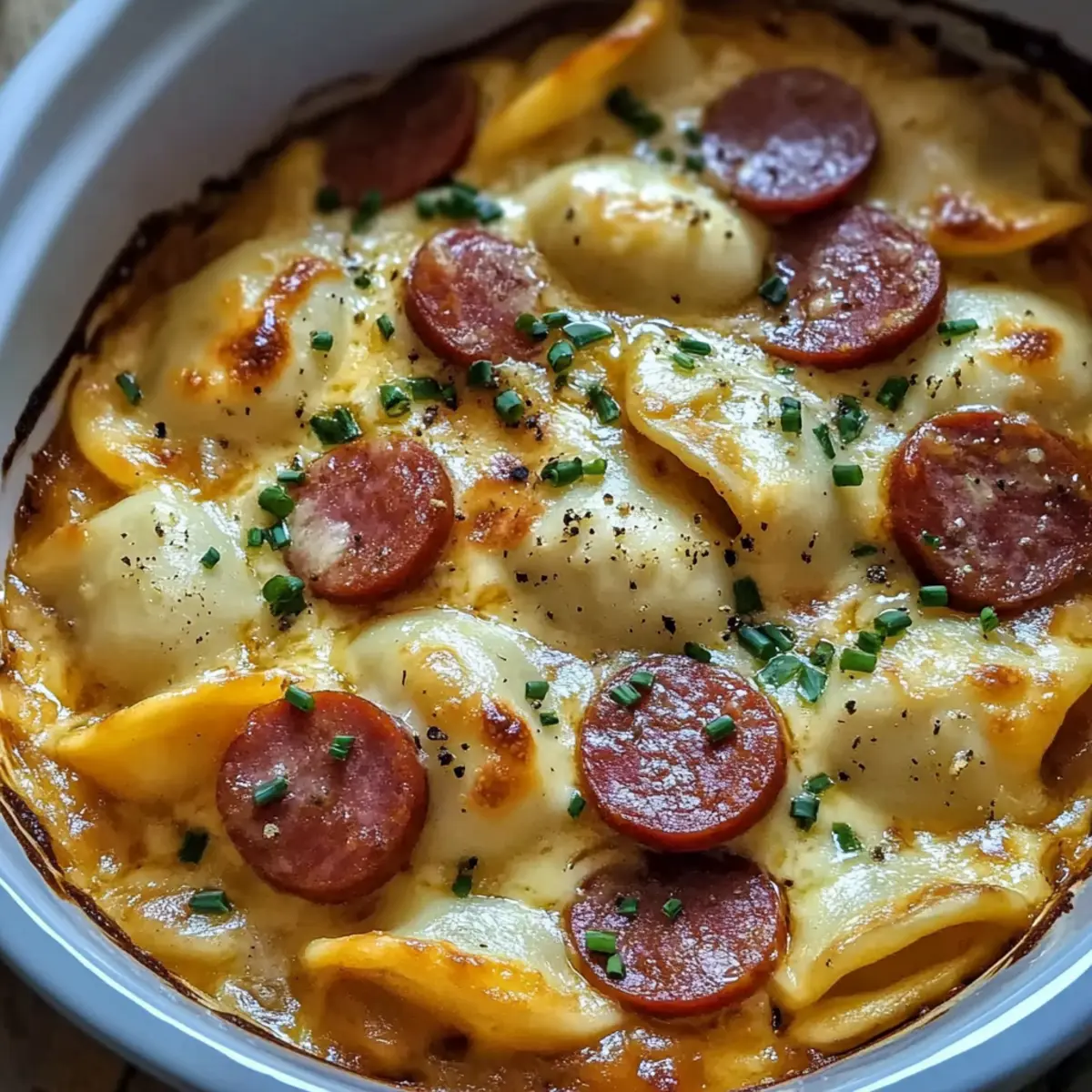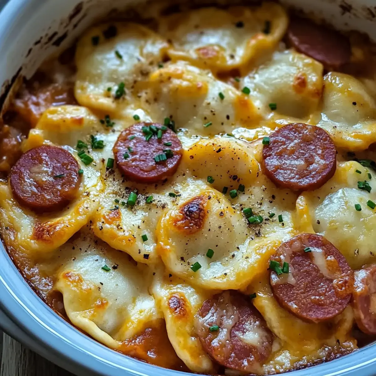 Enjoy the comforting and creamy Crockpot Pierogi Casserole with Kielbasa, a delightful dish perfect for chilly nights.