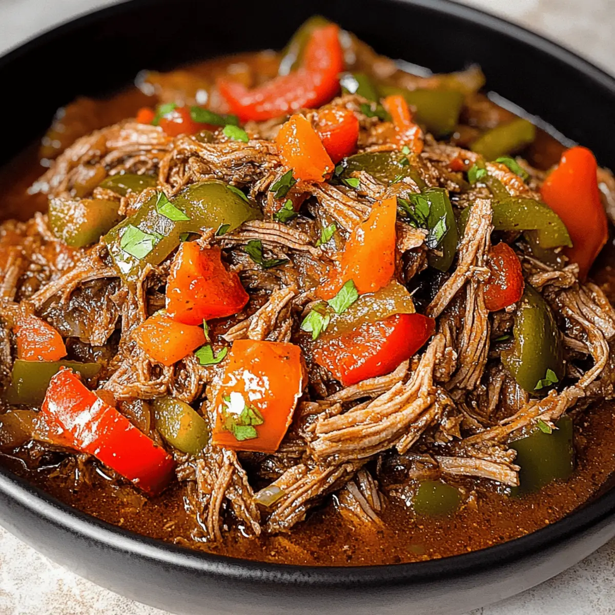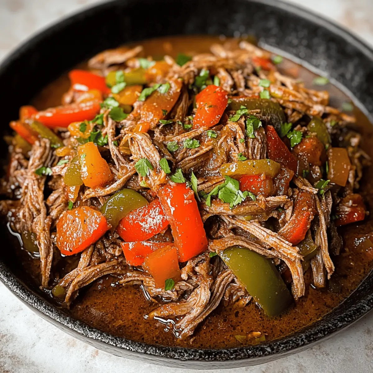 Enjoy the hearty flavors of Cuban Ropa Vieja, a scrumptious dish featuring tender, shredded beef in a rich sauce.