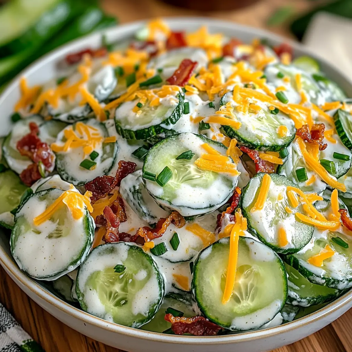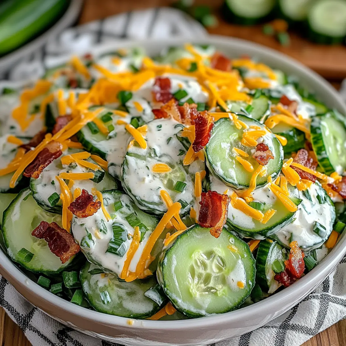 Jump to Recipe Print RecipeIt was a sweltering summer day, and all I wanted was something refreshing and light on my plate. That’s when I stumbled upon the perfect hero for my cravings: Cucumber Ranch Crack Salad. This no-cook delight combines the crispness of fresh cucumbers with a rich ranch dressing, creamy cheese, and just a hint of smoky bacon. Not only is it a breeze to whip up, making it ideal for those rushed weeknights or surprise potlucks, but it’s also a delightful crowd-pleaser that adds a burst of flavor to any meal. Whether you’re looking for a quick meal upgrade or a fun twist on your usual sides, this salad has you covered. Ready to dive into a dish that’s both easy and irresistibly crunchy? Let’s get started! Why Is Cucumber Ranch Crack Salad So Good? Simplicity: This no-cook recipe is perfect for busy weeknights or spontaneous gatherings, making it an effortless addition to your meal rotation. Flavor Explosion: The combination of creamy ranch dressing, sharp cheese, and smoky bacon creates a savory profile that will leave you craving more. Crunchy Texture: Fresh cucumbers provide a refreshing crunch that expertly balances the creamy ingredients, making each bite satisfying. Customizable Options: Feel free to switch up the dressing or cheese to suit your taste, or even add colorful veggies like bell peppers for extra flair! You can also explore variations like the Chickpea Salad Grilled if you’re in the mood for something new. Crowd-Pleaser: Whether at picnics, barbecues, or potlucks, this salad is loved by all, making it a guaranteed hit at any gathering. Don’t forget how well it pairs with grilled meats and sandwiches! Cucumber Ranch Crack Salad Ingredients For the Salad Fresh Cucumbers – Provides crunch and hydration; slice evenly for a uniform texture. Ranch Dressing – Acts as the creamy base; a thicker dressing coats the cucumbers better for the Cucumber Ranch Crack Salad. Shredded Cheddar Cheese – Adds richness; swap for a lighter cheese if desired. Cooked Bacon – Contributes smoky flavor; use turkey bacon for a lighter version or omit for a vegetarian option. Green Onions – Introduces freshness; chives make a great substitute if needed. Black Pepper – Enhances seasoning; adjust to your taste preference. Optional Add-Ins Cherry Tomatoes – Adds a pop of color and sweetness; quarter them for easy mixing. Bell Peppers – Introduces extra crunch and flavor; choose your favorite color for visual appeal. Jalapeños – For an added kick; finely chop and start with a small amount to control heat level. Step‑by‑Step Instructions for Cucumber Ranch Crack Salad Step 1: Prepare the Cucumbers Begin by thoroughly washing your fresh cucumbers under cold water. Slice them evenly into thin rounds, about ¼ inch thick, ensuring uniform texture throughout the Cucumber Ranch Crack Salad. If your cucumbers are particularly watery, pat them dry with paper towels to remove excess moisture for a better crunch. Step 2: Gather the Ingredients In a large mixing bowl, combine the sliced cucumbers with the shredded cheddar cheese, cooked bacon pieces, and chopped green onions. Ensure each ingredient is visually distributed throughout, creating an inviting mix. Take a moment to appreciate the colors before moving on to the next step! Step 3: Add the Dressing Pour a generous amount of ranch dressing over the cucumber mixture. Aim for enough to coat all the ingredients without drowning them. Using a spatula, gently toss everything together, ensuring every cucumber slice is covered in that creamy dressing. The Cucumber Ranch Crack Salad should start to look deliciously creamy at this point. Step 4: Season and Adjust Sprinkle black pepper over the salad to enhance the flavors. Toss once more to incorporate the seasoning evenly. Taste the salad, and feel free to add a dash of salt if desired, depending on the saltiness of the bacon and ranch dressing. This final touch ensures a well-balanced flavor. Step 5: Chill Before Serving Cover the mixing bowl with plastic wrap or transfer the Cucumber Ranch Crack Salad into an airtight container. Refrigerate it for at least 30 minutes, allowing the flavors to meld together. The chill will also enhance the refreshing crunch of the cucumbers, making every bite enjoyable. Step 6: Serve and Enjoy Once chilled, give the salad a gentle stir to incorporate any settled ingredients. Transfer it to a serving dish, and feel free to garnish with extra green onions or a sprinkle of cheese on top. This delightful dish is best served cold and pairs beautifully with grilled meats or as a picnic side! How to Store and Freeze Cucumber Ranch Crack Salad Refrigerator: Store your Cucumber Ranch Crack Salad in an airtight container in the fridge for up to 2 days. For optimal freshness, consume it within 24 hours of preparation. Prevent Sogginess: If the salad sits for too long, drain any excess liquid before serving to maintain the crunchy texture of the cucumbers. Make-Ahead Tips: Prepare the salad a day in advance for gatherings, allowing the flavors to meld, but avoid adding the bacon until just before serving to keep it crispy. Freezer Not Recommended: For best quality, do not freeze this salad, as fresh cucumbers and creamy dressing do not thaw well and can alter the texture drastically. Make Ahead Options These Cucumber Ranch Crack Salad components are perfect for meal prep, allowing you to save time during busy weeknights! You can slice the cucumbers and prepare all the other ingredients up to 24 hours in advance, storing them separately in airtight containers in the fridge. This prevents the cucumbers from becoming soggy, keeping them crisp and refreshing. When ready to serve, simply combine the prepped ingredients with the ranch dressing, toss gently, and chill for at least 30 minutes before enjoying. This way, you’ll have a delicious, crowd-pleasing salad ready in no time, just as satisfying as if made fresh! Expert Tips for Cucumber R