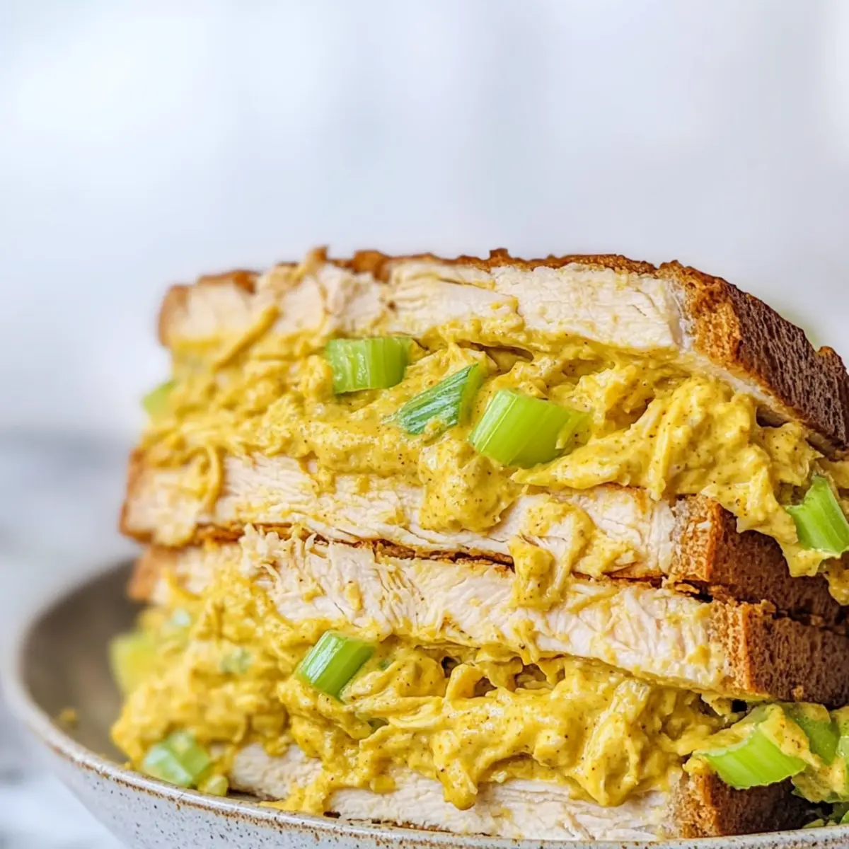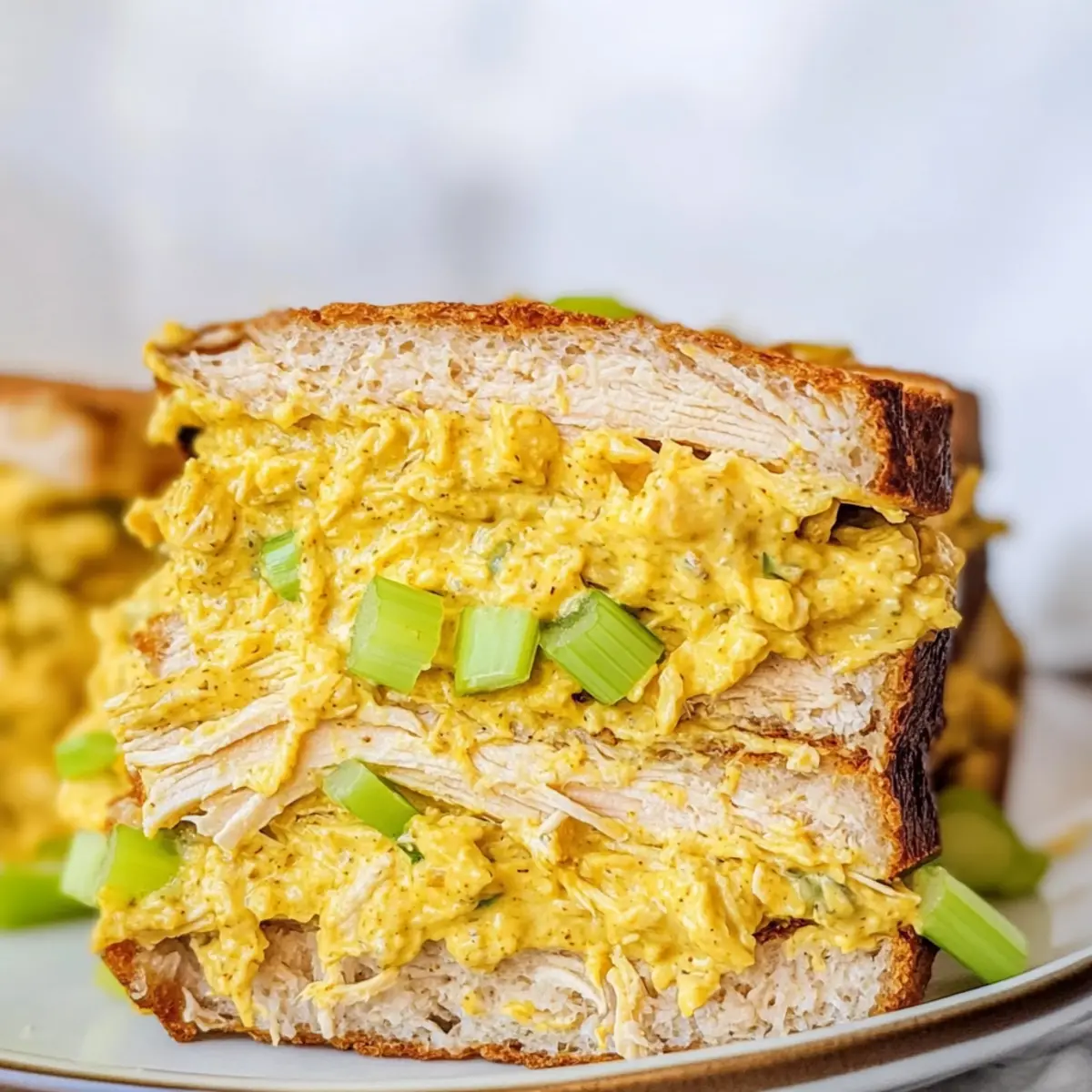 Jump to Recipe Print RecipeThe first time I tried Curried Chicken Salad, it felt like a taste explosion that transported me straight to a sun-drenched picnic. This recipe is a delightful way to transform everyday ingredients into a deliciously vibrant meal. With just ten minutes of prep, it becomes a hero for busy weekdays, effortlessly fitting into my meal prep routine. The creamy blend of mayonnaise and Greek yogurt perfectly complements the tender, pre-cooked chicken, while the spice of curry powder takes it to another level of deliciousness. Plus, it’s adaptable! Feel free to toss in your favorite nuts and fruits for an extra crunch or sweetness. Whether enjoyed in a sandwich, on a bed of greens, or with crispy crackers, this sensational Curried Chicken Salad is sure to make lunchtime something to look forward to. Ready to whip up your new favorite dish? Why is This Chicken Salad a Must-Try? Quick Meal Prep: You can have this delicious Curried Chicken Salad on your table in just 10 minutes, making it perfect for busy days. Creamy & Flavorful: The rich blend of mayonnaise and Greek yogurt creates a taste that is both creamy and bold, thanks to the curry powder. Versatile Add-Ins: Don’t hesitate to customize—add nuts for crunch or fruits like grapes for a hint of sweetness! This salad is as adaptable as your taste buds. Crowd-Pleaser: Ideal for picnics or lunches, serve it in sandwiches or with crackers, and watch it disappear. If you enjoyed this, you might also love our Thai Chicken Salad for a fresh twist! Storage Friendly: Make it ahead for easy lunches during the week; it stays fresh for days in the fridge. Curry Chicken Salad Ingredients For the Salad • Shredded Chicken – Use pre-cooked shredded chicken for an effortless protein boost. • Celery – Adds a delightful crunch; swap with cucumber for a refreshing twist. • Green Onions – Provides a fresh bite; chives are a great replacement if needed. • Mayonnaise – Adds creaminess; full mayonnaise can replace Greek yogurt if preferred. • Greek Yogurt – Balances richness and provides tang; opt for dairy-free yogurt for a vegan choice. • Curry Powder – The star of the show; adjust its quantity to suit your taste preference in this delectable Curry Chicken Salad. Optional Add-Ins • Dried Cranberries – For a touch of sweetness, consider adding these to balance the spices. • Chopped Nuts – Almonds or walnuts can enhance texture and flavor. • Diced Apples – Adds a sweet crunch; use tart apples for more contrast. • Touch of Honey – Drizzle for an extra sweet note that complements the curry well. Step‑by‑Step Instructions for Curry Chicken Salad Step 1: Prep Chicken Start by gathering your pre-cooked shredded chicken, making sure it’s fully cooled. If you don’t have pre-cooked chicken, you can quickly poach it in a pot of simmering water for about 15 minutes until cooked through and tender. Drain and shred the chicken before proceeding. This will form the base of your delicious Curry Chicken Salad. Step 2: Combine Ingredients In a large mixing bowl, add the shredded chicken, finely diced celery, and chopped green onions. Next, toss in a generous dollop of mayonnaise and Greek yogurt to create a creamy base. Finally, sprinkle in your chosen curry powder. The colors and textures will start to mimic a vibrant and inviting Curry Chicken Salad. Step 3: Mix Thoroughly Using a sturdy spatula or wooden spoon, gently fold the ingredients together until everything is evenly coated. Aim for a uniform consistency where the chicken is well-covered with the creamy mixture. This should take about 1-2 minutes. The vibrant yellow of the curry powder should blend beautifully with the chicken and other ingredients. Step 4: Taste and Adjust Once mixed, take a moment to taste your salad. Adjust the flavors by adding a pinch of salt or more curry powder to enhance that bold flavor profile. Don’t hesitate to personalize it—if you’re feeling adventurous, toss in some dried cranberries or nuts at this stage. This is your chance to make this Curry Chicken Salad truly yours! Step 5: Chill and Serve Transfer the mixture to an airtight container and let it chill in the refrigerator for at least 30 minutes. This resting time allows the flavors to meld beautifully, creating a richer and more enjoyable dish. When ready to serve, enjoy your Curry Chicken Salad in a sandwich, on a bed of greens, or with crackers for a delightful crunch. What to Serve with Curried Chicken Salad Enhance your lunch experience with delightful sides that complement the creamy and zesty profile of this refreshing dish. Crispy Lettuce Wraps: Serve the salad in crunchy lettuce leaves for a light, fresh twist that adds a fun crunch. Savory Whole Wheat Crackers: Their wholesome texture pairs beautifully with the salad’s creaminess, making every bite satisfying. Chilled Cucumber Soup: This cool and refreshing soup acts as a perfect palate cleanser, contrasting the warmth of the curry spices. Quinoa Salad: The nutty flavor and fluffy texture of quinoa bring great balance, adding heartiness without overwhelming the dish. Fresh Fruit Platter: A medley of juicy fruits like watermelon, pineapple, and grapes provides a sweet refreshment that complements the savory notes. Herbed Tea or Lemonade: Light herbal tea or a zesty lemonade enhances the flavors, offering a refreshing sip alongside your meal. Chocolate-Dipped Strawberries: For a sweet finish, enjoy these fruit bites that bring a luxurious touch to your lunch, making it memorable. Make Ahead Options These Curried Chicken Salad is a lifesaver for busy home cooks looking to streamline their meal prep! You can prepare the entire salad up to 3 days in advance, making your weeknight dinners so much easier. To do this, simply mix all ingredients together as directed, then refrigerate immediately in an airtight container. This helps the flavors develop beautifully while keeping the salad fresh. For th