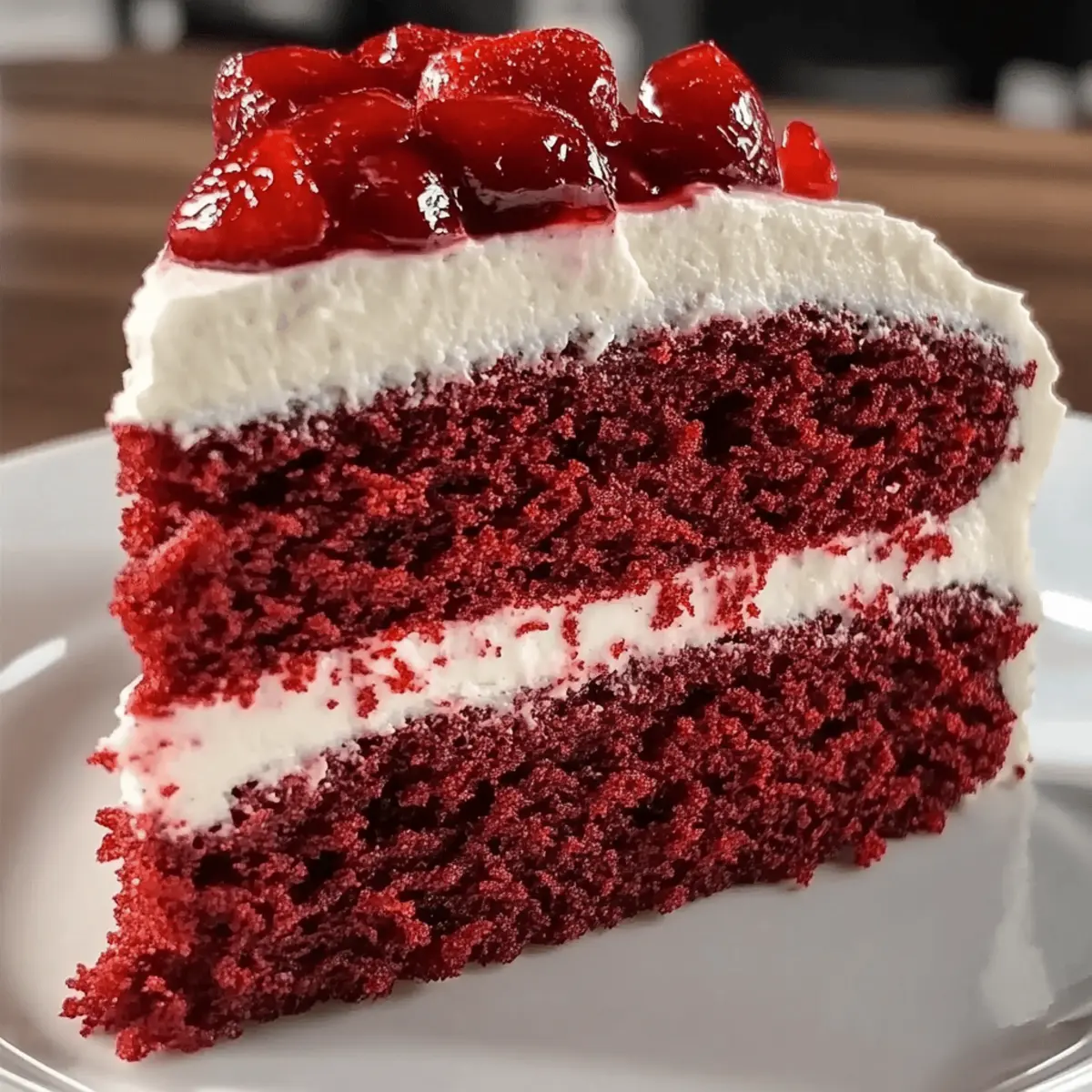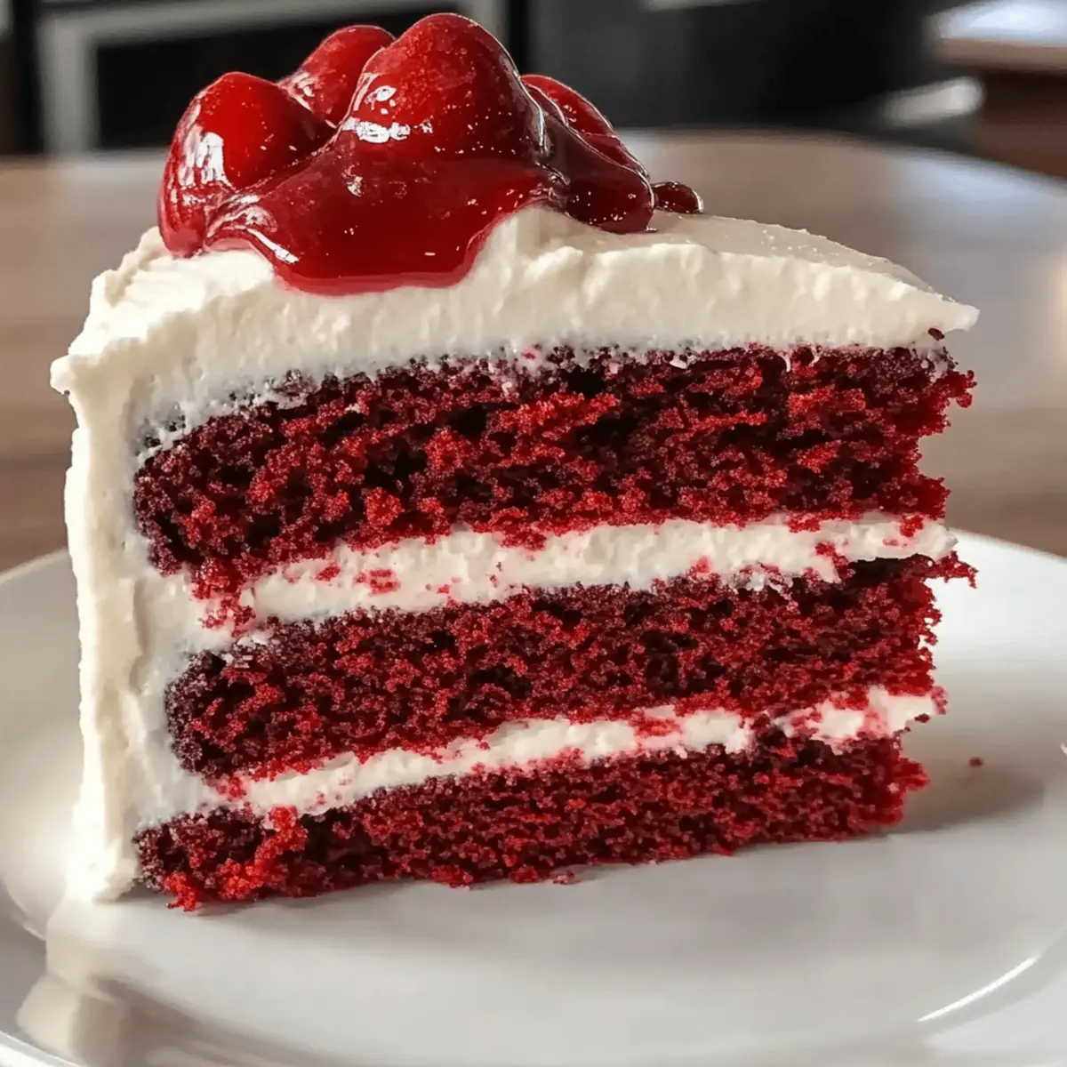 Jump to Recipe Print Recipe“Isn’t it funny how a slice of cake can turn an ordinary day into something extraordinary?” The moment I decided to bake a Decadent Red Velvet Cake with Cream Cheese Frosting, I could already envision the smiles it would bring at the gathering. This beautiful creation, with its striking crimson hue and tender, moist texture, serves as a perfect centerpiece for celebrations of all kinds. Plus, it’s surprisingly quick to make—and the tantalizing cream cheese frosting adds just the right amount of tang. Whether you’re a seasoned home chef or just stirring into the world of baking, this red velvet delight elevates any occasion from mundane to memorable. So, are you ready to impress your friends and family with this fabulous dessert? Let’s dive in! Why is Red Velvet Cake So Irresistible? Decadent, Moist Layers: This red velvet cake is not just a feast for the eyes; each slice is moist, with a tender crumb that practically melts in your mouth. Creamy Frosting Bliss: The rich cream cheese frosting provides the perfect tangy contrast, elevating each bite to sheer perfection. Quick to Make: Surprisingly easy to whip up, it comes together in just a short time, ideal for both novice bakers and seasoned pros. Crowd-Pleasing Appeal: This cake is a guaranteed hit at any gathering, sparking joy and smiles from guests of all ages. Versatility: Pair it with a cup of coffee or tea for a delightful afternoon treat, or serve it as a stunning centerpiece at celebrations. You’ll find yourself thinking about this cake long after the last slice has vanished! Decadent Red Velvet Cake Ingredients • Get ready to create a dessert masterpiece! For the Cake All-Purpose Flour – Provides structure; can substitute with gluten-free baking blend. Granulated Sugar – Adds just the right amount of sweetness. Baking Soda – Reacts with vinegar for lift and fluffiness. Fine Salt – Balances sweetness and enhances the whole flavor. Unsweetened Cocoa Powder – Contributes a subtle chocolate depth. Vegetable Oil – Keeps the cake moist; unsalted butter is a good alternative. Buttermilk – Adds tanginess and moisture; substitute with 1 cup milk + 1 tbsp vinegar or lemon juice. Eggs – Binds the ingredients together and provides structure. Red Food Coloring – Enhances the cake’s vibrant crimson color. White Distilled Vinegar – Reacts with baking soda to improve rise and flavor. Vanilla Extract – Adds aromatic flavor; using pure vanilla gives the best results. For the Frosting Cream Cheese – Creates a plush, tangy frosting texture; full-fat is best for creaminess. Unsalted Butter – Adds richness and helps create a smooth texture. Powdered Sugar – Sweetens and thickens the frosting nicely. Vanilla Extract – Enhances the frosting’s flavor for a delightful finish. Now, gather these delightful ingredients to embark on your baking adventure, creating a Decadent Red Velvet Cake that will wow your taste buds! Step‑by‑Step Instructions for Decadent Red Velvet Cake Step 1: Preheat the Oven and Prepare Pans Begin by preheating your oven to 350°F (175°C). Meanwhile, grease and line two 9-inch round cake pans with parchment paper. This step is crucial to ensure your Decadent Red Velvet Cake releases easily after baking, allowing you to showcase those beautiful layers without any hassle. Step 2: Whisk Dry Ingredients In a large mixing bowl, combine the all-purpose flour, granulated sugar, baking soda, fine salt, and unsweetened cocoa powder. Whisk these dry ingredients together thoroughly for about 1-2 minutes until well incorporated. This step ensures that the leavening agent and cocoa are evenly distributed, setting the foundation for a light and fluffy cake. Step 3: Mix Wet Ingredients In a separate bowl, whisk together the vegetable oil, buttermilk, eggs, red food coloring, white distilled vinegar, and vanilla extract. This mixture should be smooth and well combined, taking about 2-3 minutes. The vibrant red hue will develop as the food coloring blends in, creating that signature look of a Decadent Red Velvet Cake. Step 4: Combine Wet and Dry Mixtures Gradually pour the wet mixture into the dry ingredients, using a spatula or wooden spoon to fold them together gently. Mix until just combined, about 1-2 minutes. Be careful not to overmix, as this can result in a dense texture, which we want to avoid for our beautifully moist red velvet cake. Step 5: Bake the Cakes Divide the batter evenly between the two prepared cake pans. Smooth the tops gently with a spatula if needed. Bake in the preheated oven for 30–35 minutes, or until a toothpick inserted into the center comes out clean. As it bakes, the cake will rise and develop a lovely reddish hue, filling your kitchen with a delightful aroma. Step 6: Cool the Cakes Once baked, carefully remove the cakes from the oven and allow them to cool in the pans for about 10 minutes. After this, gently turn them out onto a wire rack to cool completely. This cooling process is vital as it prevents the cream cheese frosting from melting when applied. Step 7: Prepare the Cream Cheese Frosting While the cakes cool, prepare the cream cheese frosting. In a mixing bowl, beat together the cream cheese and unsalted butter using an electric mixer until fluffy, about 2-3 minutes. Gradually add the powdered sugar and vanilla extract, mixing until smooth and creamy, achieving a perfect balance of tang and sweetness that layers beautifully on your cake. Step 8: Assemble and Frost the Cake Once the cakes are completely cooled, level them with a knife if needed to create flat surfaces. Place one layer on a serving plate and spread a generous layer of cream cheese frosting between the two layers. Add frosting on the top and sides of the cake, ensuring it’s beautifully covered. The frosting should be thick and luscious, complementing the rich cake beautifully. Step 9: Chill Before Serving Refrigerate the frosted cake for at least 30 minutes be