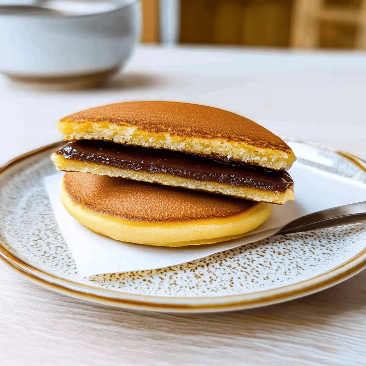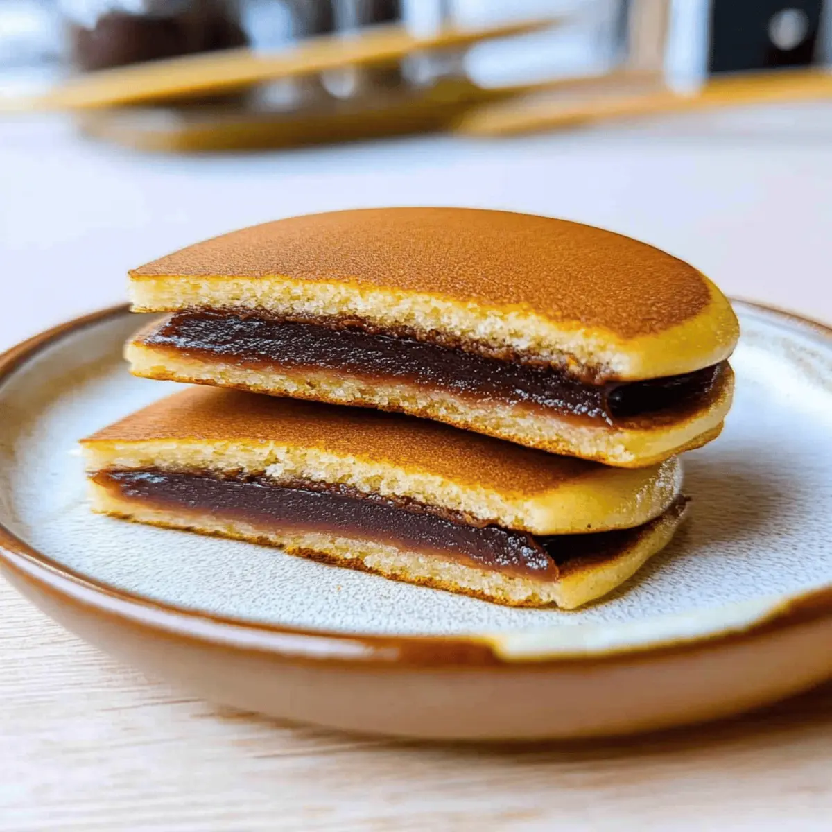 Jump to Recipe Print RecipeStanding in my kitchen, I couldn’t help but feel a wave of nostalgia wash over me. Memories of sunny afternoons spent enjoying Dorayaki (Japanese Red Bean Pancakes) with friends drifted back, reminding me of the joy these fluffy treats bring. Each pancake is like a warm hug, with their delicate texture and honey-kissed flavor that transports you to a bustling street corner in Tokyo. What’s more, they’re incredibly versatile—you can customize the fillings with sweet red bean paste, luxurious custard, or even rich chocolate spread to make each experience unique. Perfect for a quick snack or a delightful dessert, these little wonders are also gluten-free when you choose the right flour. Who could resist the charm of homemade Dorayaki? Are you ready to start your cooking adventure? Why Should You Make Dorayaki Today? Irresistible Taste: The enchanting combination of fluffy pancakes and sweet red bean paste is simply unforgettable. Customizable Fillings: Experiment with different fillings—think custard, cream cheese, or even a chocolate twist for a unique flavor experience. Quick and Easy: With a straightforward recipe, you can whip up these delightful treats in no time, making them perfect for a last-minute snack or dessert. Cultural Delight: Enjoy a taste of Japan right in your kitchen, evoking the charm of street vendors and cozy cafes. For health-conscious foodies, you can even make a gluten-free version with the right flour! Crowd-Pleasing Fun: Share the love of homemade Dorayaki with family and friends, and watch them light up with joy—a perfect treat for gatherings! For more inspired ideas, check out my Keto Chicken Alfredo recipe or dig into some Shrimp Steak Alfredo for a savory note! Dorayaki Ingredients These delightful Japanese Red Bean Pancakes come together with simple, accessible ingredients! For the Batter Eggs – The backbone of the pancake, providing structure and moisture for that fluffy texture. Sugar – Adds just the right amount of sweetness and helps achieve a lovely golden brown during cooking. Honey – Enhances the flavor and moisture; you can swap it with maple syrup for a delicious twist. Cake Flour – Guarantees a tender texture; if you don’t have it, all-purpose flour can work, but the results may differ. Baking Soda – Gives the pancakes their lift and lightness; baking powder can substitute it, but adjust the measurements accordingly. Water – Hydrates the batter for optimal consistency; feel free to adjust based on the humidity level. Cooking Oil – Essential for frying; stick to flavorless options like vegetable or canola for the best results. For the Filling Red Bean Paste (anko) – This traditional sweet filling adds a delightful texture; you can use store-bought or make your own. Consider variations like custard, cream, or chocolate for different flavors! Step‑by‑Step Instructions for Dorayaki (Japanese Red Bean Pancake) Step 1: Mix the Wet Ingredients In a mixing bowl, whisk together 2 large eggs, 50g of sugar, and 1 tablespoon of honey until the mixture is smooth and well combined, achieving a light, airy texture. This should take about 2-3 minutes of vigorous whisking. The color will shift to a paler yellow, indicating it’s ready for the next step. Step 2: Combine the Dry Ingredients Sift in 100g of cake flour and ¼ teaspoon of baking soda into the egg mixture. Gently whisk until just combined, ensuring there are no lumps; overmixing can lead to tough pancakes. The batter should be slightly thick yet pourable. Allow it to rest for a moment while you prepare the next step. Step 3: Add the Water and Rest the Batter Gradually add about 50ml of water to the batter, mixing gently until smooth. This will help achieve the right consistency for the Dorayaki. Once combined, cover the bowl with plastic wrap and refrigerate the batter for 30 minutes. This rest period is crucial for creating that delightful fluffiness in your pancakes. Step 4: Preheat the Pan While the batter rests, preheat a non-stick frying pan over low heat for about 10 minutes to ensure even cooking. Lightly oil the surface using a paper towel dipped in flavorless vegetable oil. This prevents the pancakes from sticking without adding excess grease, keeping your Dorayaki golden and clean. Step 5: Cook the Pancakes Pour about 1/4 cup of the batter into the pan, forming a pancake about 8cm in diameter. Cook until bubbles form on the surface, taking approximately 1.5 to 2 minutes. You’ll know they are ready to flip when you see small bubbles popping, creating an appealing texture and look. Step 6: Flip and Finish Cooking Carefully flip the pancake using a spatula and cook for an additional 1 minute until the other side is golden brown. The pancakes should feel fluffy and spring back slightly when pressed. They should have a light, golden hue; adjust the heat if needed to avoid burning them. Step 7: Assemble the Dorayaki Repeat the cooking process with the remaining batter until all pancakes are cooked. To assemble your Dorayaki, take one pancake and spread about 2 tablespoons of sweet red bean paste (anko) on it. Gently place another pancake on top, pressing them together lightly to create a sweet sandwich. Step 8: Serve Warm Your homemade Dorayaki (Japanese Red Bean Pancake) is now ready to be enjoyed! Serve warm for the best texture and flavor, or store them wrapped at room temperature for a few hours. If saved, they can be enjoyed later after a short reheat in the microwave, bringing back their delightful fluff. What to Serve with Homemade Dorayaki – Fluffy Japanese Red Bean Pancakes? Indulge in a delightful meal that transforms your kitchen into a little slice of Japan with comforting accompaniments. Green Tea: The subtle earthiness of green tea balances the sweetness of the Dorayaki, enhancing your overall experience. Matcha Ice Cream: Creamy and rich, matcha ice cream adds an exciting contrast to the fluffy pancakes, creating a harmon