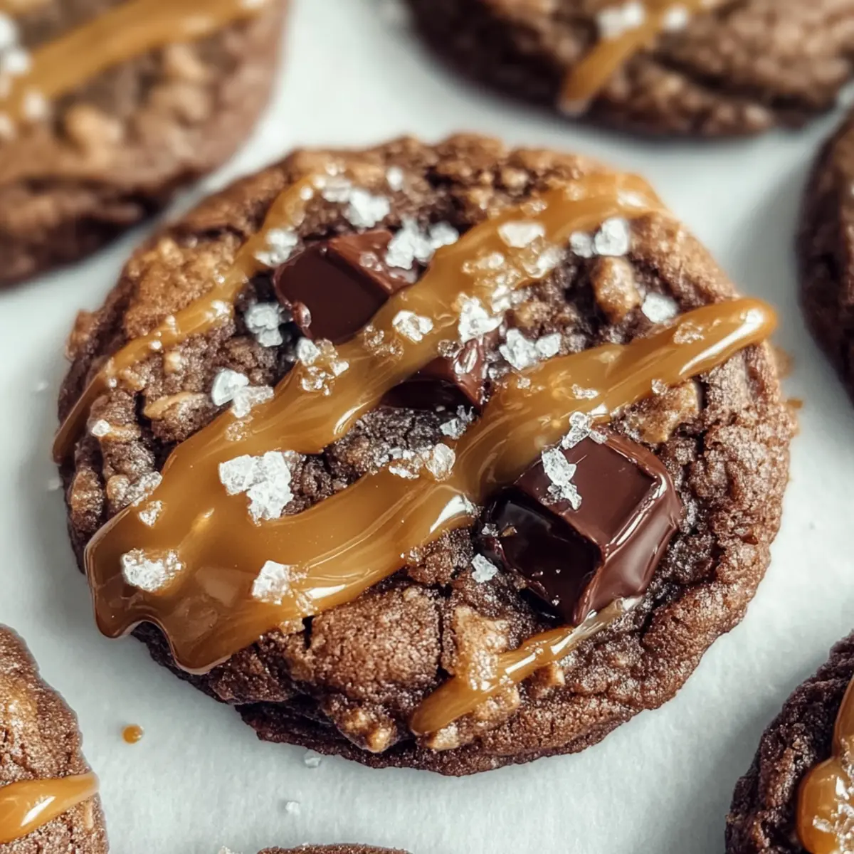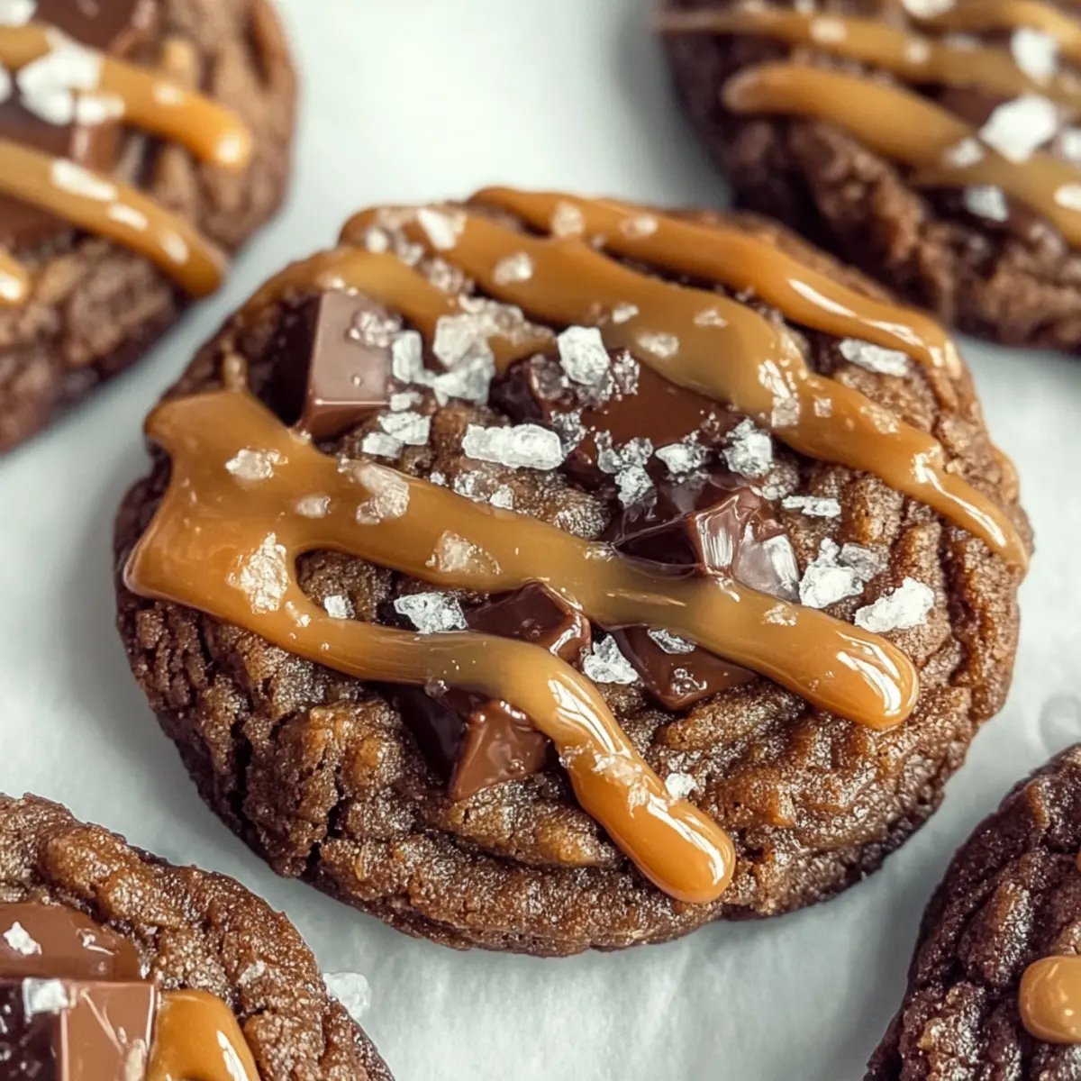 Jump to Recipe Print RecipeThe aroma of fresh-baked cookies wafting through the air can instantly transport you to your happiest memories—each warm bite a nostalgic embrace. Today, I’m thrilled to share my recipe for Double Chocolate Salted Caramel Cookies, a tantalizing dessert that beautifully marries rich chocolate with the gooey delight of caramel, all generously sprinkled with a touch of sea salt. These cookies boast crisp edges with a soft, fudgy center, making them not just a treat, but a statement of love for homemade indulgence. Perfect for a last-minute dessert or a centerpiece at your next gathering, these cookies are quick to whip up and completely crowd-pleasing. Ready to satisfy your sweet tooth and create unforgettable moments in your kitchen? Let’s dive into the magic of baking! Why Choose This Cookie Recipe? Decadence in every bite: These Double Chocolate Salted Caramel Cookies boast a heavenly blend of rich chocolate and melty caramel that will leave you craving more. Quick and easy: With simple ingredients and straightforward steps, even novice bakers can impress with this recipe. Versatile variations: Feel free to customize by mixing in nuts or changing the chips for endless flavor combinations. Perfect for sharing: Whether hosting friends or enjoying a quiet movie night, these cookies are sure to be a hit. Indulge without compromise: They’re not just delicious; they’re a wonderful way to treat yourself and loved ones with a delightful homemade dessert! Want to elevate your dessert game further? Check out my tips for Serving Suggestions or learn how to store your cookies so they stay fresh with my Storage Tips! Double Chocolate Salted Caramel Cookies Ingredients For the Cookie Base All-Purpose Flour – Provides structure to the cookies; substitute with gluten-free flour for a gluten-free option. Unsweetened Cocoa Powder – Adds a rich chocolate flavor; Dutch-processed cocoa can offer a smoother taste. Baking Soda – Acts as a leavening agent for rise; baking powder can be used with adjustments if needed. Salt – Enhances flavor and balances sweetness; use kosher or sea salt for the best effect. For the Fudgy Mixture Unsalted Butter (room temperature) – Contributes to richness; coconut oil or margarine can be used, though flavor will vary. Granulated Sugar – Adds sweetness and crisp texture; coconut sugar can provide lower-glycemic options. Light Brown Sugar (lightly packed) – Introduces moisture and a subtle molasses flavor; swap with dark sugar for a deeper taste. Eggs (room temperature) – Binds ingredients and aids in leavening; use 1/4 cup of applesauce per egg for an egg-free version. Vanilla Extract – Enhances flavors; avoid substitutes for the best results. For the Chocolatey Goodness Semi-Sweet or Milk Chocolate Chips – Introduces chocolatey goodness; dark chocolate or white chocolate can be used for variety. Caramel-Flavored Chips – Adds a sweet caramel flavor; consider butterscotch chips as an alternative. For the Topper Sea Salt Flakes – Sprinkled on top for a crunch and flavor enhancement; use flakes for added texture. Caramel Sauce or Dulce de Leche (optional) – Drizzle on for extra richness; recommended for enhanced indulgence. With these Double Chocolate Salted Caramel Cookies ingredients, you’re all set to bake up a batch of pure joy that will satisfy any sweet tooth! Step‑by‑Step Instructions for Double Chocolate Salted Caramel Cookies Step 1: Preheat and Prepare Begin by preheating your oven to 375ºF (190ºC). While the oven warms, take two baking sheets and line them with parchment paper to prevent the cookies from sticking. This step is vital for achieving that perfect crisp edge and soft center that characterizes the Double Chocolate Salted Caramel Cookies. Step 2: Whisk Dry Ingredients In a large mixing bowl, whisk together 1 ¾ cups of all-purpose flour, ½ cup of unsweetened cocoa powder, 1 tsp of baking soda, and ½ tsp of salt. This combination will create your dry mix, ensuring everything is evenly distributed. Keep mixing until you see no lumps; the dry ingredients are the backbone of your cookies, providing structure and that luscious chocolate flavor. Step 3: Cream Wet Ingredients In a separate bowl, beat together ½ cup of room-temperature unsalted butter, ¾ cup of granulated sugar, and ½ cup of light brown sugar until the mixture is light and fluffy. This will take about 3–4 minutes with a hand mixer. You’re aiming for a pale, creamy texture that indicates the sugar has started to dissolve, which adds to the cookies’ tender bite. Step 4: Add Eggs and Vanilla Next, add 2 room-temperature eggs one at a time to the butter-sugar mixture, mixing well after each addition. Pour in 2 tsp of vanilla extract, continuing to blend until everything is well incorporated. This step not only enriches the batter but also infuses your Double Chocolate Salted Caramel Cookies with a delightful aroma. Step 5: Combine Dry and Wet Mixtures Gradually add your dry mixture to the wet ingredients, mixing on low speed until just combined. Be careful not to overmix; the goal is to create a smooth batter with no visible flour lumps. This process helps maintain the soft, fudgy center that makes these cookies irresistible. Step 6: Fold in Chocolate Chips With a spatula, gently fold in 1 cup of semi-sweet or milk chocolate chips and ½ cup of caramel-flavored chips into the dough. This action ensures that the gooey caramel and rich chocolate are evenly distributed throughout the cookie batter, creating pockets of melted goodness with every bite. Step 7: Scoop the Dough Using a tablespoon or a cookie scoop, drop mounds of dough onto the prepared baking sheets, spacing them about 2 inches apart. This spacing is crucial to prevent the cookies from merging while baking. You should see the delightful mixture of chocolate and caramel just waiting to be baked into delicious Double Chocolate Salted Caramel Cookies. Step 8: Add Sea 