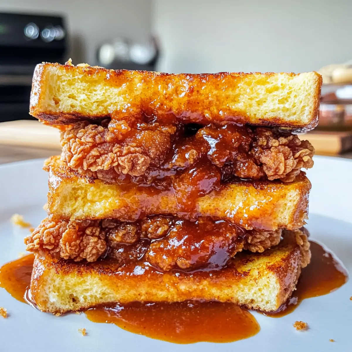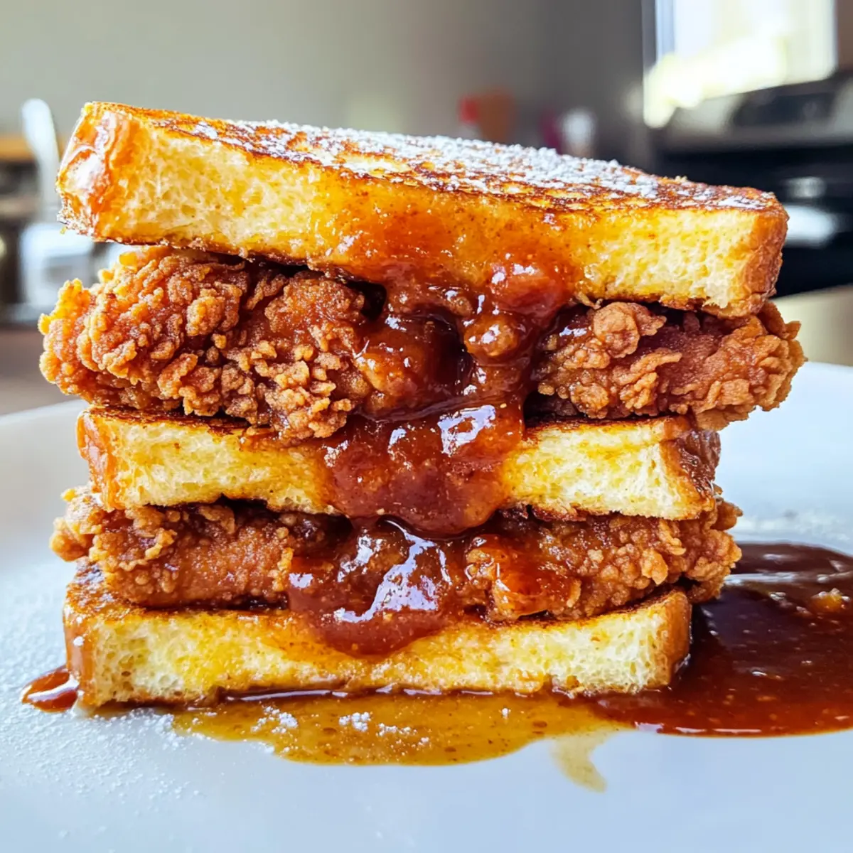 • Reheating: For best results, reheat the sandwich in a 350°F (175°C) oven for 15-20 minutes. This method preserves the crispy texture of the French toast and chicken.