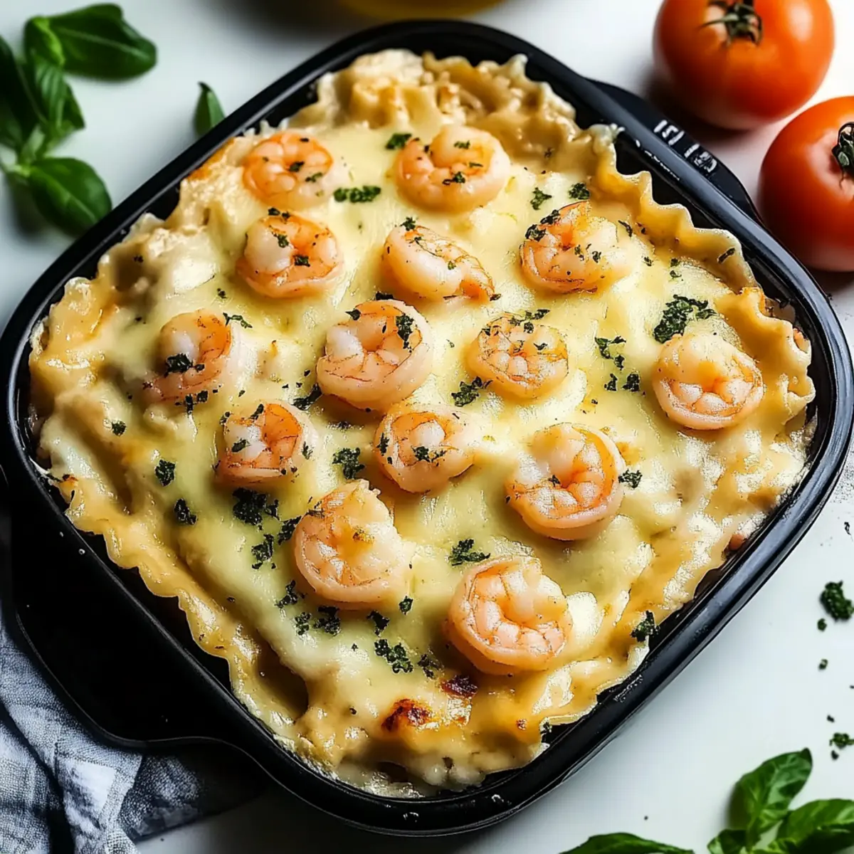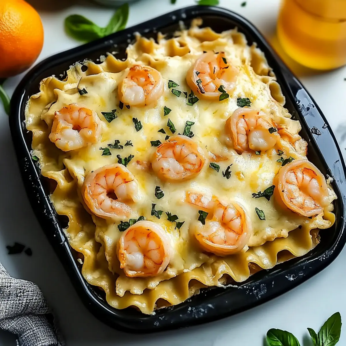 Jump to Recipe Print RecipeAs I stirred melted butter and fragrant garlic in the skillet, a wave of nostalgia washed over me, reminding me of family dinners that lingered well into the night. Today, I’m excited to share my Garlic Butter Shrimp Scampi Lasagna—an exquisite fusion of comfort food and seafood that transforms any meal into a celebration. The creamy layers, perfectly cooked shrimp, and melted cheese create a delightful harmony that’s both indulgent and satisfying. Plus, this dish is surprisingly quick to prepare, making it an effortless option for busy weeknights or special gatherings. Trust me, this creamy shrimp lasagna will have everyone asking for seconds! Are you ready to dive into this culinary adventure? Why is Garlic Butter Shrimp Scampi Lasagna Special? Irresistible Layers: Each bite of this lasagna is a delightful journey through layers of creamy garlic butter, succulent shrimp, and melted cheese. Quick Preparation: You won’t spend hours in the kitchen; this recipe is designed for ease without sacrificing flavor. Versatile Ingredients: Feel free to substitute shrimp with other seafood or even add in some veggies for a personalized twist! Crowd-Pleasing Appeal: Whether for a family dinner or a gathering with friends, this dish will surely impress your guests, just like my Honey Butter Chicken. Comfort and Luxury: It combines the heartwarming comfort of traditional lasagna with luxurious seafood flavors, making it a unique dish that stands out on any table. Garlic Butter Shrimp Scampi Lasagna Ingredients For the Creamy Sauce Butter – Adds richness and flavor to the sauce. Substitution Note: Can use olive oil for a lighter option. Garlic – Provides aromatic depth and enhances flavor. Prep Note: Use fresh garlic for the best taste. Heavy Cream – Creates a rich, creamy sauce. Substitution Note: Use half-and-half or a milk-butter combo for a lighter version. Chicken Broth – Enhances overall flavor of the sauce. Prep Note: Low-sodium broth recommended to control saltiness. Lemon Zest & Juice – Brightens flavors and cuts through richness. Substitution Note: Lime juice can be used for a different citrus touch. Salt and Black Pepper – Essential for seasoning. Note: Adjust to taste. Crushed Red Pepper Flakes – Adds a hint of heat to balance the richness. Optional Note: Adjust quantity based on desired spice level. For the Shrimp Large Shrimp – Main protein and source of seafood flavor. Substitution Note: Can swap with scallops or crab meat; adjust cooking times accordingly. For the Lasagna Layering Lasagna Noodles – Structure of the dish. Prep Note: Pre-cook according to package instructions. Ricotta Cheese – Adds creaminess and structure to each layer. Substitution Note: Cottage cheese can be used as a lighter alternative. Shredded Mozzarella Cheese – Melting quality that binds the layers together. Prep Note: Use fresh mozzarella for improved taste. Grated Parmesan Cheese – Adds savory depth and a slightly salty flavor. Note: Can substitute with Pecorino Romano for a sharper taste. Chopped Fresh Parsley – For garnish and added freshness. Optional Note: Swap for basil or chives for different flavors. Olive Oil – For greasing the baking dish. Substitution Note: Any cooking oil can be used. This Garlic Butter Shrimp Scampi Lasagna recipe is not just delicious; it’s a delightful way to bring family and friends together at the dinner table. Enjoy this creamy masterpiece! Step‑by‑Step Instructions for Garlic Butter Shrimp Scampi Lasagna Step 1: Prepare Garlic Shrimp In a large skillet, melt 4 tablespoons of butter over medium heat until bubbly. Add 3 minced garlic cloves and sauté until fragrant, about 1 minute. Toss in 1 pound of large shrimp and sprinkle with ½ teaspoon crushed red pepper flakes. Cook until the shrimp turn pink and opaque, roughly 3-4 minutes, then transfer to a plate and set aside. Step 2: Make Cream Sauce In the same skillet, pour in 1 cup of heavy cream and 1 cup of chicken broth, stirring well to combine. Add the juice and zest of 1 lemon, seasoning with salt and black pepper to taste. Bring the mixture to a gentle simmer over medium heat and cook for about 5-7 minutes, stirring occasionally until the sauce thickens. Step 3: Combine Cheeses Remove the skillet from heat and stir in 1 cup of ricotta cheese until well combined. Then, add 2 cups of shredded mozzarella cheese and ½ cup of grated Parmesan cheese, mixing until the cheeses melt into the creamy sauce. Return the shrimp to the skillet and gently fold everything together, ensuring the shrimp are well-coated in the garlic butter sauce. Step 4: Layer Lasagna Preheat your oven to 375°F (190°C). Grease a 9×13 inch baking dish with a drizzle of olive oil. Start by spreading a layer of the garlic butter shrimp scampi sauce on the bottom. Layer cooked lasagna noodles over the sauce, followed by more sauce, and sprinkle additional mozzarella. Repeat the layers until all ingredients are used, finishing with a generous layer of mozzarella cheese on top. Step 5: Bake Cover the baking dish with aluminum foil and bake for 25 minutes. After that, remove the foil and bake for an additional 10-15 minutes, or until the top is golden and bubbly. Allow the garlic butter shrimp scampi lasagna to cool for about 10 minutes before serving; this will help the layers set and make it easier to cut. Garnish with chopped fresh parsley for a pop of color and freshness. Make Ahead Options These Garlic Butter Shrimp Scampi Lasagna are perfect for meal prep enthusiasts! You can prepare the entire lasagna up to 24 hours in advance, allowing for an easy weeknight dinner. Simply assemble the layers, cover tightly with plastic wrap, and refrigerate until it’s time to bake. To maintain the creamy texture, ensure that the sauce is still warm when layering, preventing the noodles from soaking up too much moisture. When ready to serve, preheat your oven and bake from the refrigerator, adding 5-
