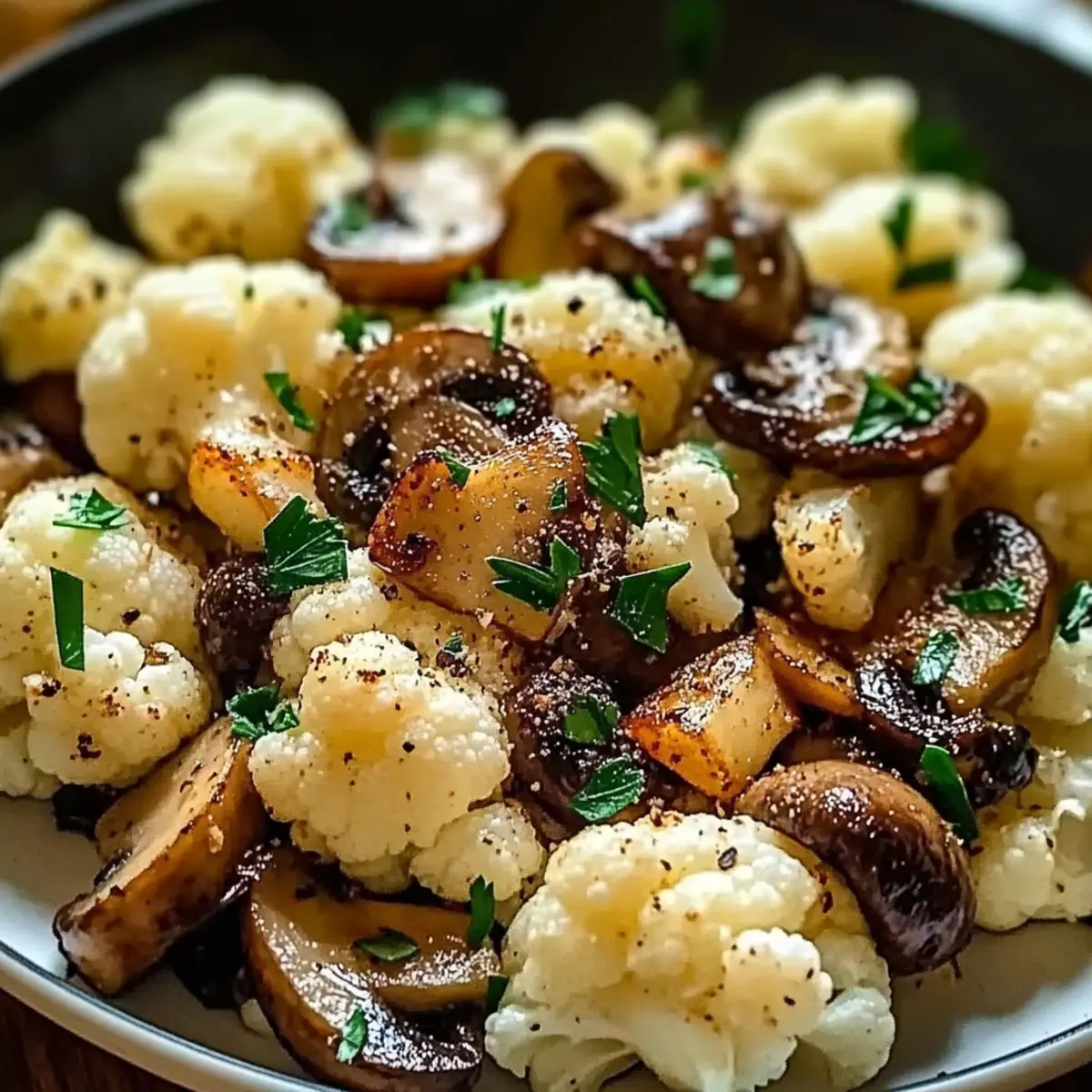• Toasted Nuts: Add a sprinkle of toasted almonds or pine nuts right before serving for an exciting crunch. Their nutty flavor pairs wonderfully with the earthiness of cauliflower and mushrooms.