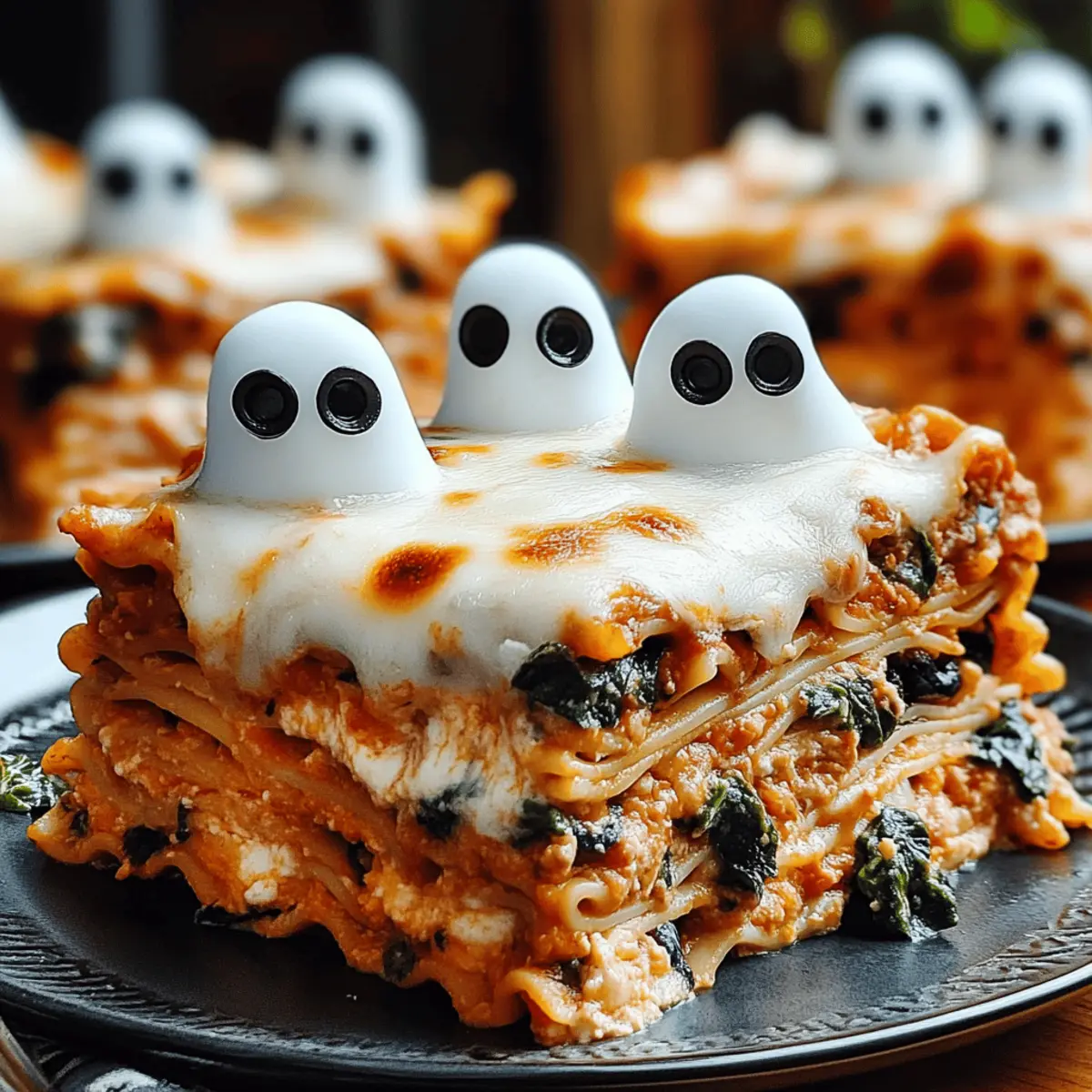 Jump to Recipe Print RecipeAs Halloween approaches, the air fills with whispers of spooky tales and sweet treats. This year, why not combine the two with a dish that warms both hearts and imaginations? Enter Ghostly Lasagna, a delightful twist on a classic favorite that not only captivates the festive spirit but also brings family together around the dinner table. Crafted with layers of tender chicken, creamy ricotta, and vibrant spinach, this comforting recipe is truly make-ahead magic, allowing you to prepare it in advance and enjoy more time with your loved ones. Plus, it caters to all with gluten-free options available! Are you ready to create an unforgettable Halloween feast that has everyone saying “Boo-tiful”? Let’s dive into the recipe! Why is Ghostly Lasagna a Must-Try? Family-Friendly Fun: Ghostly Lasagna brings everyone together—comfort food that kids adore and adults can’t resist! Playful Presentation: Topped with whimsical mozzarella ghosts, it’s not just a meal; it’s a festive centerpiece that will spark joy at your Halloween table. Make-Ahead Magic: Prepare it in advance for effortless entertaining; simply pop it in the oven when you’re ready, giving you more time to enjoy the celebration. Versatile Ingredients: With options to make it vegetarian or gluten-free, this dish easily adapts to suit any dietary preference, ensuring all your guests feel welcome. Rich and Creamy Layers: Packed with creamy ricotta and tender chicken, each bite is a taste sensation, making it impossible to stop at just one piece! This season, delight your family and friends with Ghostly Lasagna, a recipe sure to become a beloved tradition! Ghostly Lasagna Ingredients For the Noodles • Lasagna Noodles – Provides structure; gluten-free options are available for dietary needs. For the Filling • Cooked Chicken (4 cups, shredded) – A hearty protein source; using rotisserie chicken enhances convenience. • Spinach (4 cups, chopped) – Adds freshness and nutrients; can be replaced with kale or drained frozen spinach for ease. • Ricotta Cheese (4 cups) – Offers creaminess and richness; can substitute with cottage cheese for a lighter version. • Shredded Mozzarella Cheese (4 cups) – Essential for creating the “ghosts”; low-moisture mozzarella is recommended for better shape retention. • Grated Parmesan Cheese (1 cup) – Adds flavor and a crispy top layer. For the Assembly • Black Olives (sliced, to taste) – Used for spooky “eyes” on the ghosts; can be omitted if desired. • Marinara Sauce (6 cups) – Binds the layers with tangy flavor; homemade for the freshest taste. • Salt and Pepper – For seasoning; adjust to taste. Get ready to create your own Ghostly Lasagna that will have you and your loved ones celebrating in style this Halloween! Step‑by‑Step Instructions for Ghostly Lasagna Step 1: Preheat the Oven Start by preheating your oven to 375°F (190°C). This ensures that your Ghostly Lasagna will bake evenly and achieve that perfect, bubbly finish. Make sure to give the oven enough time to reach the proper temperature while you prepare the ingredients, creating a cozy atmosphere in your kitchen. Step 2: Cook the Noodles Bring a large pot of salted water to a boil and cook the lasagna noodles until al dente, about 8-10 minutes. Stir occasionally to prevent sticking. Once cooked, drain the noodles and set them aside. This step is crucial for building your layers and ensuring each bite of the Ghostly Lasagna has the perfect amount of texture. Step 3: Prepare the Ricotta Mixture In a mixing bowl, combine the ricotta cheese with chopped spinach, salt, and pepper. Mix thoroughly until well blended and creamy. This delightful mixture will add richness and nutritional value to your Ghostly Lasagna. Set this bowl aside, as it will be a key component of your delicious layers. Step 4: Layer the Ingredients Now it’s time to assemble your Ghostly Lasagna! Begin with a layer of marinara sauce at the bottom of a large baking dish. Then, place a layer of noodles on top, followed by the ricotta mixture, shredded chicken, and a sprinkle of mozzarella. Repeat this layering process until all ingredients are used, finishing with a generous layer of sauce and mozzarella on top for that golden bubbly finish. Step 5: Add Mozzarella Ghosts Using a knife, cut mozzarella slices into fun ghost shapes, then place them atop the lasagna. Use sliced black olives to create spooky eyes for your ghostly figures. This playful touch not only enhances the look of your dish but makes the Ghostly Lasagna a festive centerpiece for your Halloween gathering. Step 6: Bake the Lasagna Cover your baking dish with aluminum foil to prevent the top from browning too quickly. Bake the lasagna in the preheated oven for 30 minutes. After that, remove the foil and bake for an additional 10-15 minutes, or until the cheese is melted and bubbly, and the edges are golden brown—a visual cue that it’s ready to be served. Step 7: Let It Rest Once baked, remove the Ghostly Lasagna from the oven and let it rest for about 10-15 minutes. This crucial step will allow the layers to set and ensure that when you cut into it, each slice remains intact and beautiful. It also enhances the flavor as the ingredients meld together, making each bite absolutely scrumptious. How to Store and Freeze Ghostly Lasagna Refrigerator: Store in an airtight container for up to 3 days; reheat individual portions with a splash of marinara sauce to keep it moist and cheesy. Freezer: Unbaked Ghostly Lasagna can be frozen for up to 3 months. Wrap it tightly in plastic wrap and aluminum foil. Thaw overnight in the fridge before baking to perfection. Make-Ahead Tips: Assemble the lasagna a day in advance and keep covered in the refrigerator; increase baking time by 10 minutes when cooking straight from the fridge for even warmth. Leftovers: For leftover lasagna, reheat in the oven at 350°F (175°C) for about 20-25 minutes until hea