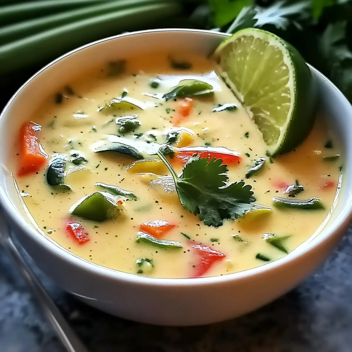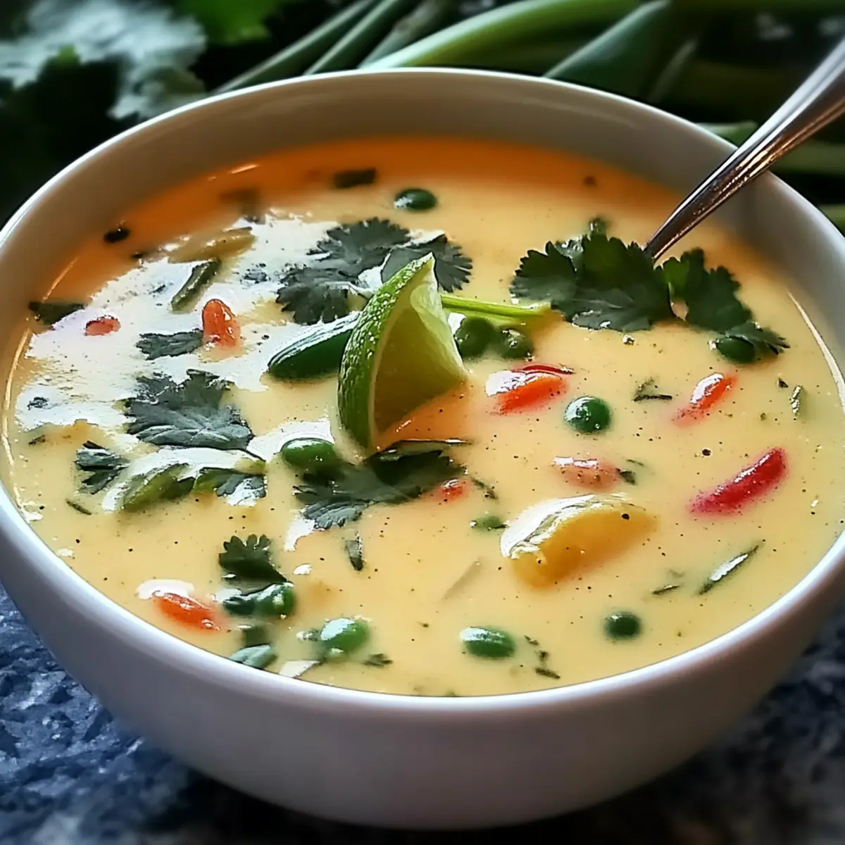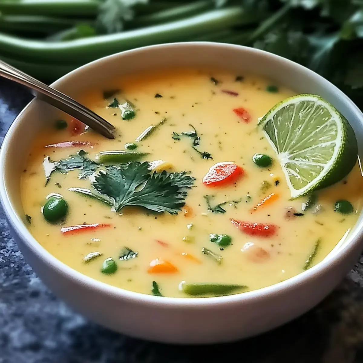 Jump to Recipe Print RecipeAs the gentle aroma of ginger greets you, memories of warm family gatherings come rushing back. This Creamy Ginger Lemongrass Soup with Coconut Milk is more than just a dish; it’s a heartfelt embrace in a bowl, perfect for those moments when life needs a touch of comfort. Bursting with vibrant flavors and made with wholesome ingredients, this vegetarian-friendly recipe offers a quick escape from fast food, turning your kitchen into a haven of Southeast Asian delights in no time. With a soothing blend of spices and creamy coconut milk, it’s not just a meal; it’s a delightful way to nourish your soul. Want to discover how to whip up this cozy treat in just seven easy steps? Let’s dive into the recipe! Why Is This Soup So Special? Comforting, Creamy Bliss: This Ginger Lemongrass Soup with Coconut Milk delivers warmth and nostalgia in every spoonful, making it the ideal comfort food. Quick Cooking: In just seven easy steps, you can transform simple ingredients into an aromatic masterpiece, perfect for busy evenings. Flavor Explosion: The harmonious blend of fresh ginger, lemongrass, and coconut milk creates a vibrant, mouthwatering taste that you’ll crave! Customizable Goodness: With options to add your favorite vegetables or a protein boost like tofu, this recipe caters to everyone’s tastes and dietary preferences. Perfect for Any Occasion: Whether you’re hosting family for dinner or enjoying a cozy night in, this soup is sure to impress and satisfy. Elevate your meal times and consider pairing it with a refreshing Chickpea Salad with Grilled Vegetables for a complete dining experience! Ginger Lemongrass Soup Ingredients For the Soup Base Vegetable Oil – A base for sautéing that enhances flavors; coconut oil can be used for a richer taste. Onion – Provides sweetness and depth; a medium onion, chopped, is essential for a solid flavor foundation. Garlic – Offers aromatic warmth; use fresh garlic, minced, for the best results. Fresh Ginger – Adds warmth and spice; grated fresh ginger is key for that authentic flavor in your Ginger Lemongrass Soup. Lemongrass – Infuses a bright, citrusy aroma; use two stalks, smashed, to release their essential oils. Coconut Milk – Delivers creaminess and richness; choose light or full-fat coconut milk based on desired indulgence. Vegetable Broth – Creates the soup base; four cups of broth enhances the overall flavor. For the Veggie Boost Mixed Vegetables – Adds nutrition and color; two cups of seasonal veggies can be tailored to your preference. For Flavor Enhancement Soy Sauce or Tamari – A seasoning that enhances umami flavor; opt for tamari if you need a gluten-free option. Lime Juice – Adds brightness; typically, two tablespoons will elevate your dish. For Garnishing Fresh Cilantro – Finishing touch for freshness; one-fourth cup of chopped cilantro brightens flavors beautifully. Salt and Pepper – Season to taste; adjust to your preference for the final touch. This flavorful Ginger Lemongrass Soup with Coconut Milk offers a delightful culinary experience that’s both quick to prepare and bursting with comfort! Step‑by‑Step Instructions for Ginger Lemongrass Soup with Coconut Milk Step 1: Heat Oil In a large pot, warm 2 tablespoons of vegetable oil over medium heat until shimmering, about 1-2 minutes. This will be the base for your Ginger Lemongrass Soup with Coconut Milk, setting the stage for rich flavors to develop. Step 2: Sauté Aromatics Add one medium chopped onion to the pot and sauté for about 5 minutes until it becomes translucent and fragrant. Stir in 3 minced garlic cloves and 1 tablespoon of grated fresh ginger, cooking for an additional minute to release their aromatic properties. Step 3: Add Lemongrass Introduce two stalks of smashed lemongrass to the pot, stirring them in for about 1 minute. This will enhance the soup with a vibrant, citrusy aroma that’s signature to Ginger Lemongrass Soup with Coconut Milk. Step 4: Combine Base Ingredients Pour in one can of coconut milk and four cups of vegetable broth, stirring gently to combine all the ingredients. This creamy base forms the heart of your soothing soup, allowing flavors to meld beautifully. Step 5: Simmer Bring the mixture to a gentle simmer over medium heat. Once simmering, add two cups of mixed seasonal vegetables. Cook for 10-15 minutes, stirring occasionally, until the vegetables are tender and bright, enhancing the soup’s vibrant colors. Step 6: Season Stir in 2 tablespoons of soy sauce (or tamari for gluten-free) and 2 tablespoons of lime juice, adjusting salt and pepper to taste. These additions will elevate the flavors, providing that signature umami taste that complements the richness of the coconut milk. Step 7: Serve Remove the pot from heat and ladle the soup into bowls. Garnish each bowl with a sprinkle of fresh cilantro, adding a burst of color and freshness. For an extra kick, consider drizzling a bit of sriracha on top! Storage Tips for Ginger Lemongrass Soup with Coconut Milk Refrigeration: Store leftover Ginger Lemongrass Soup in an airtight container for up to 3 days. Allow the soup to cool to room temperature before sealing to maintain freshness. Freezing: This soup is perfect for freezing! Portion into freezer-safe containers for up to 3 months. Thaw overnight in the fridge and reheat gently on the stove, adding a splash of vegetable broth if the soup has thickened. Reheating: When reheating, do so slowly on medium heat, stirring occasionally to ensure even warming. Adjust seasoning with salt or lime juice as needed. Storage Container: Glass containers work best for storing soup, as they prevent odors from absorbing and allow you to reheat directly. What to Serve with Ginger Lemongrass Soup with Coconut Milk Savoring a warm bowl of soup can create the perfect foundation for a delightful meal, don’t you think? Crusty Bread: This warm, buttery addition is perfect for dipping into the soup, soa